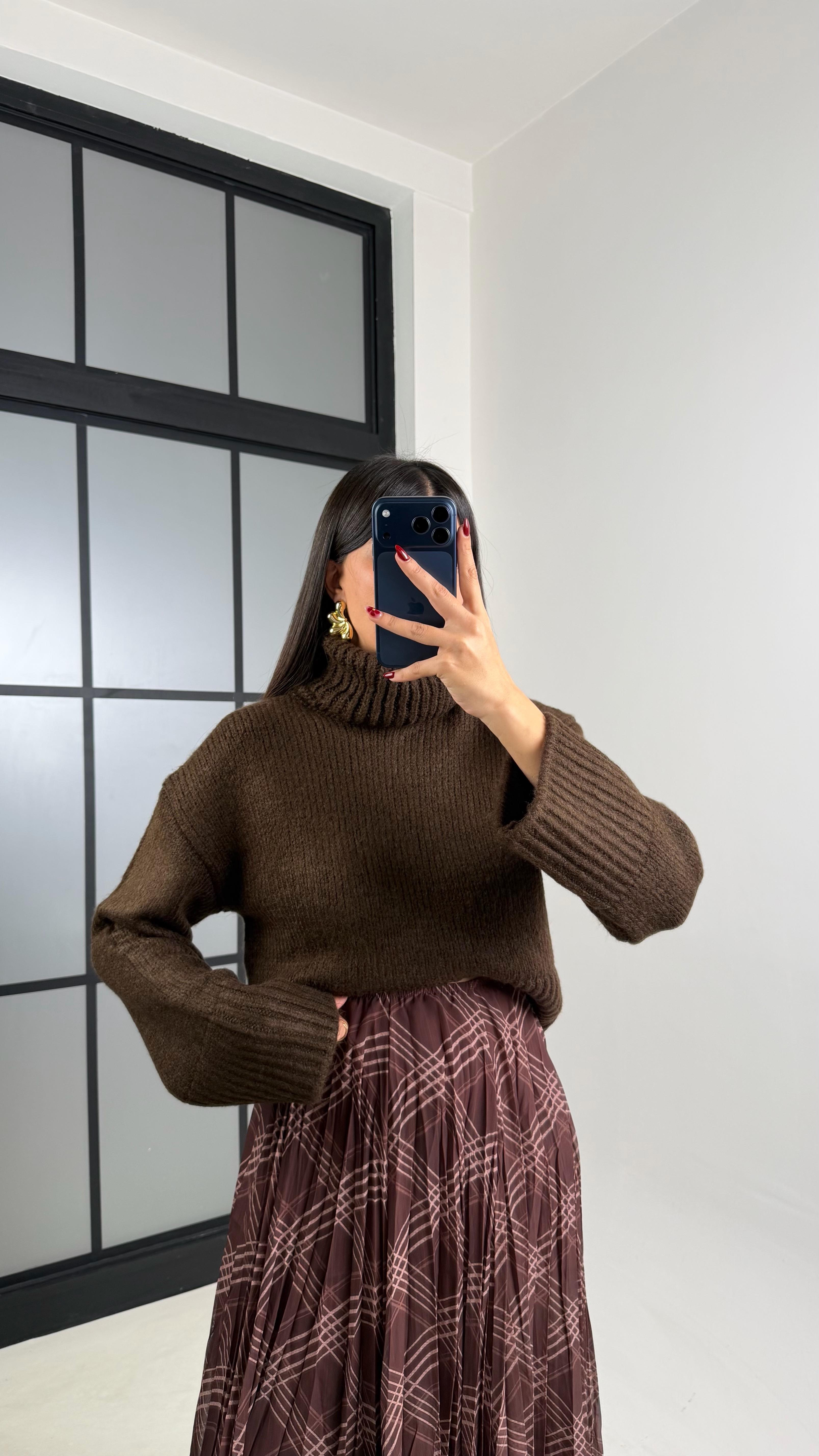 Acı Kahve Balıkçı Yaka Örgü Kazak GAUS-00726