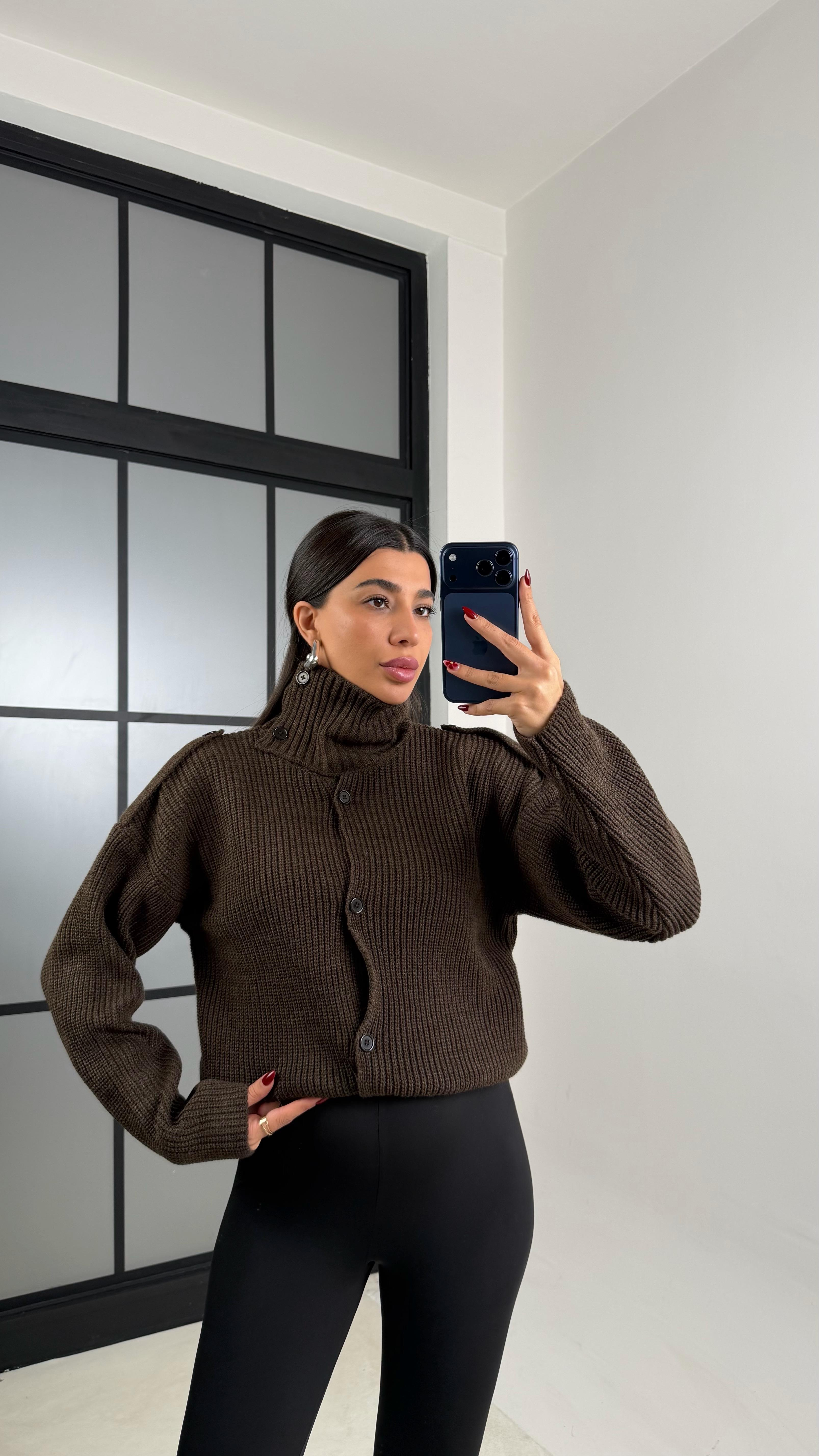 Acı Kahve Dik Yaka Düğmeli Triko Hırka GAUS-00731