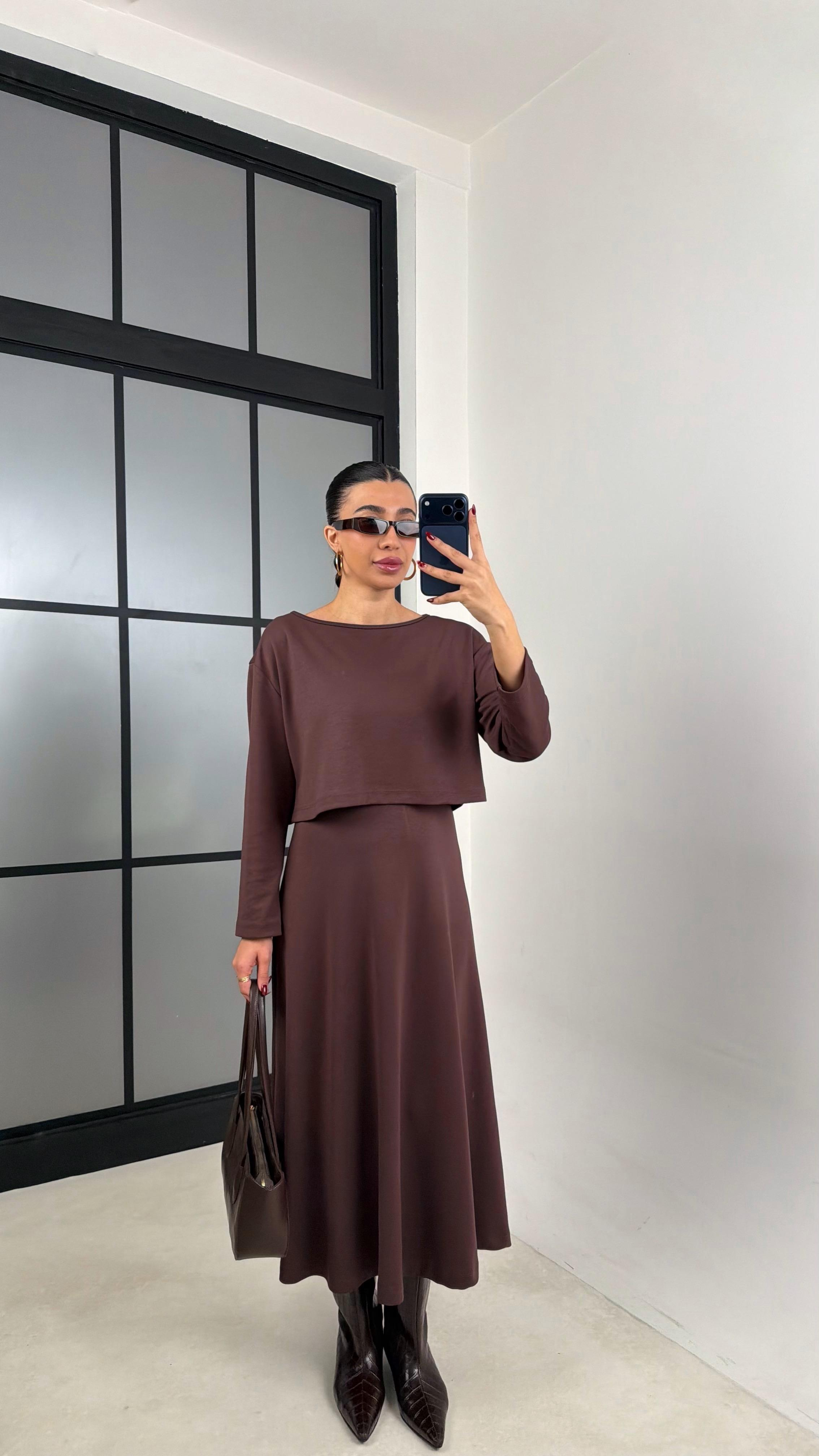 Acı Kahve Kazak Elbise İkili Basic Modal Takım GAUS-00722