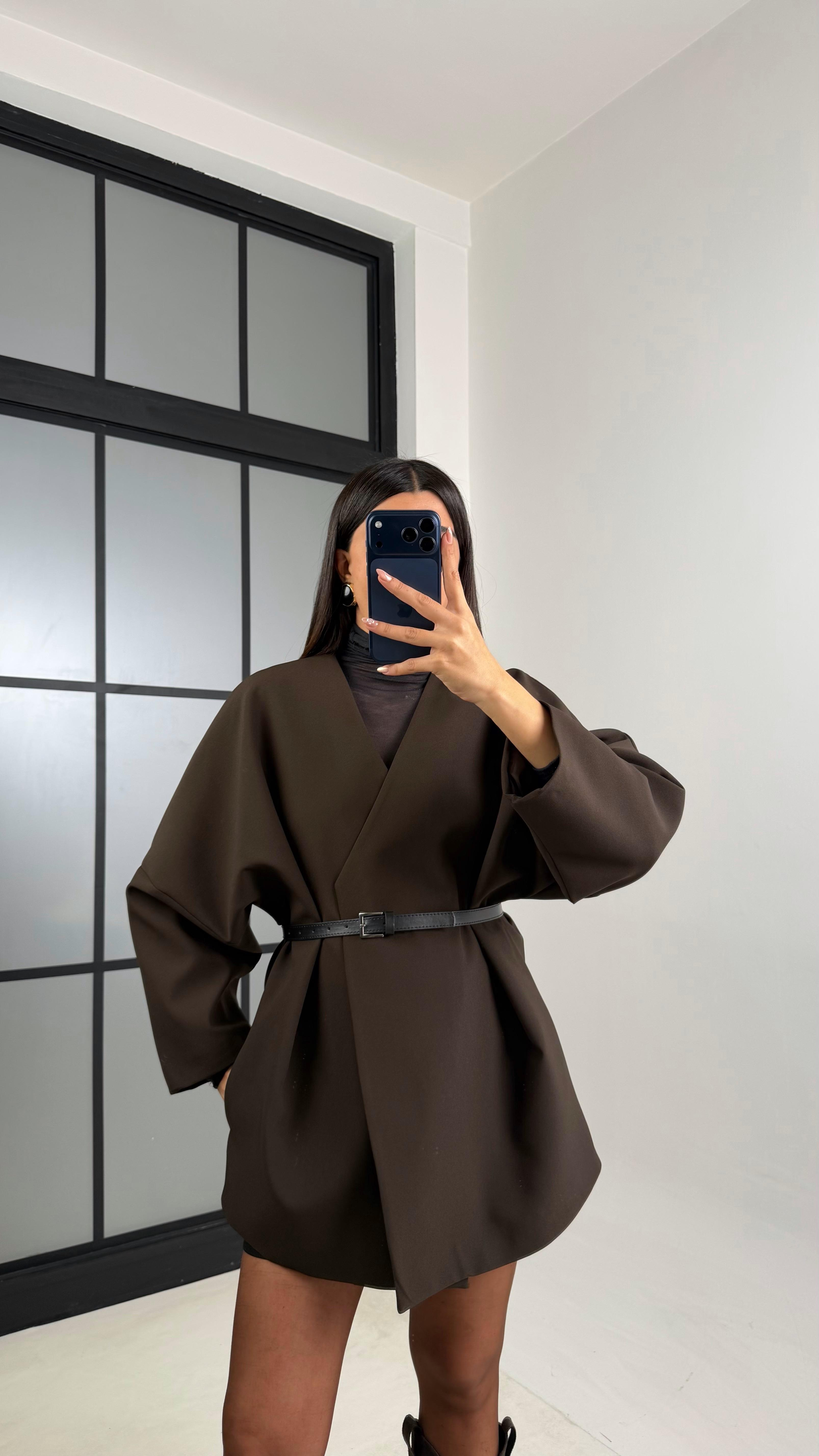 Acı Kahve Kemerli Astarlı Cepli Premium Ceket GAUS-00818