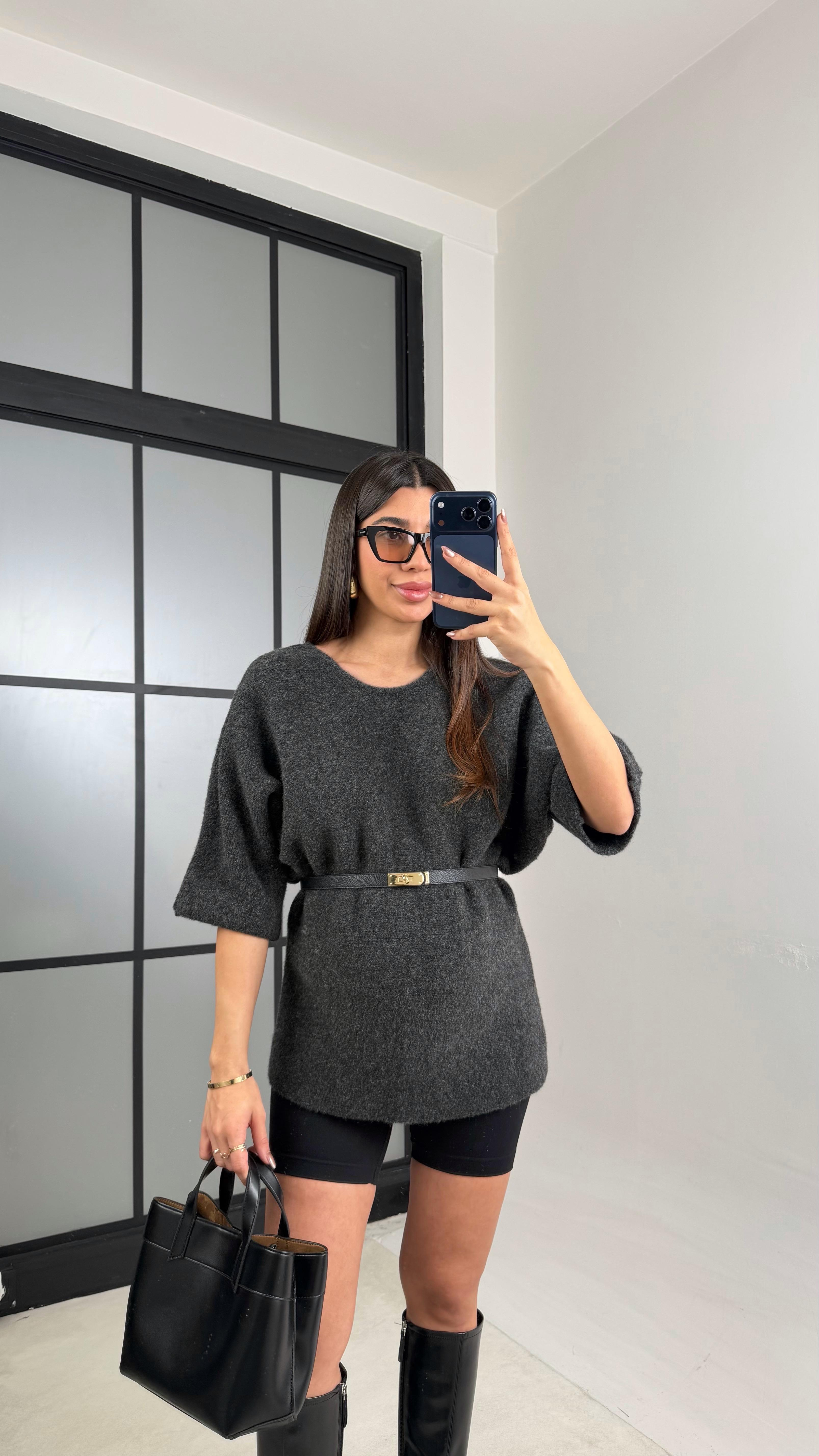 Antrasit Arkası Dantel Detaylı Kazak GAUS-01091