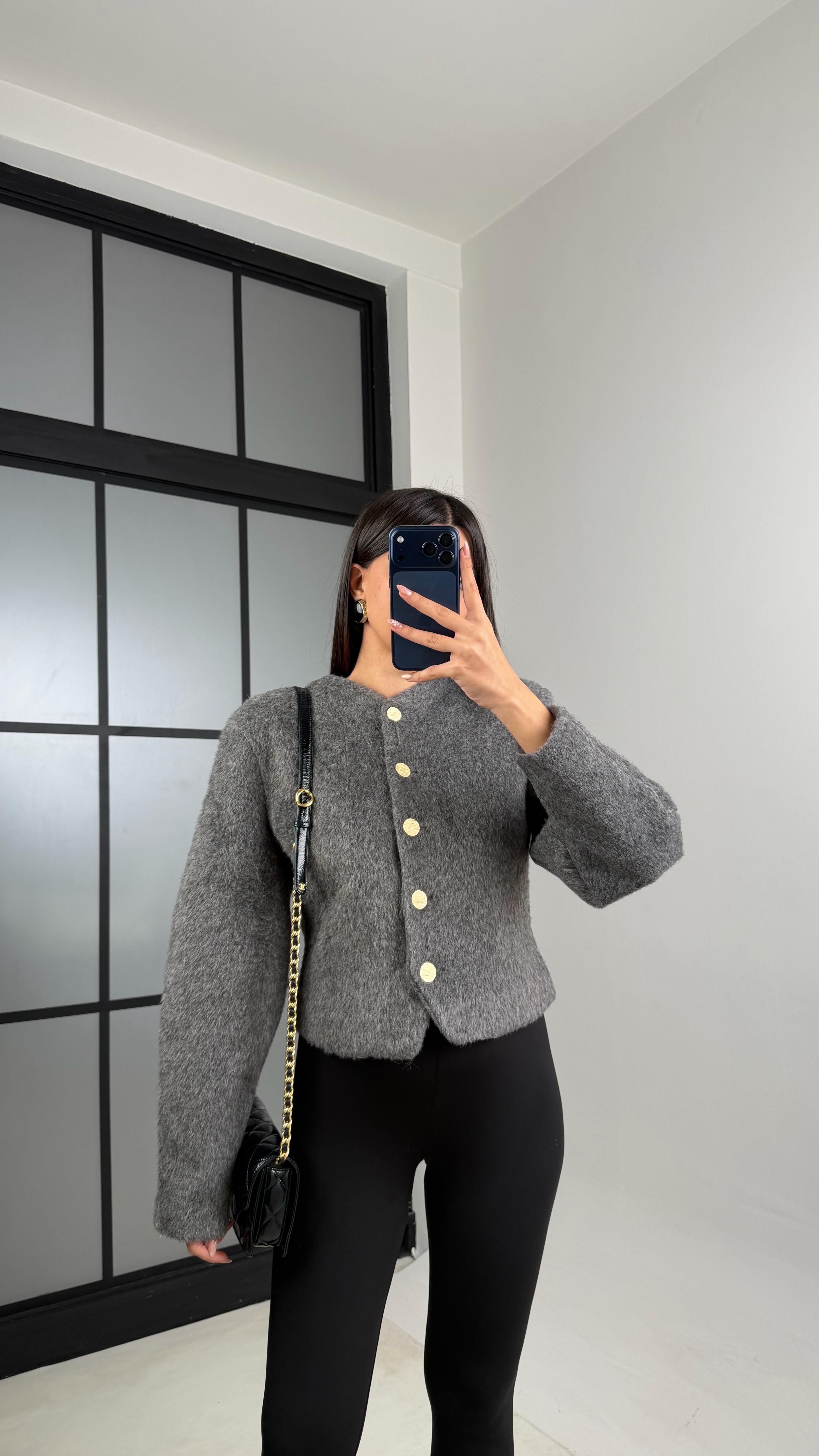 Antrasit Gold Düğmeli Belden Oturtma Kaşe Ceket GAUS-00849