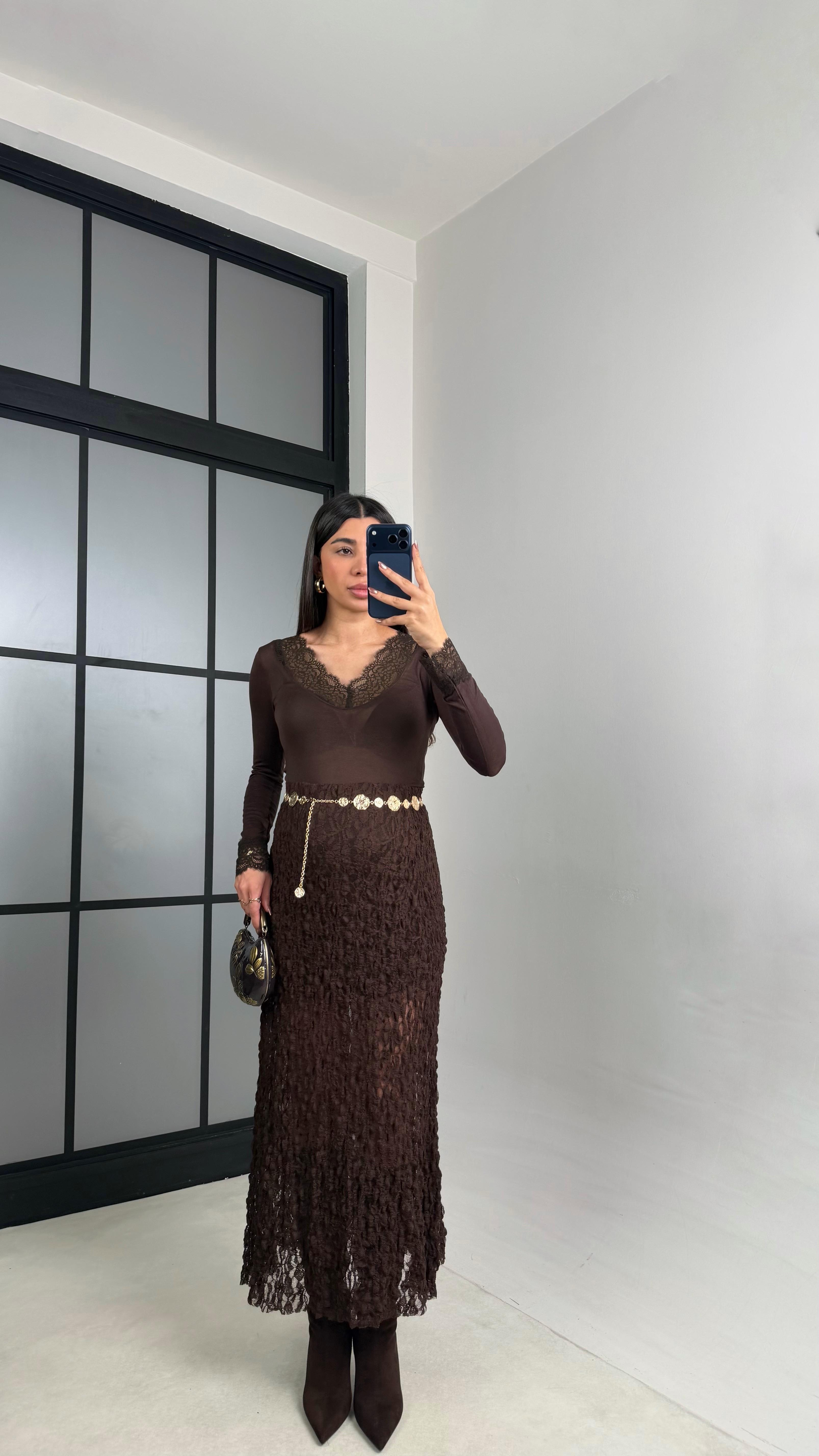 Acı Kahve Astarlı Dantel Etek GAUS-01085GAUSETEKGAUS-01085