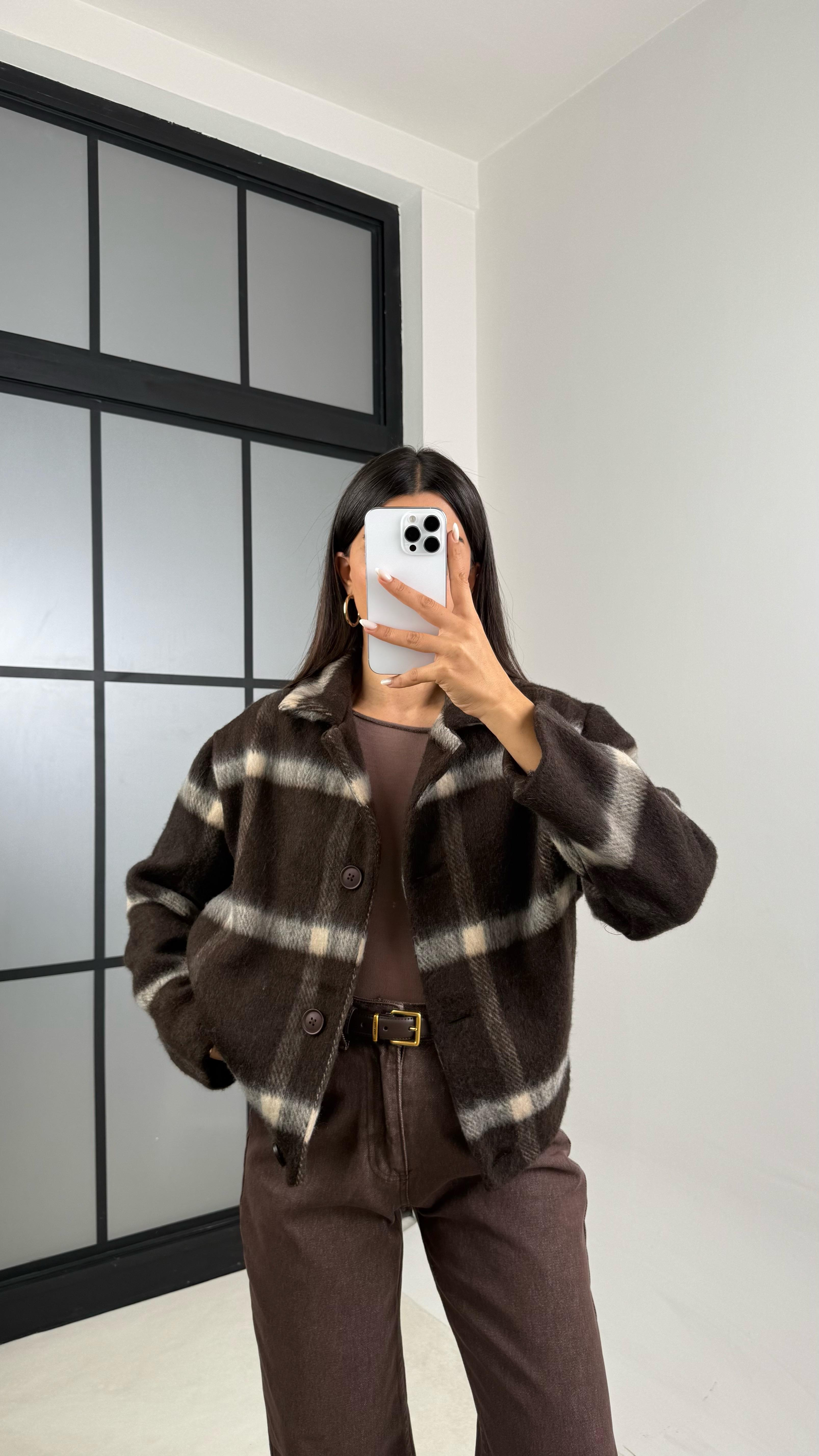 Acı Kahve Ekoseli Astarlı Yumuşak Dokulu Mont GAUS-00580