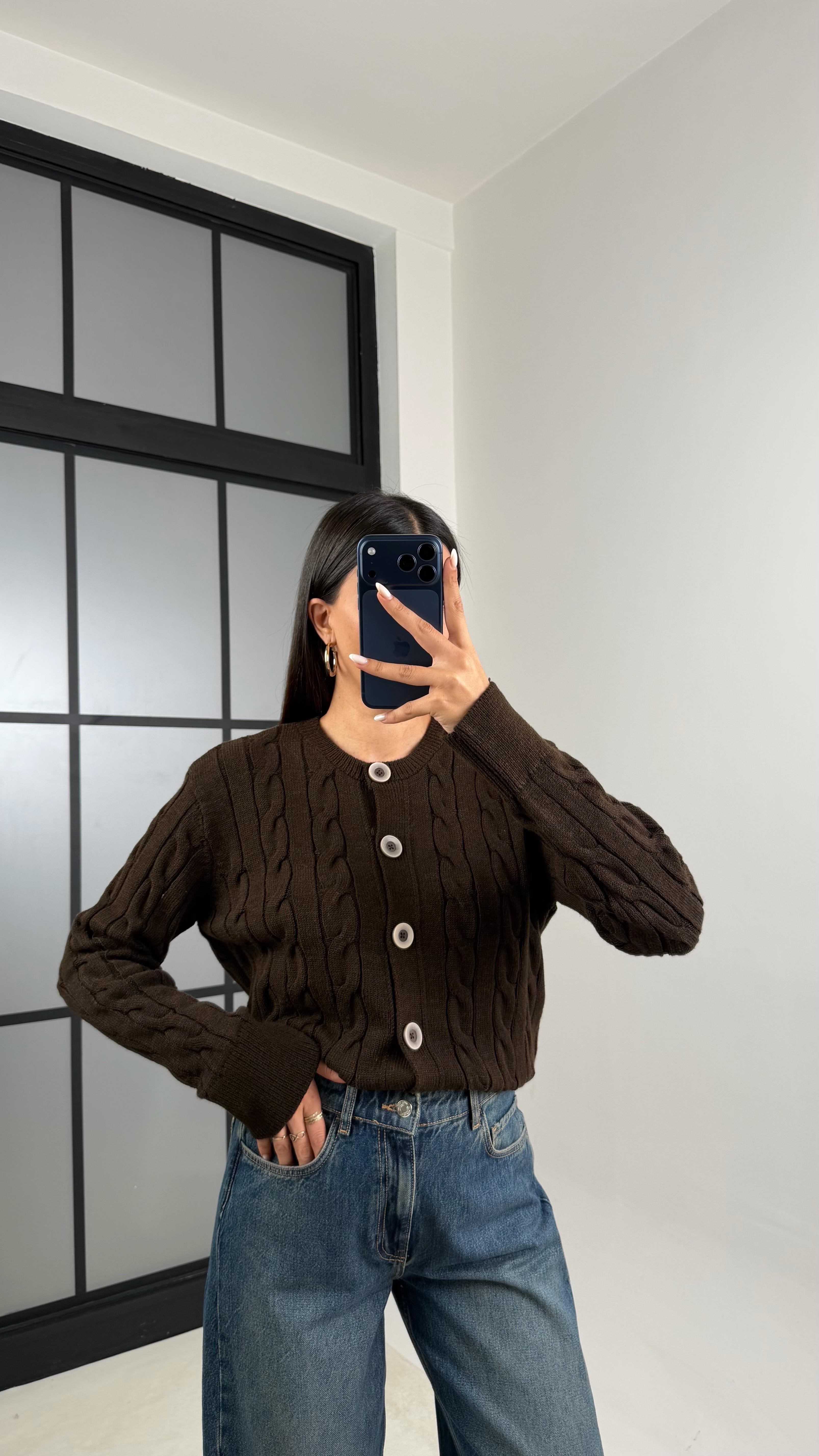 Acı Kahve Örgülü Triko Hırka GAUS-00579