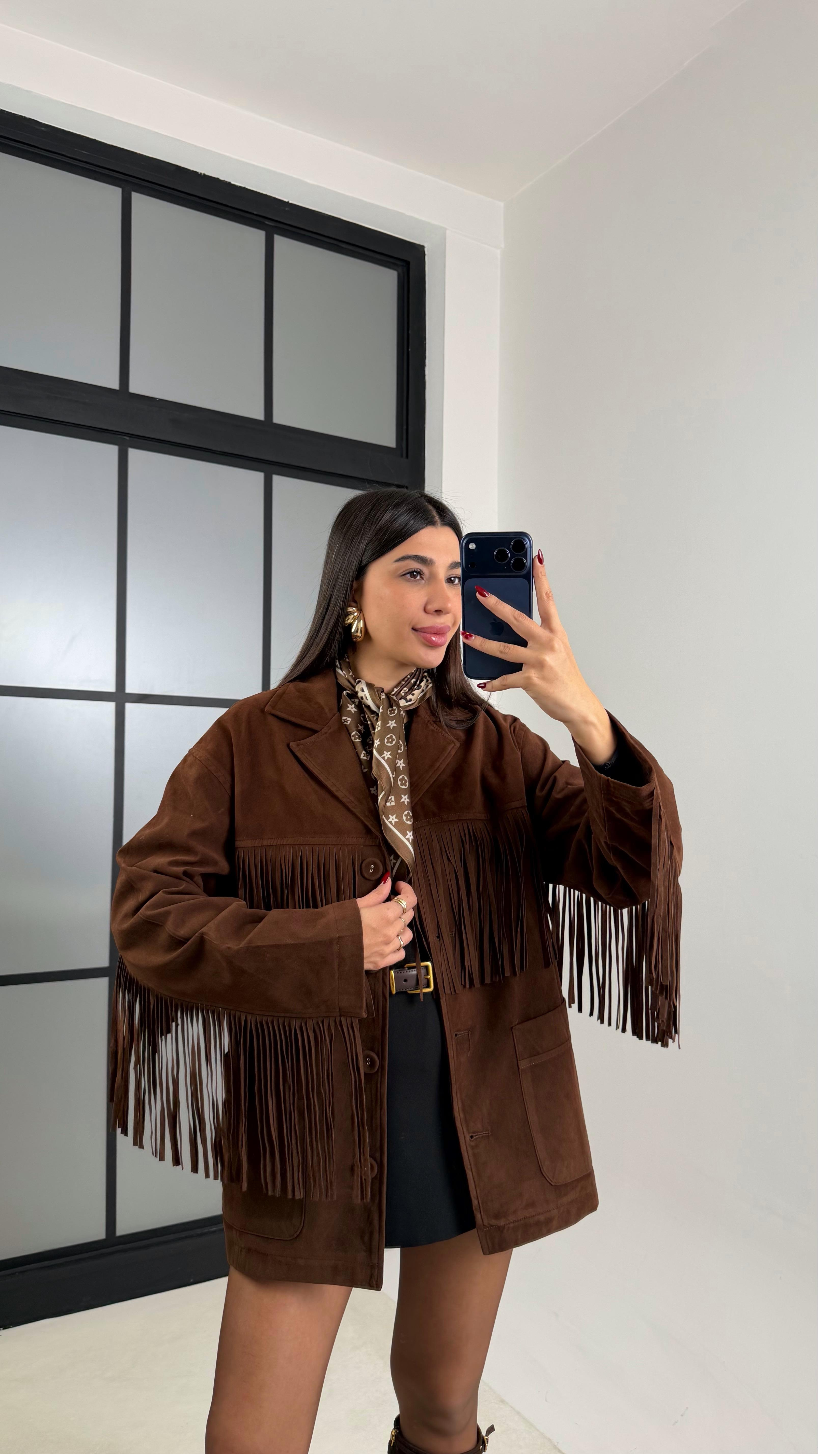 Acı Kahve Püskül Detaylı Astarlı Süet Ceket GAUS-00682