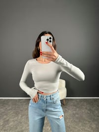 Açık Gri ZR Model Basic Uzun Kollu Crop