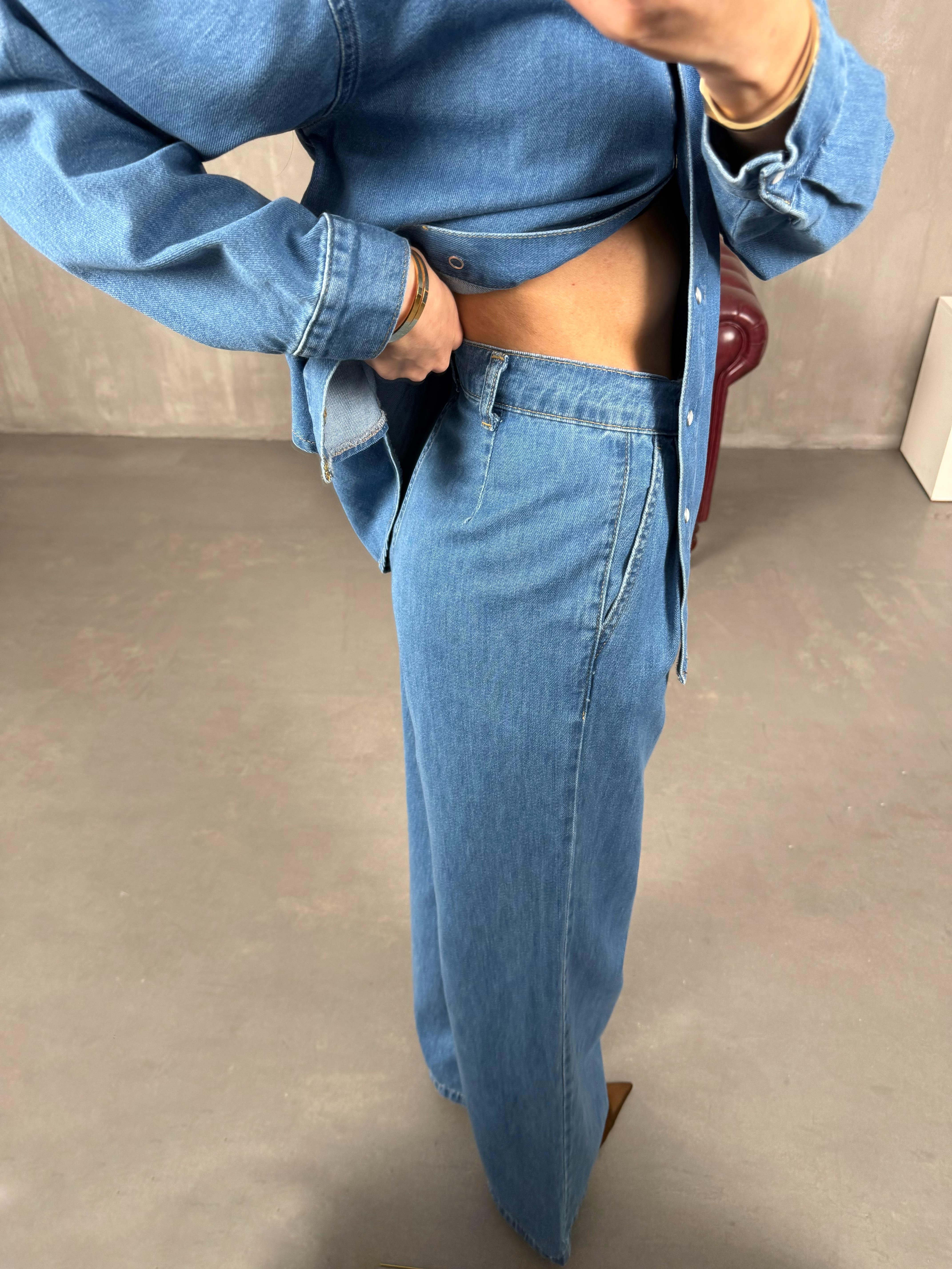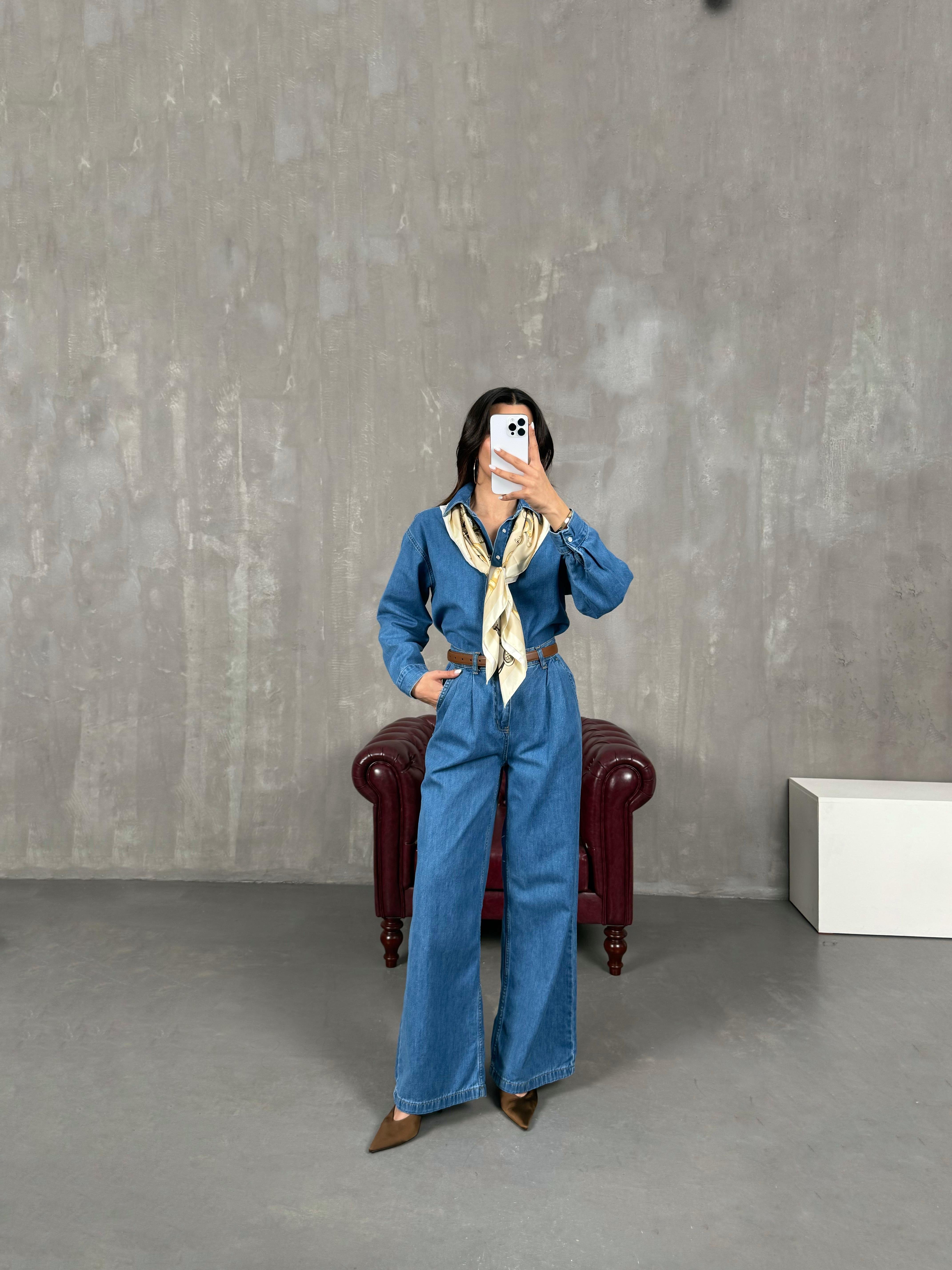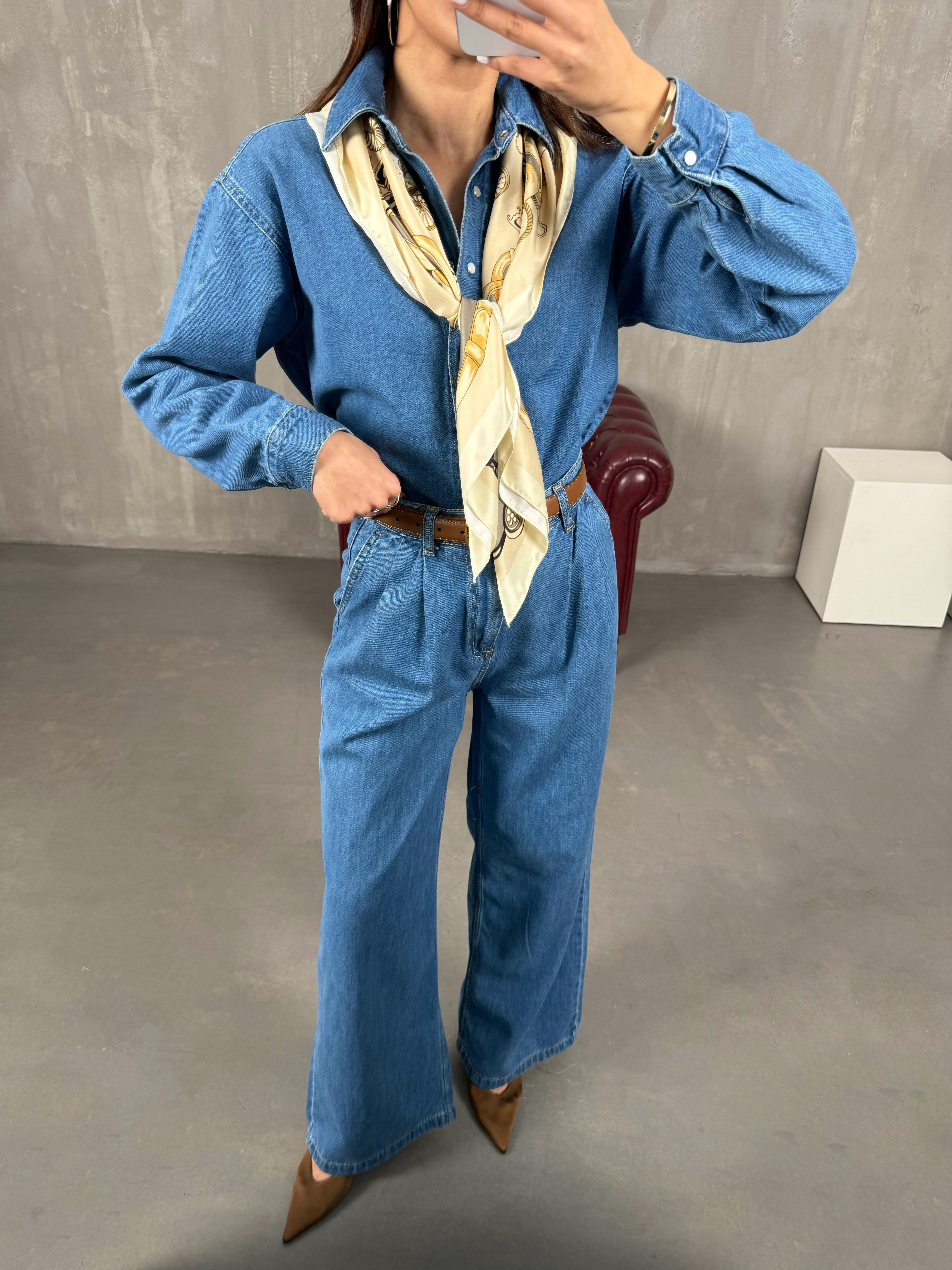 طقم دينيم أزرق فاتح بنطال قميص بأزرار كبس Gaus0002
