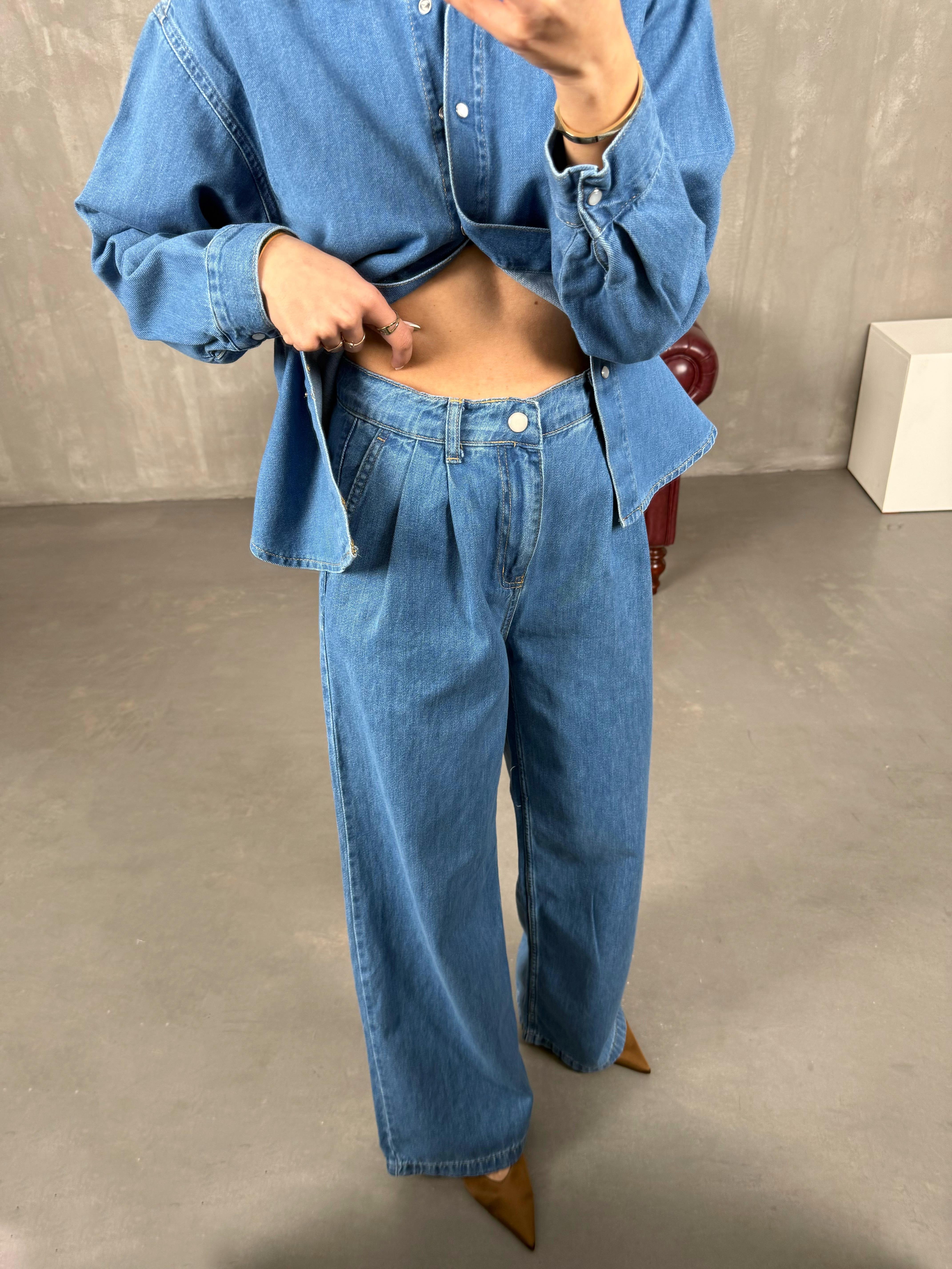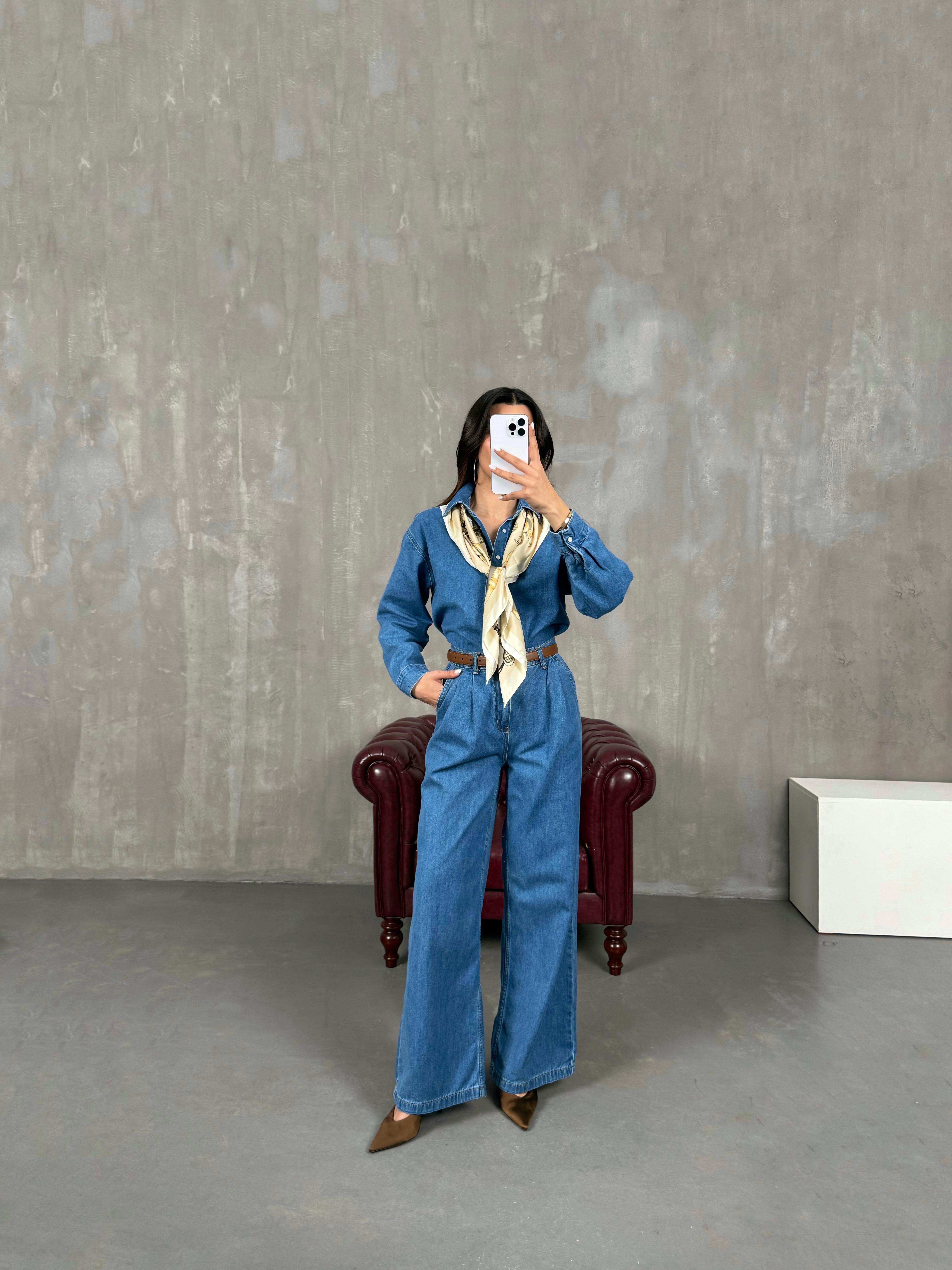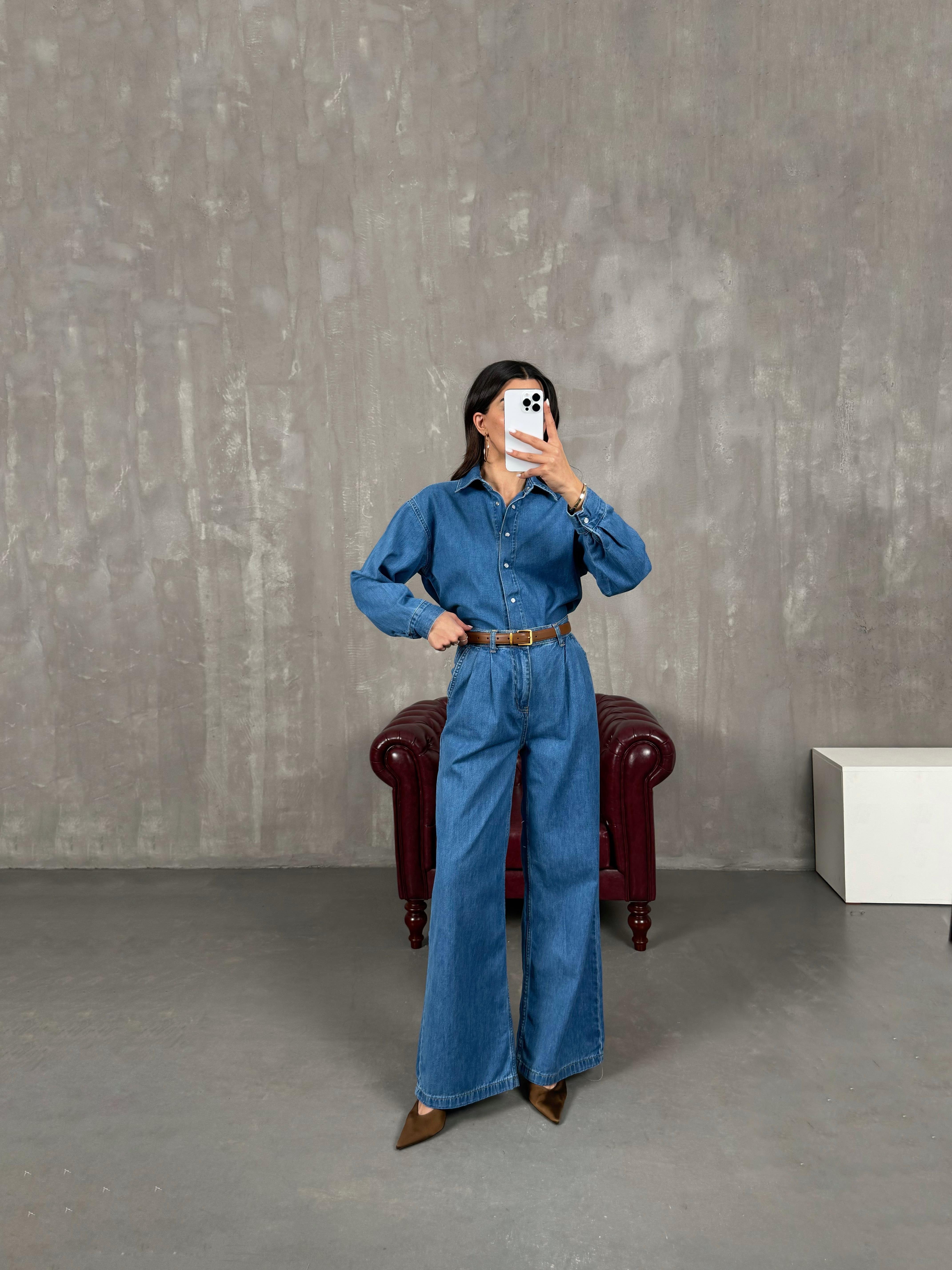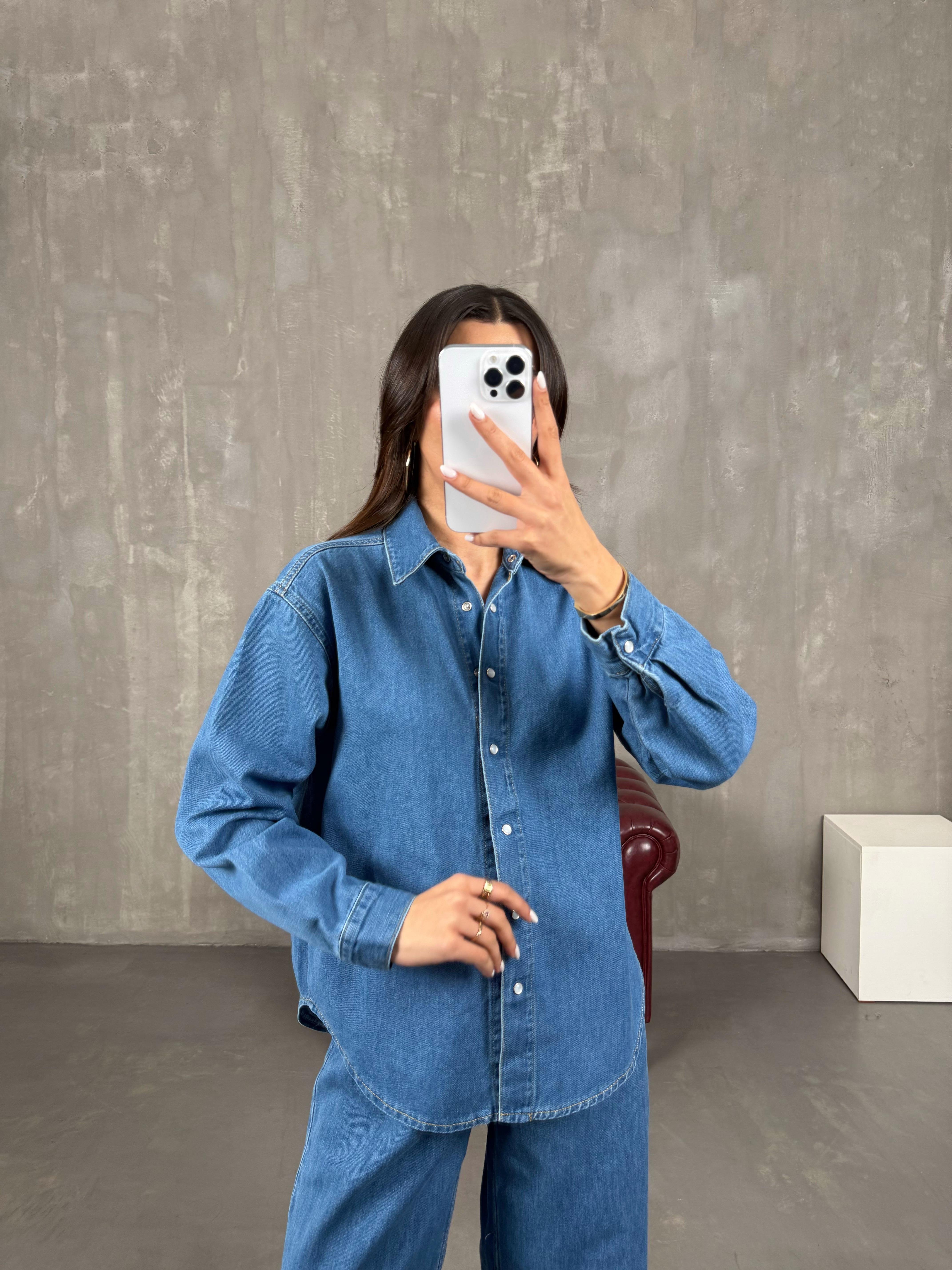طقم دينيم أزرق داكن بنطال قميص بأزرار كبس Gaus0002 طقم دينيم أزرق وسط بنطال قميص بأزرار كبس Gaus0002