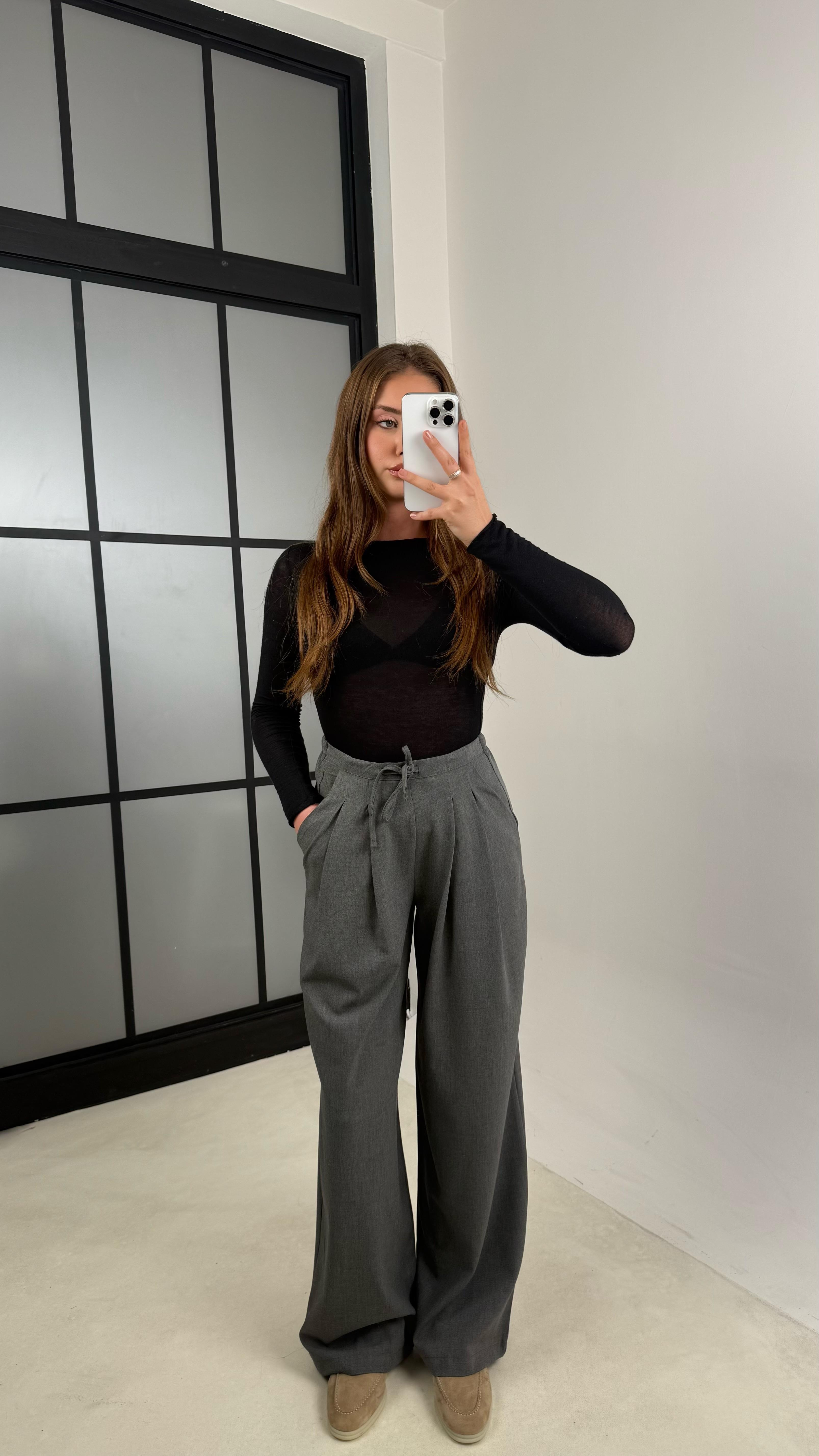 Antrasit Beli Lastikli Pile Detaylı Kumaş Pantolon GAUS-00538GAUSPANTOLONGAUS-00538