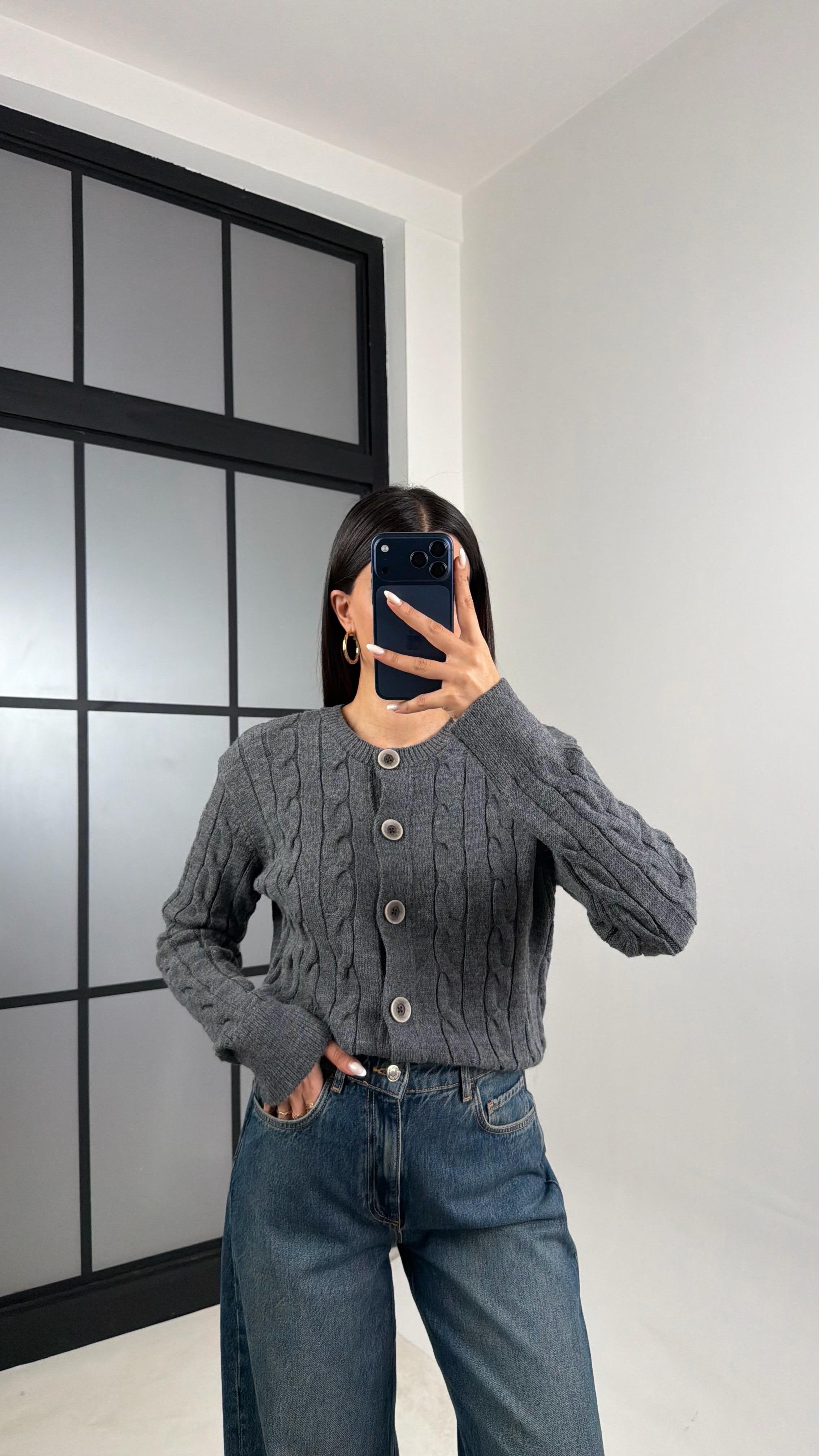 Antrasit Örgülü Triko Hırka GAUS-00579