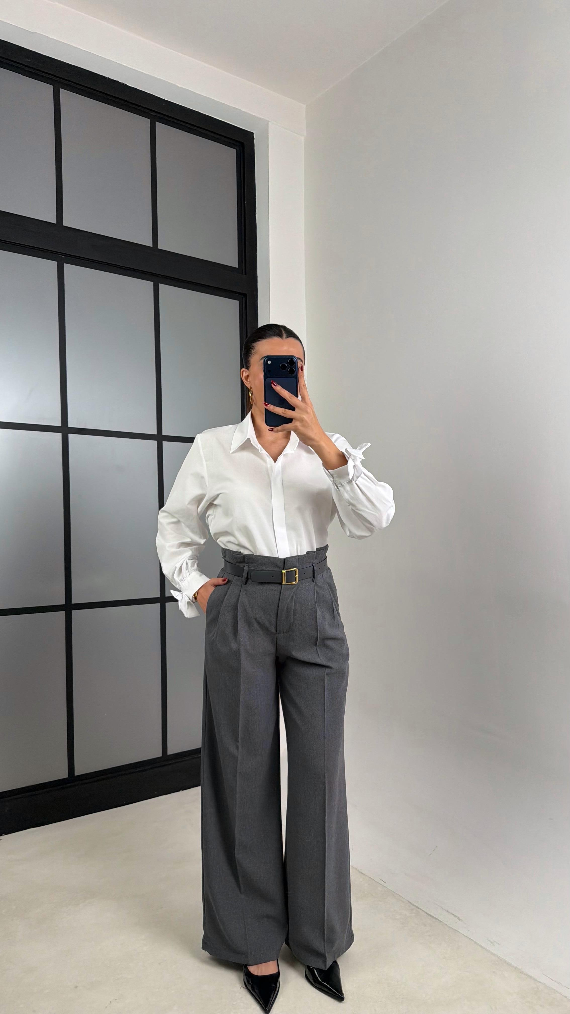 Antrasit Pile Detaylı Kemerli Kumaş Pantolon GAUS-00695GAUSPANTOLONGAUS-00695