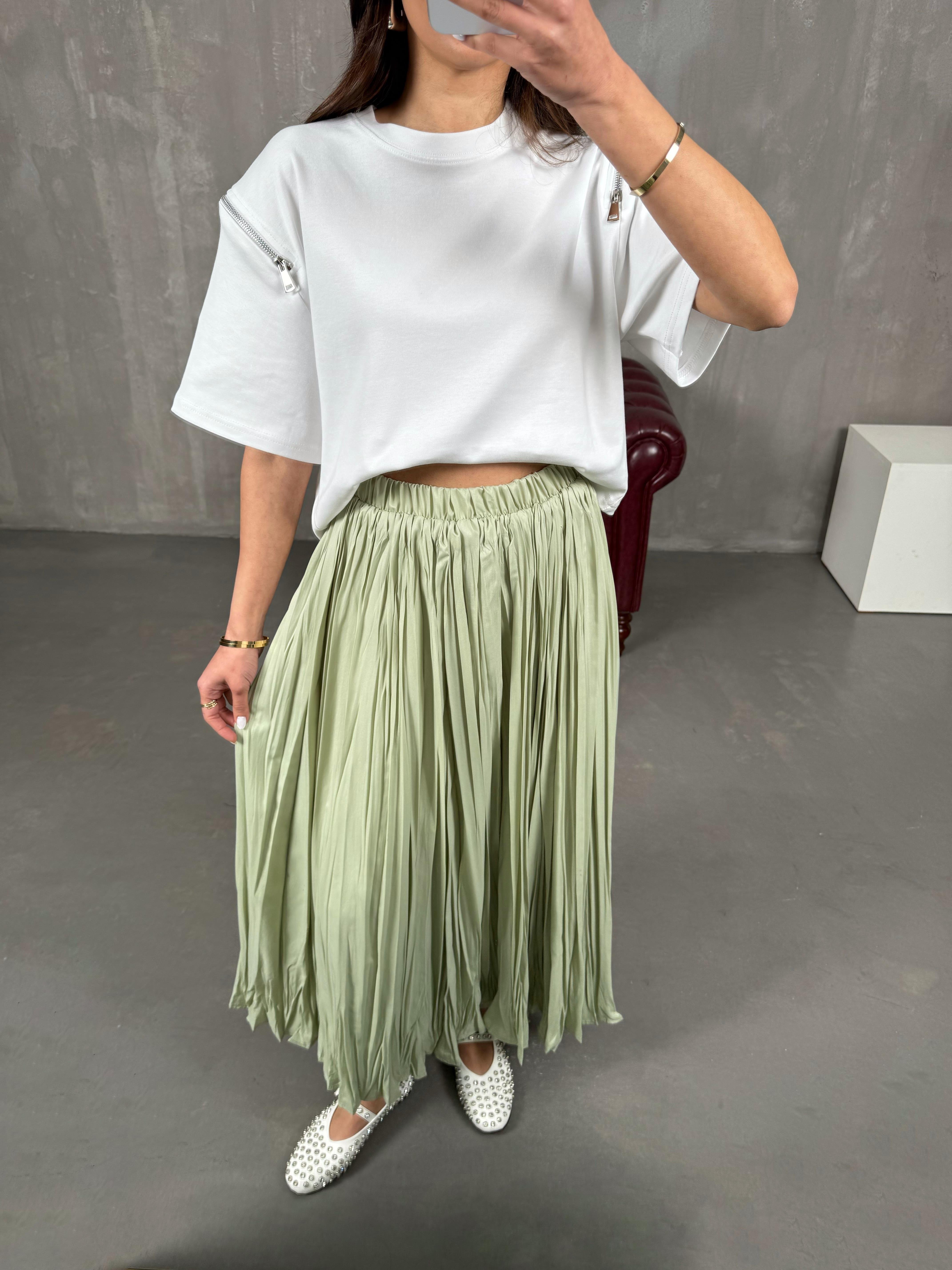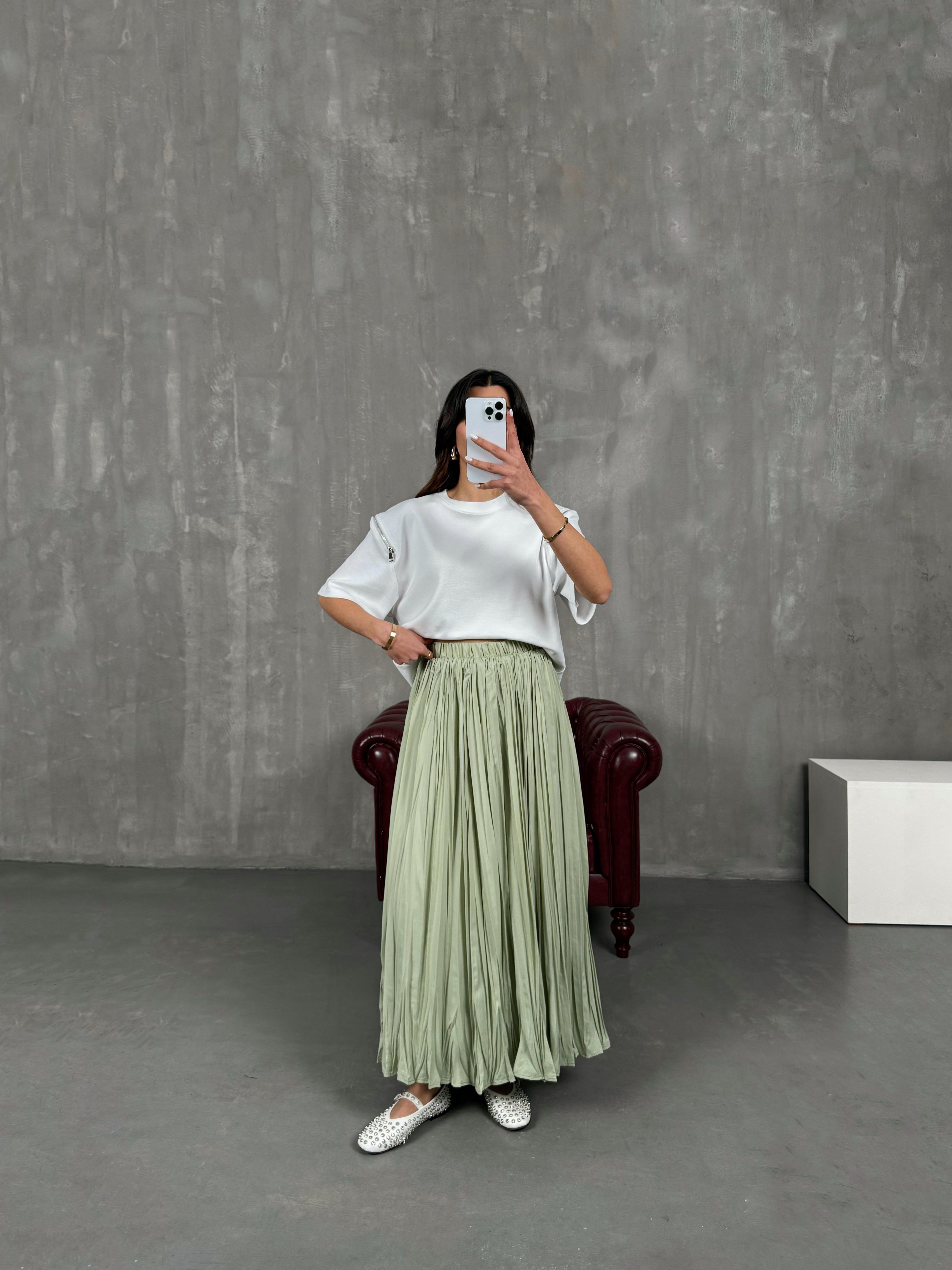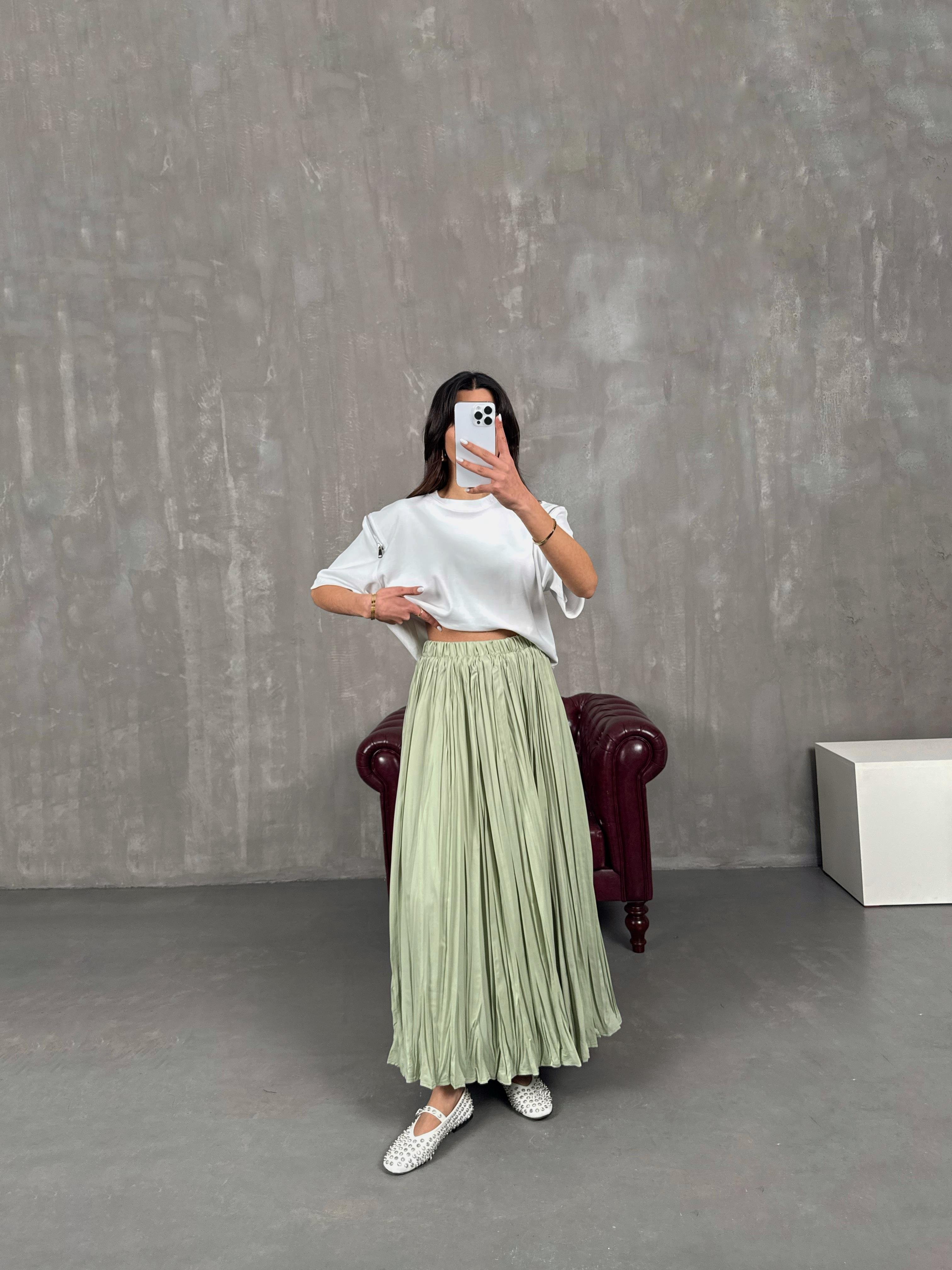 Barle Çağla Yeşili Astarlı Pinterest Kırışık Etek