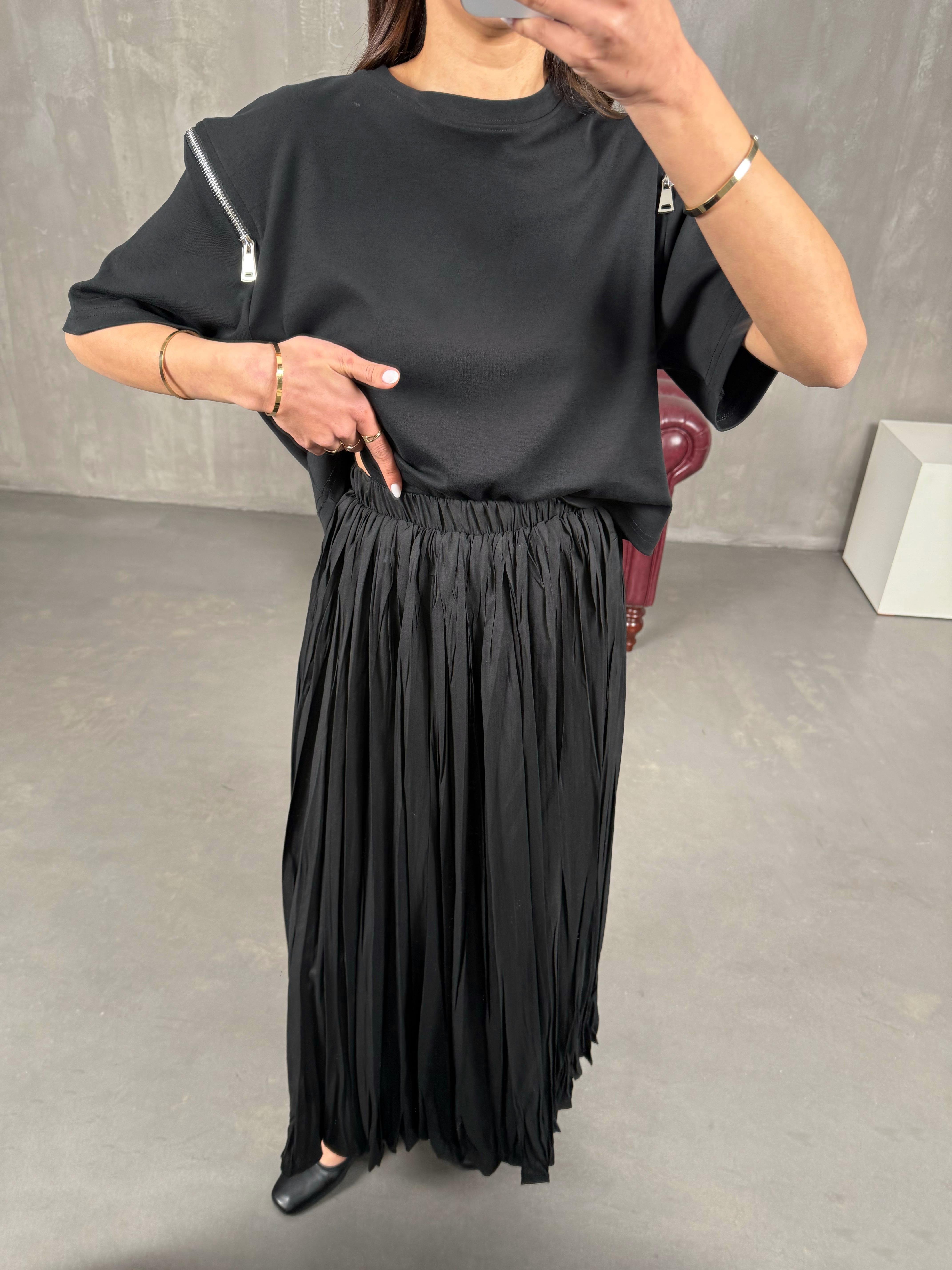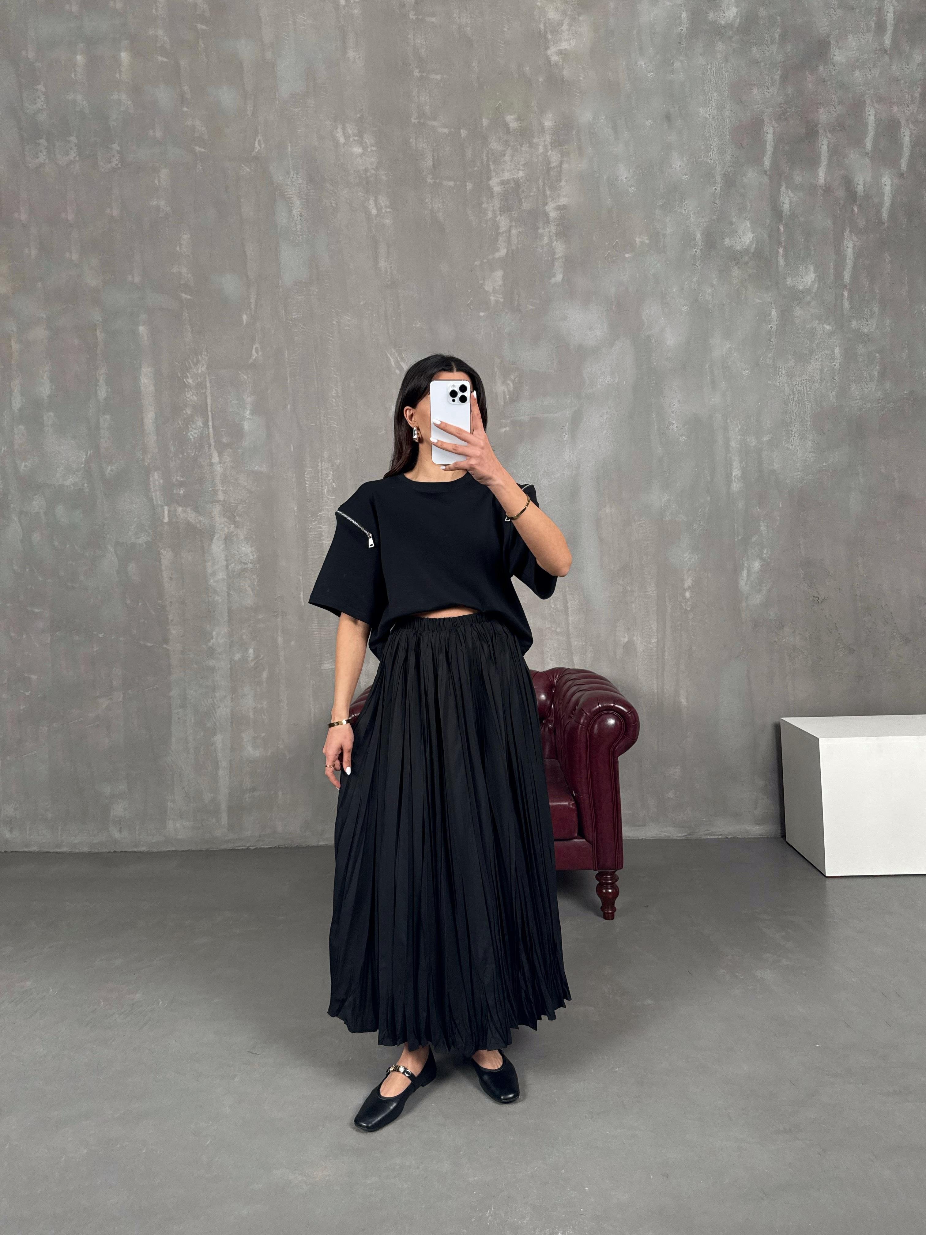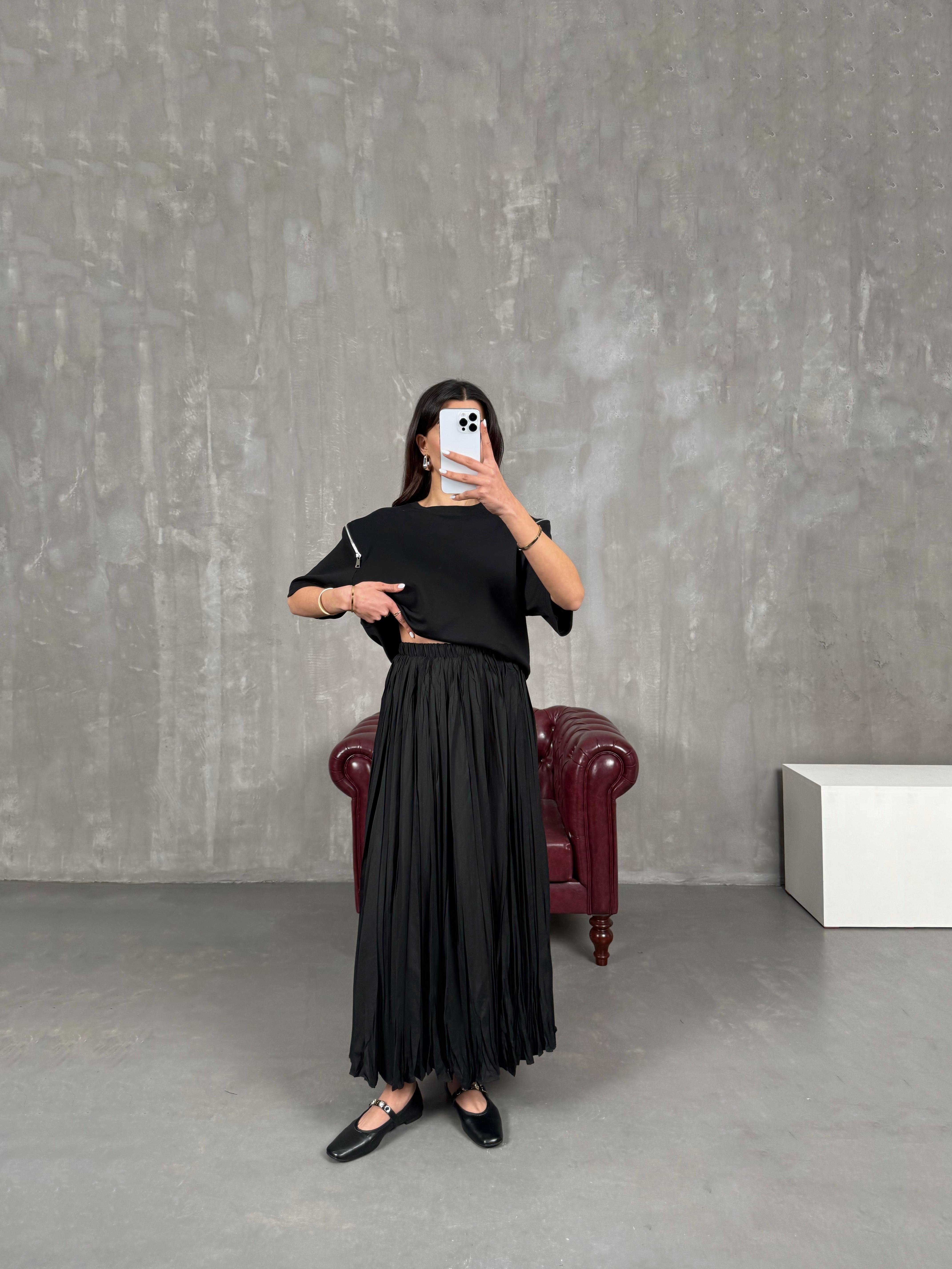 Barle Siyah Astarlı Pinterest Kırışık Etek