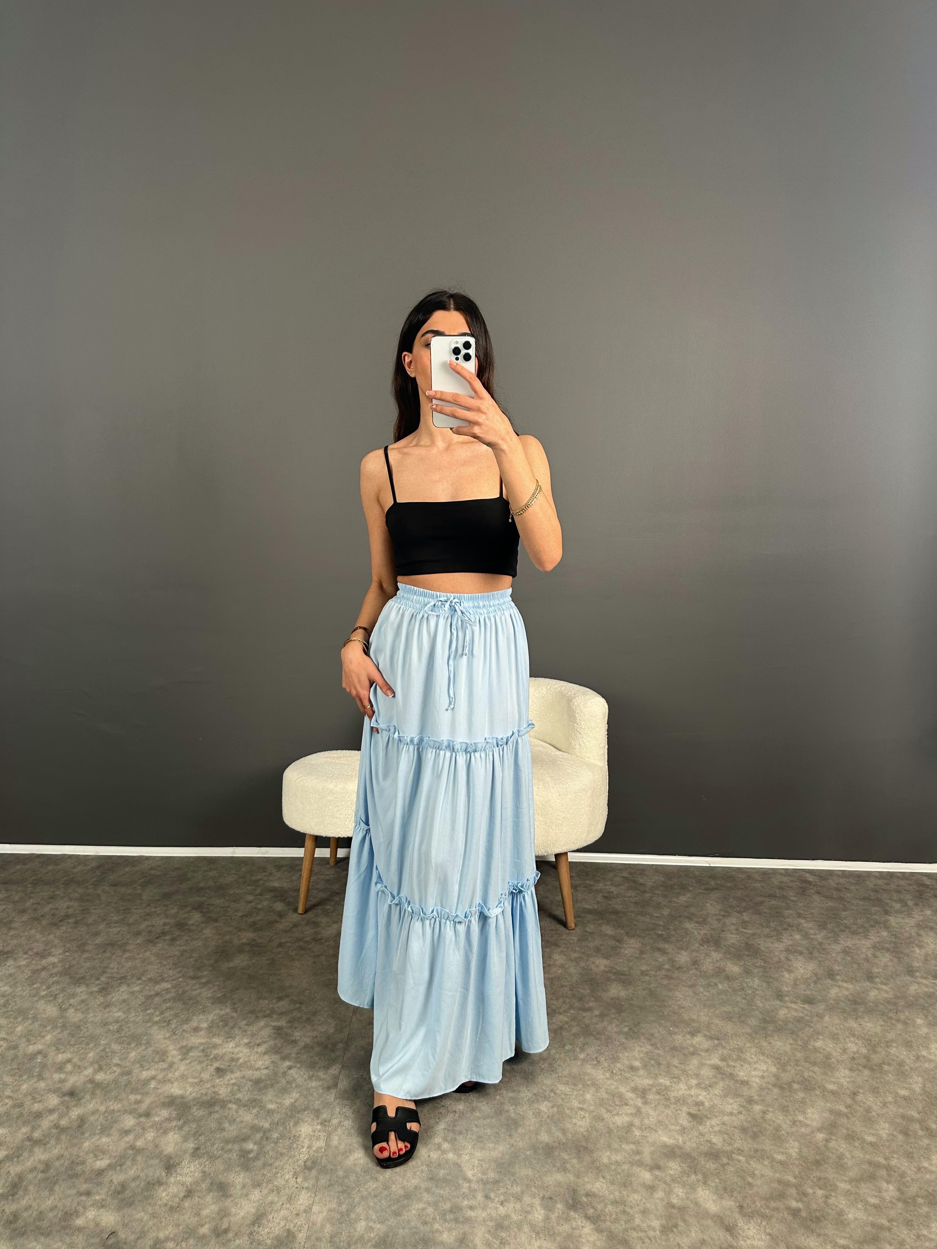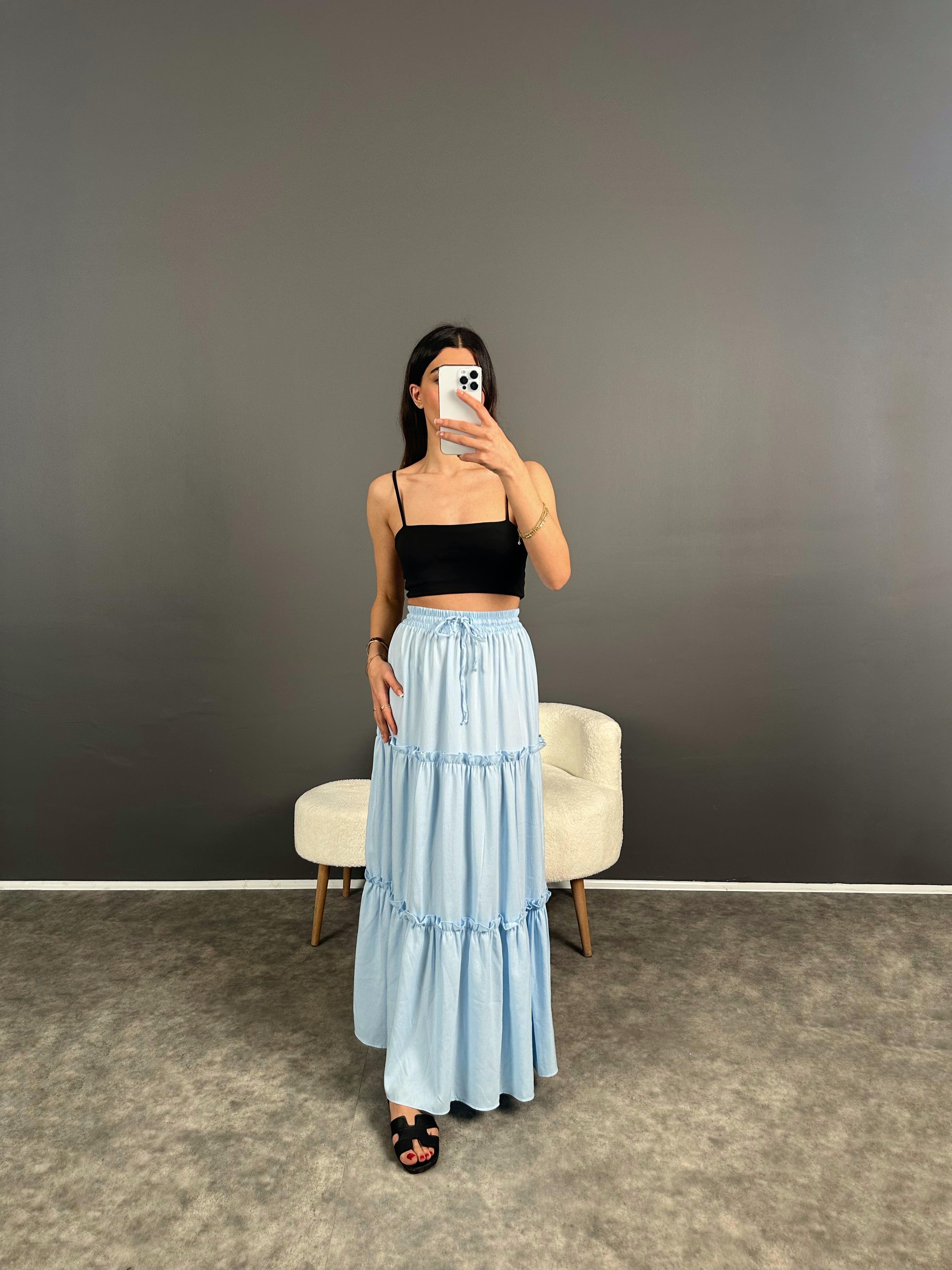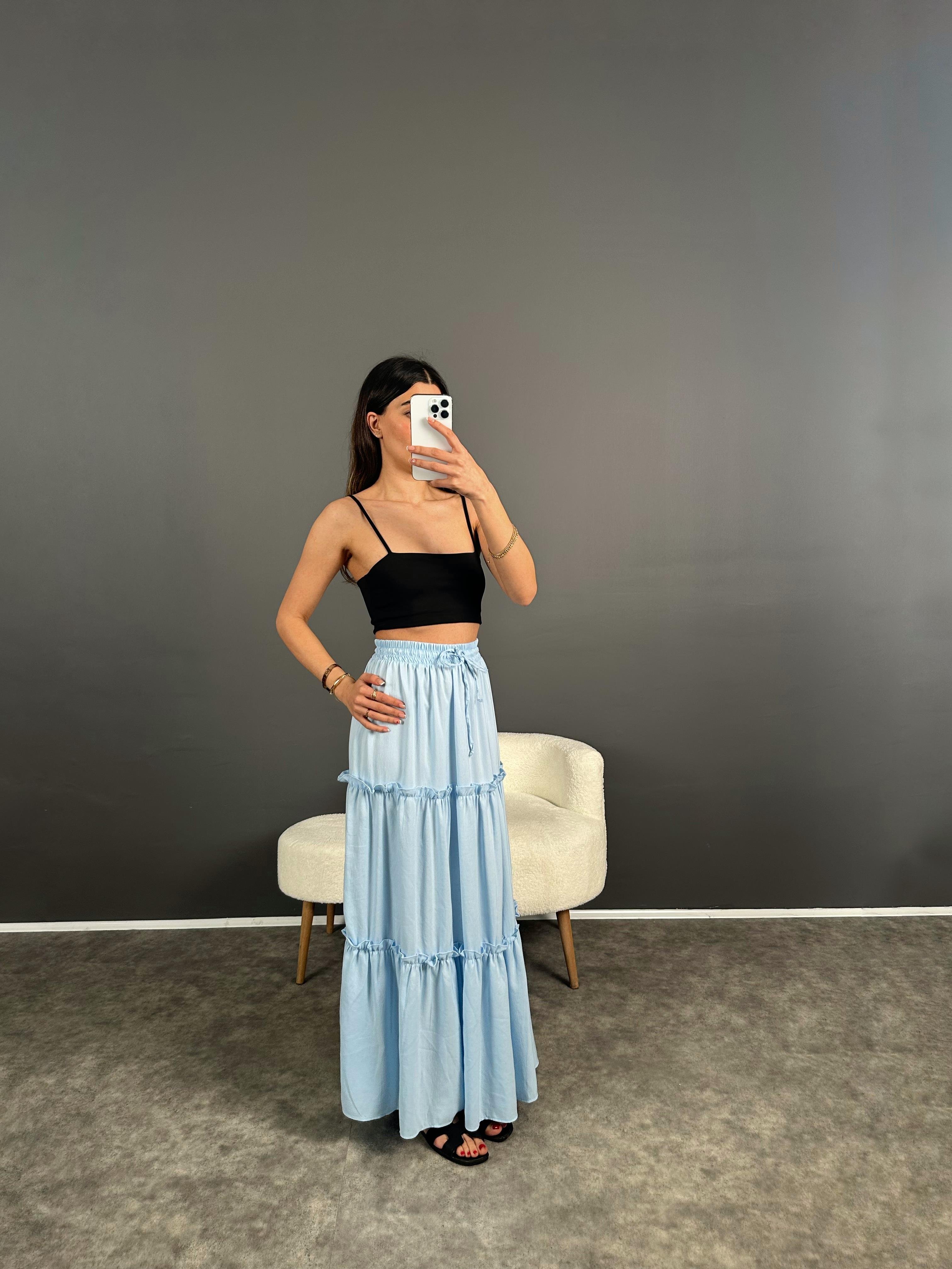 Bebe Mavi Gipe Detaylı Uzun Etek