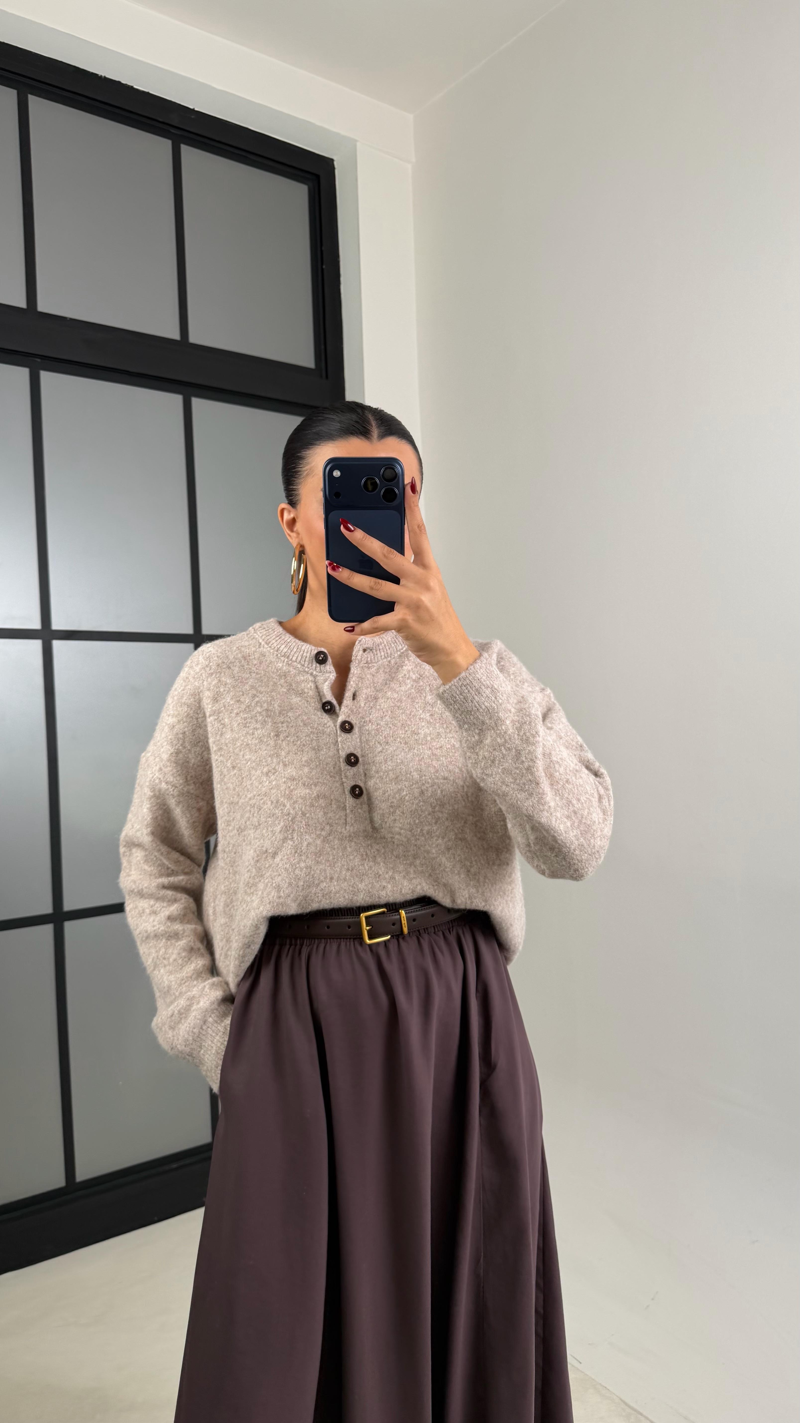 Bej Düğmeli Triko Kazak GAUS-00653GAUS الكنزات GAUS-00653