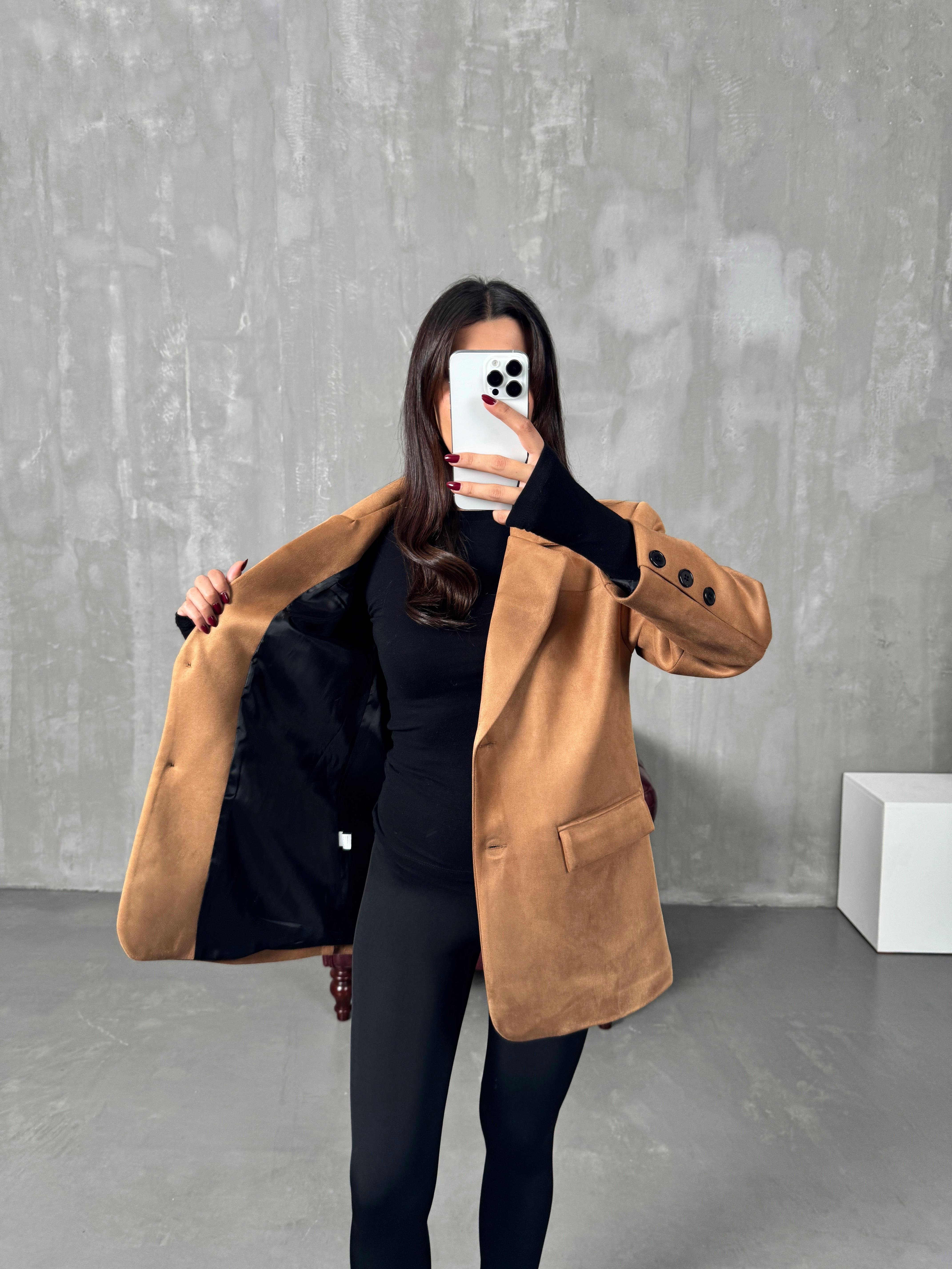Berta Camel Astarlı Süet Ceket