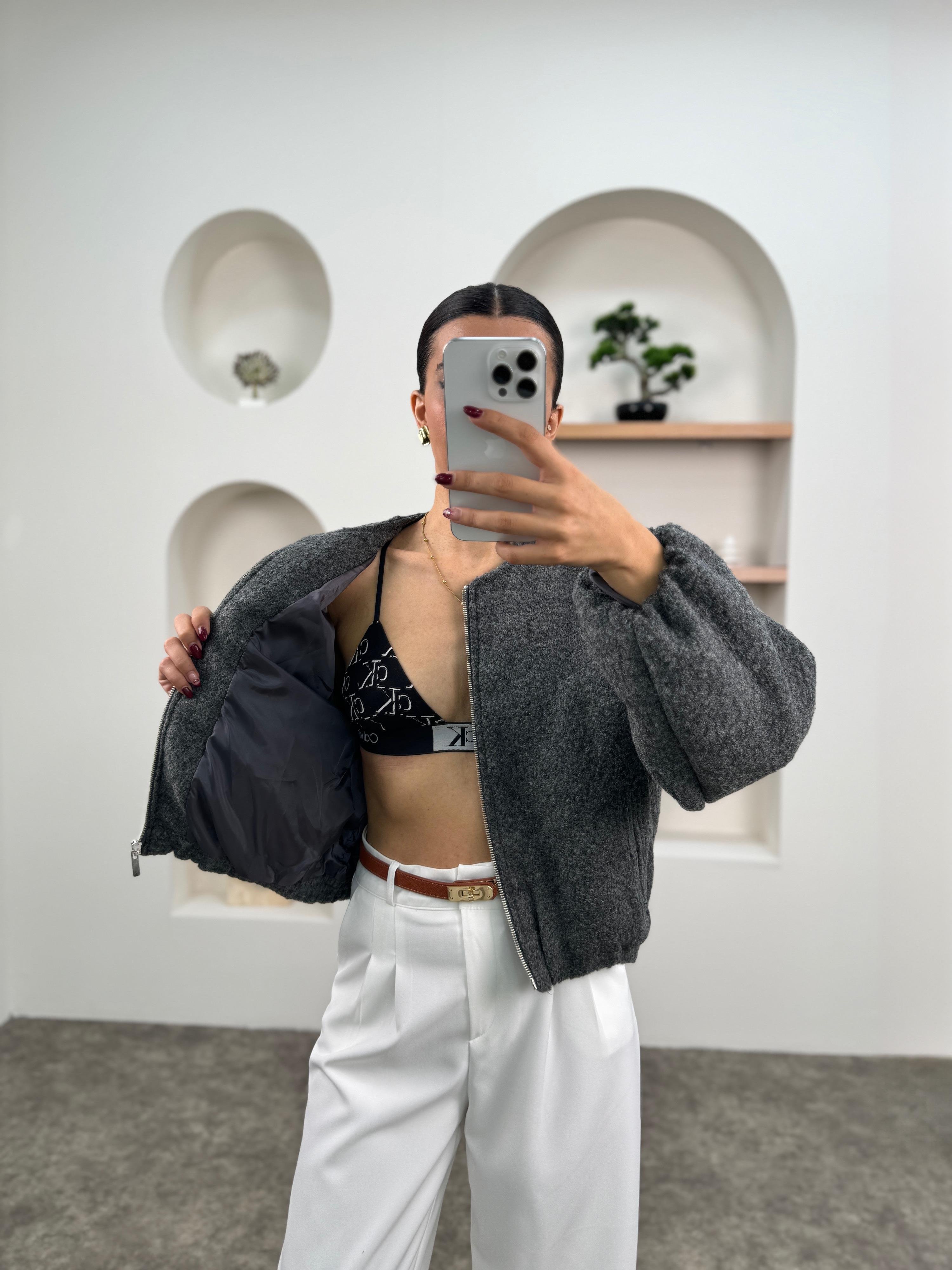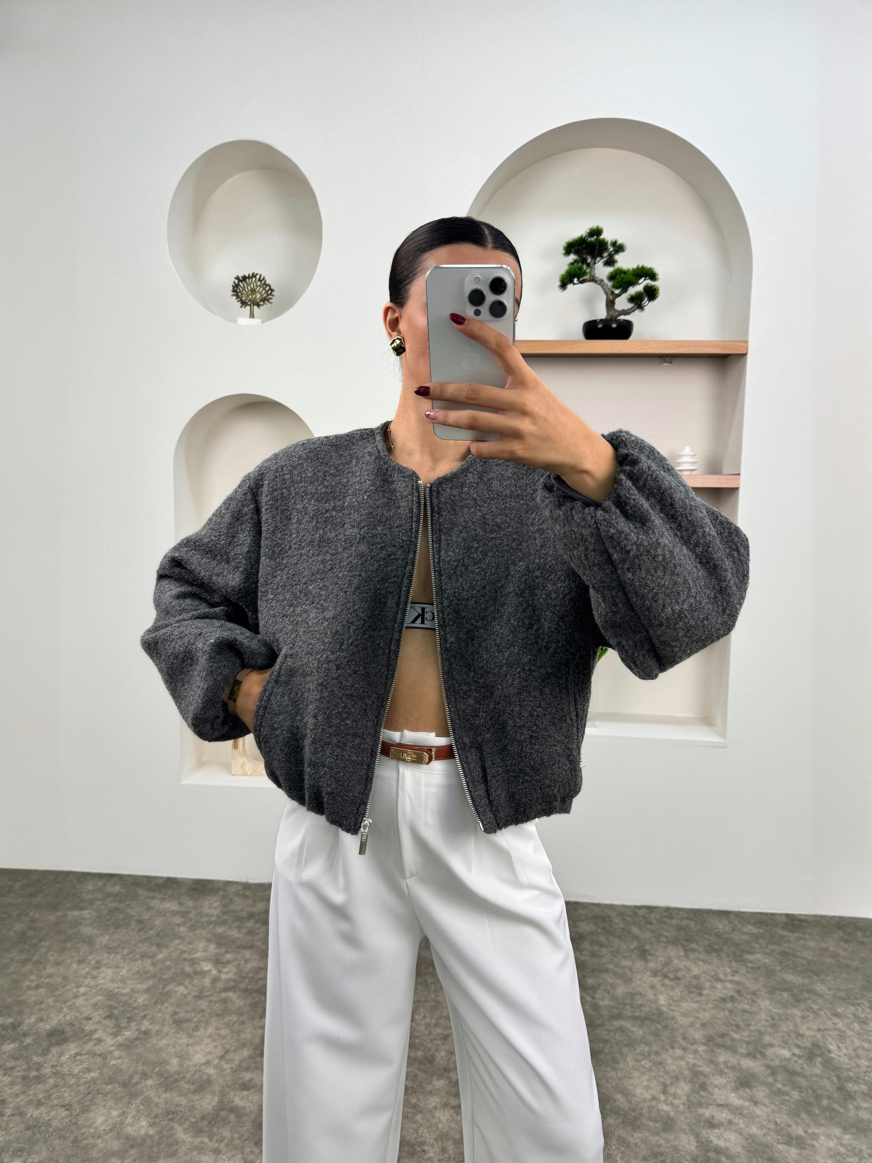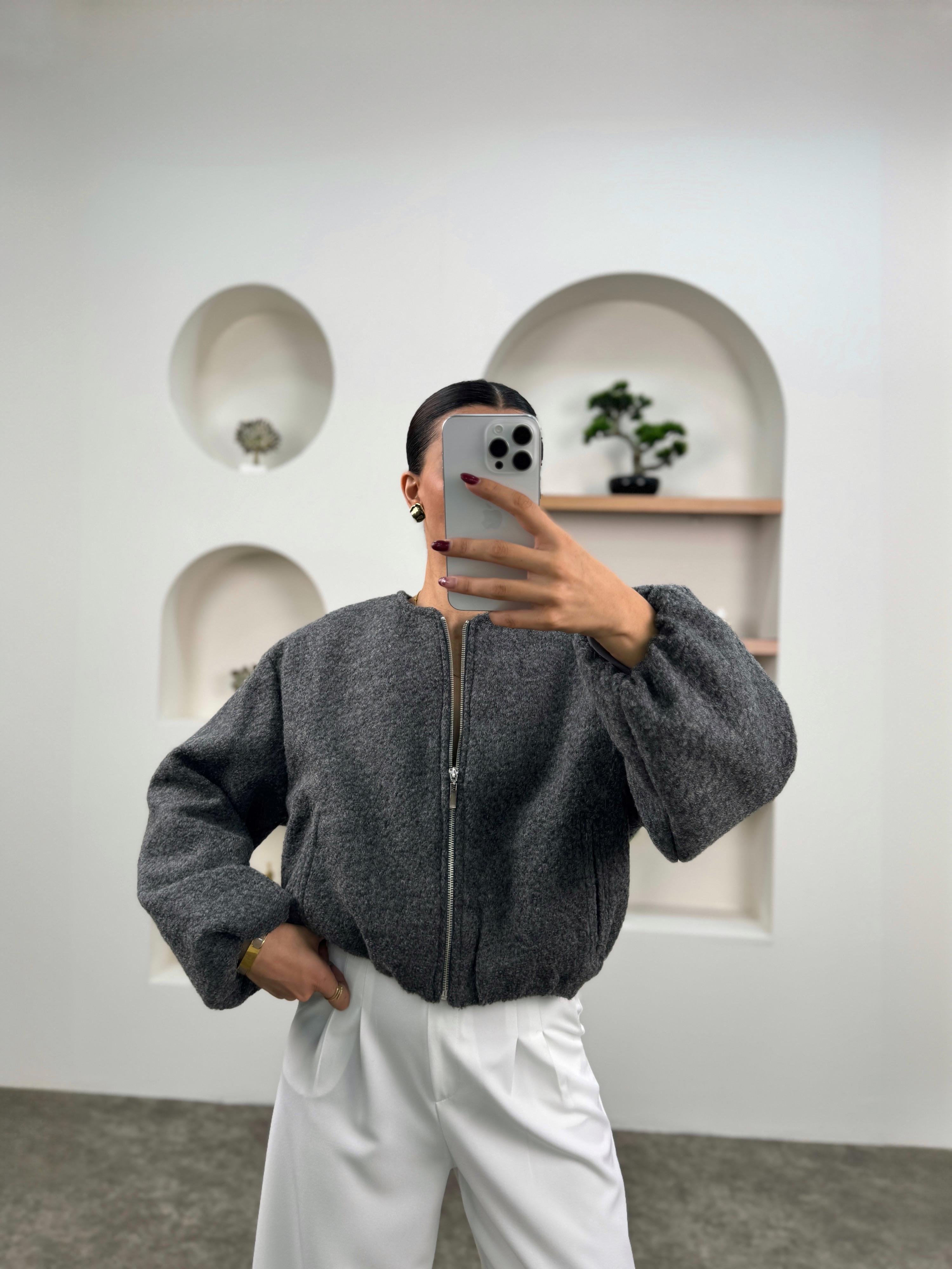 Betty Antrasit ZR Model Balon Kollu Astarlı Kaşe Bomber Ceket