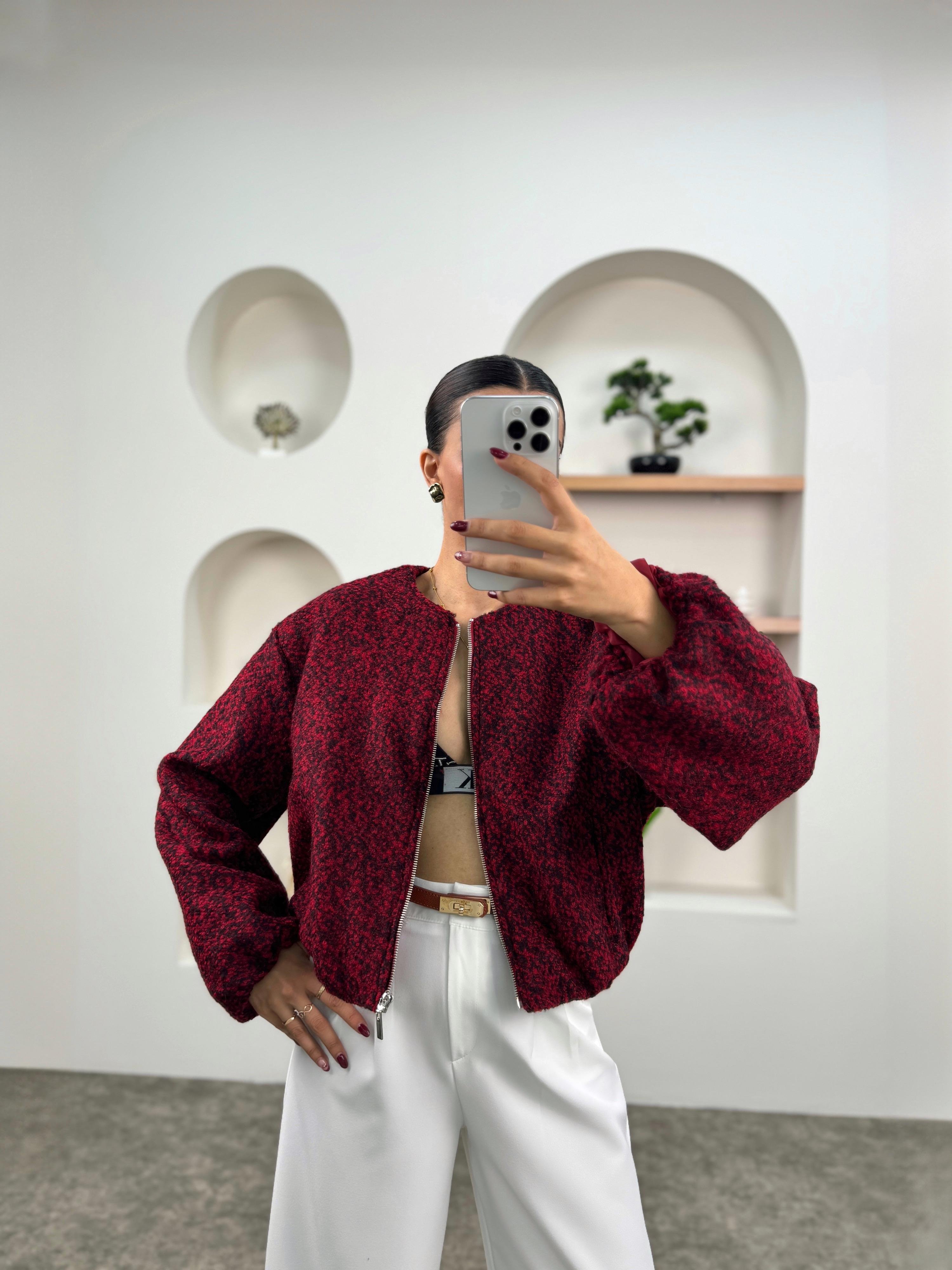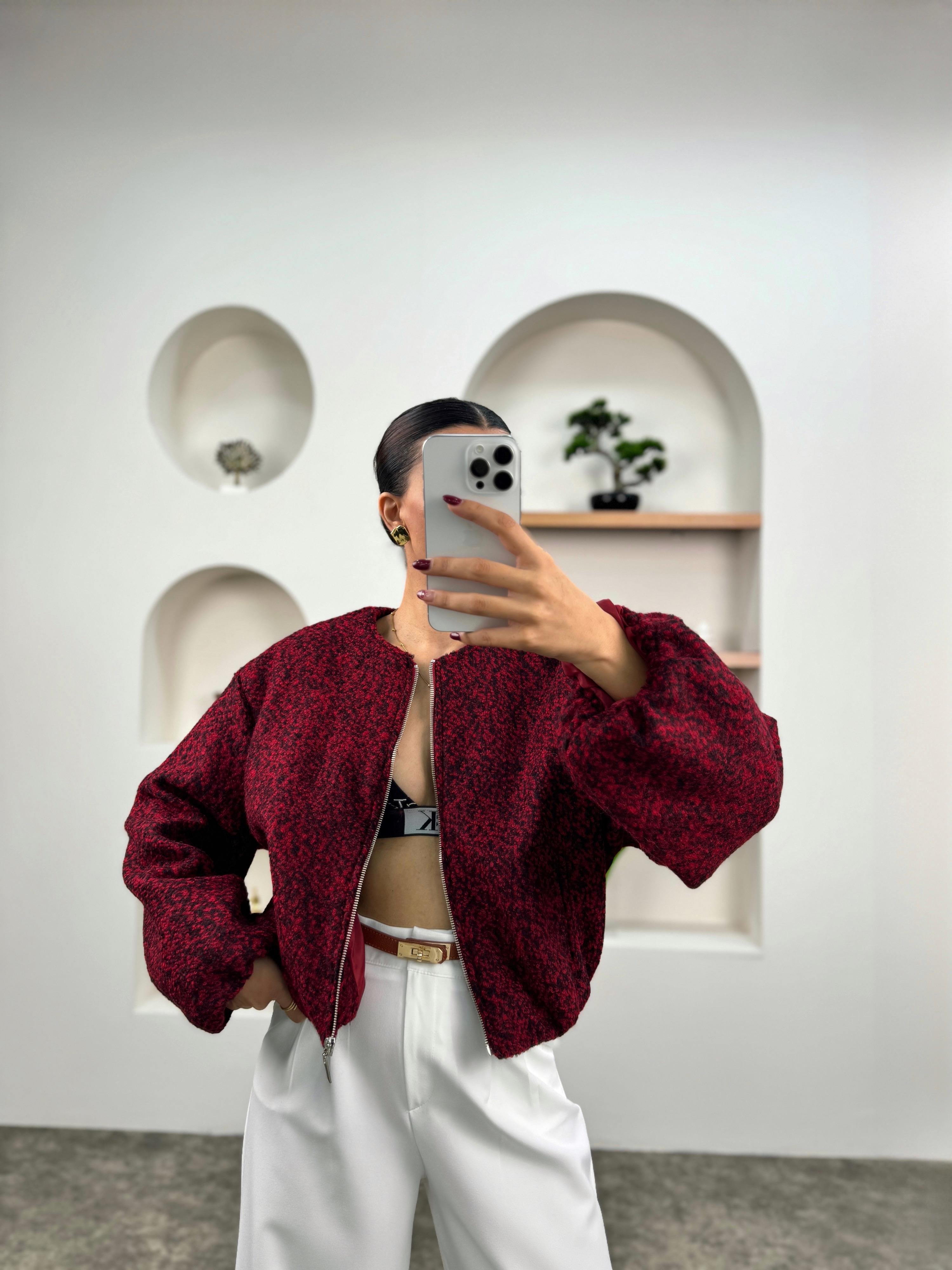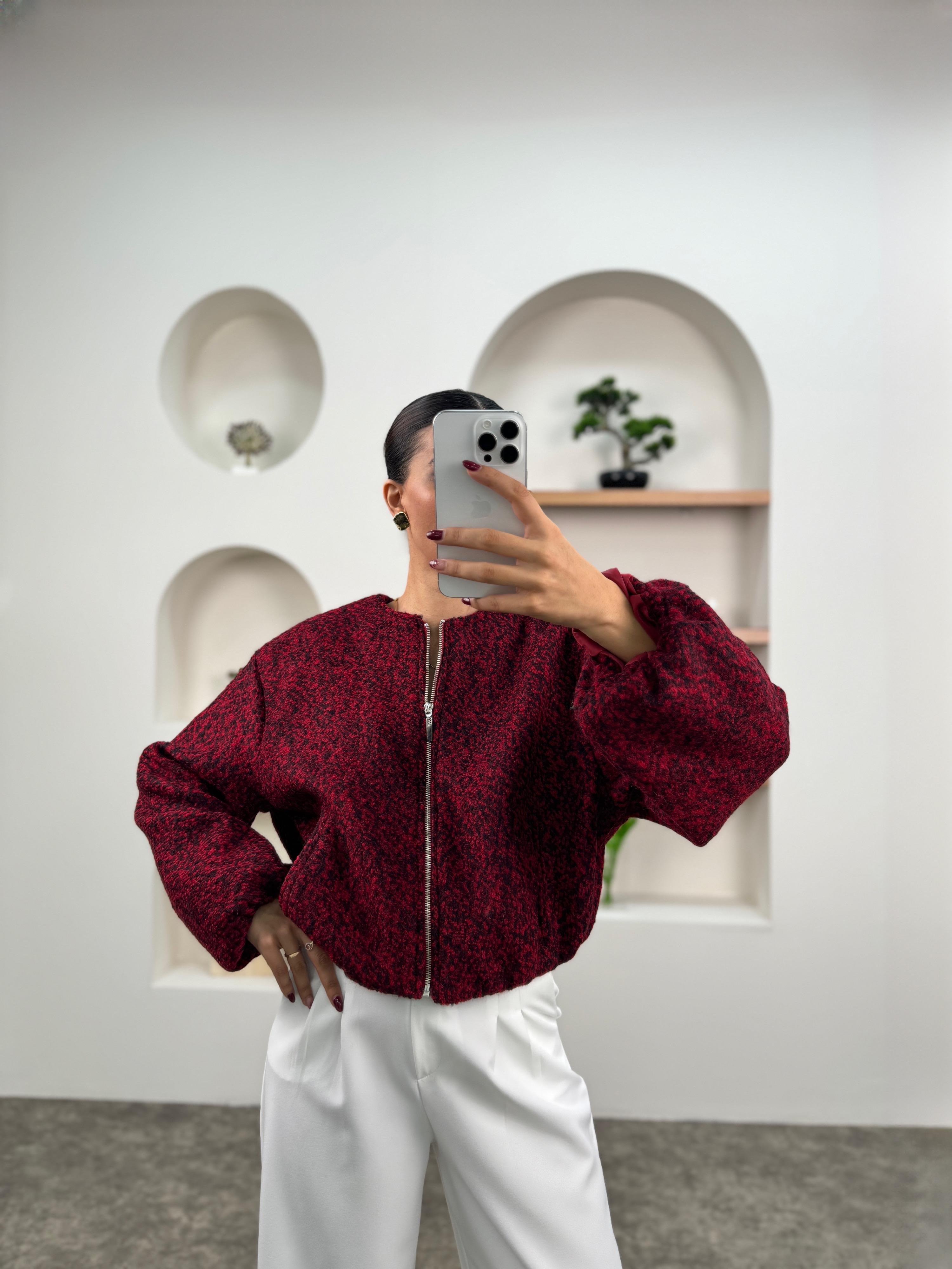 Betty Bordo ZR Model Balon Kollu Astarlı Kaşe Bomber Ceket