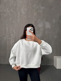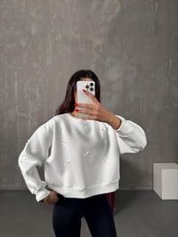Beyaz Fiyonk Detaylı Şardonlu Sweat
