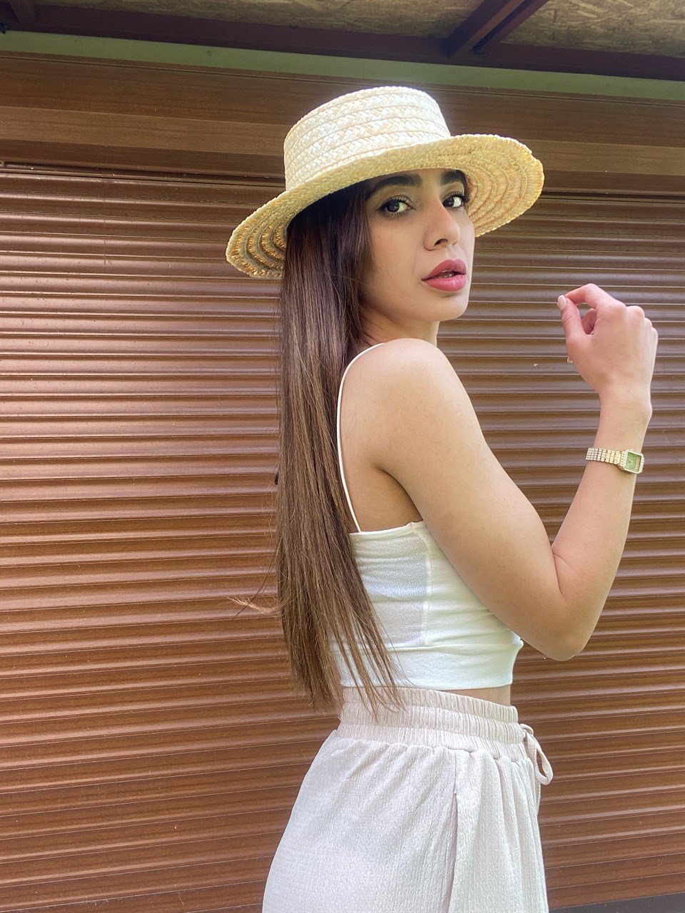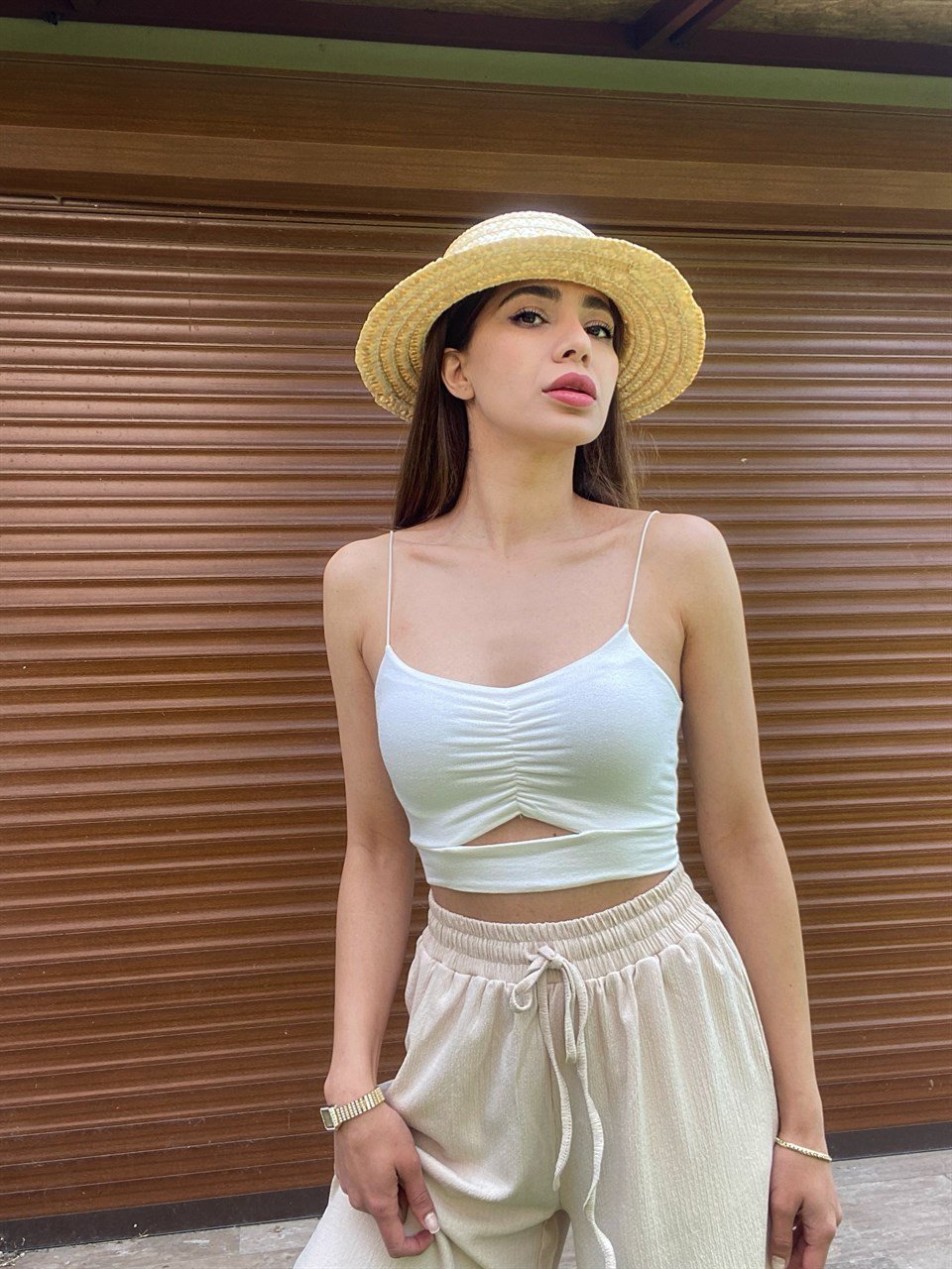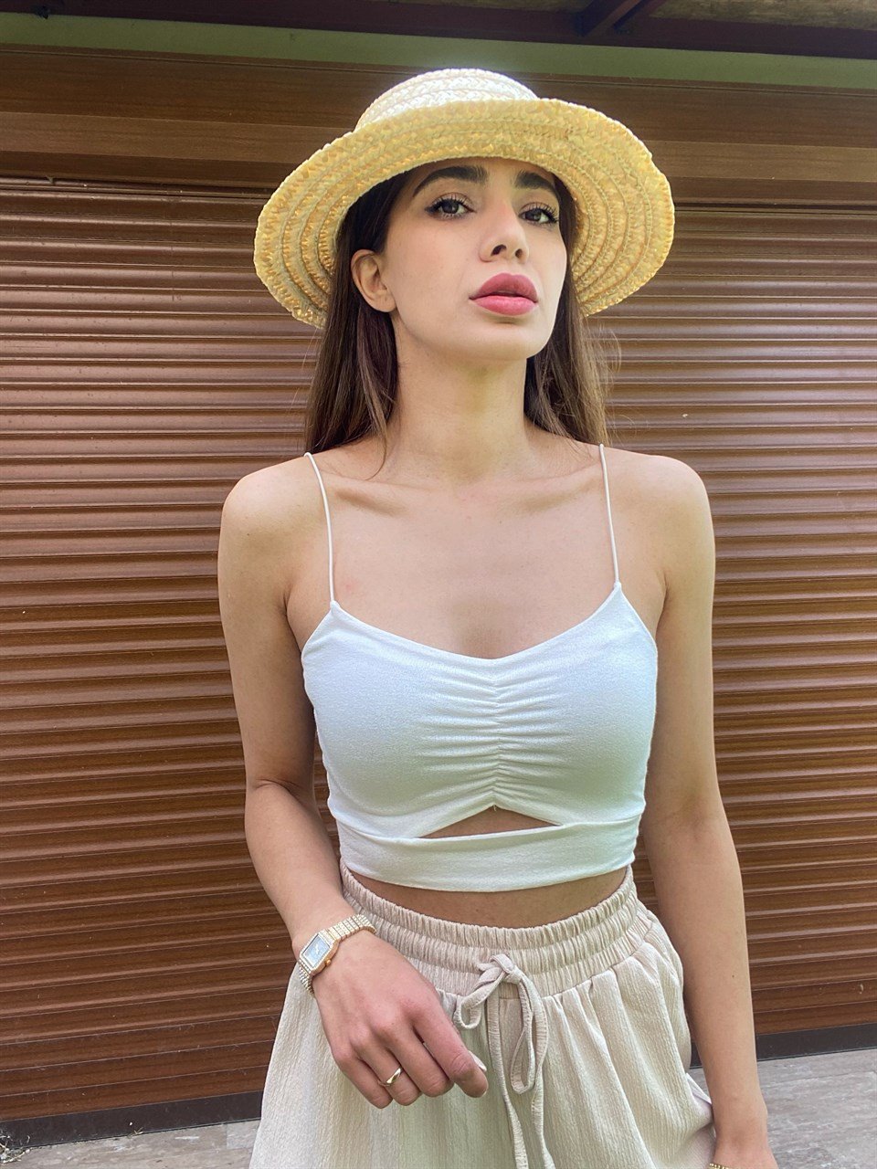 Beyaz İp Askılı Dekolteli Crop