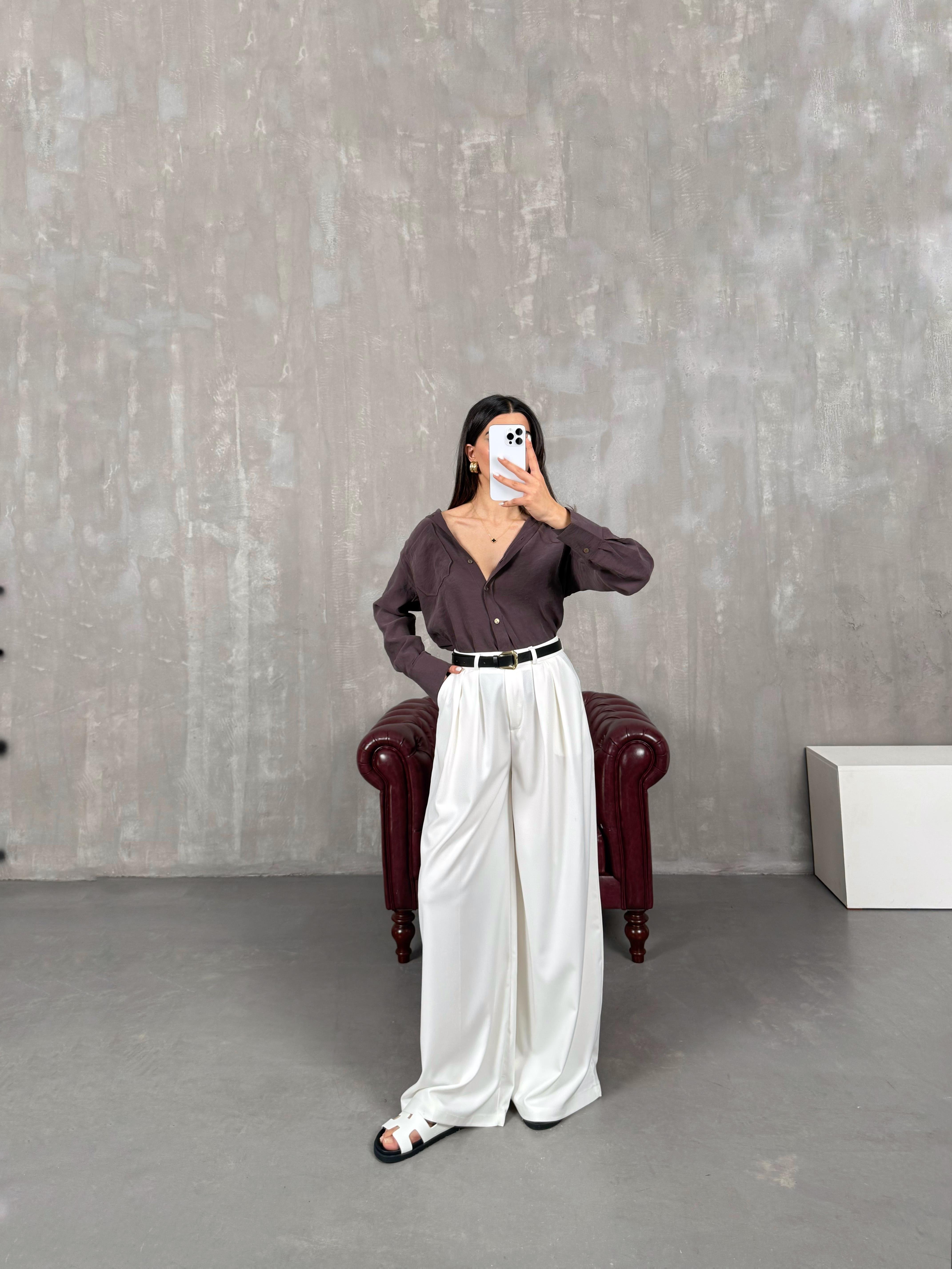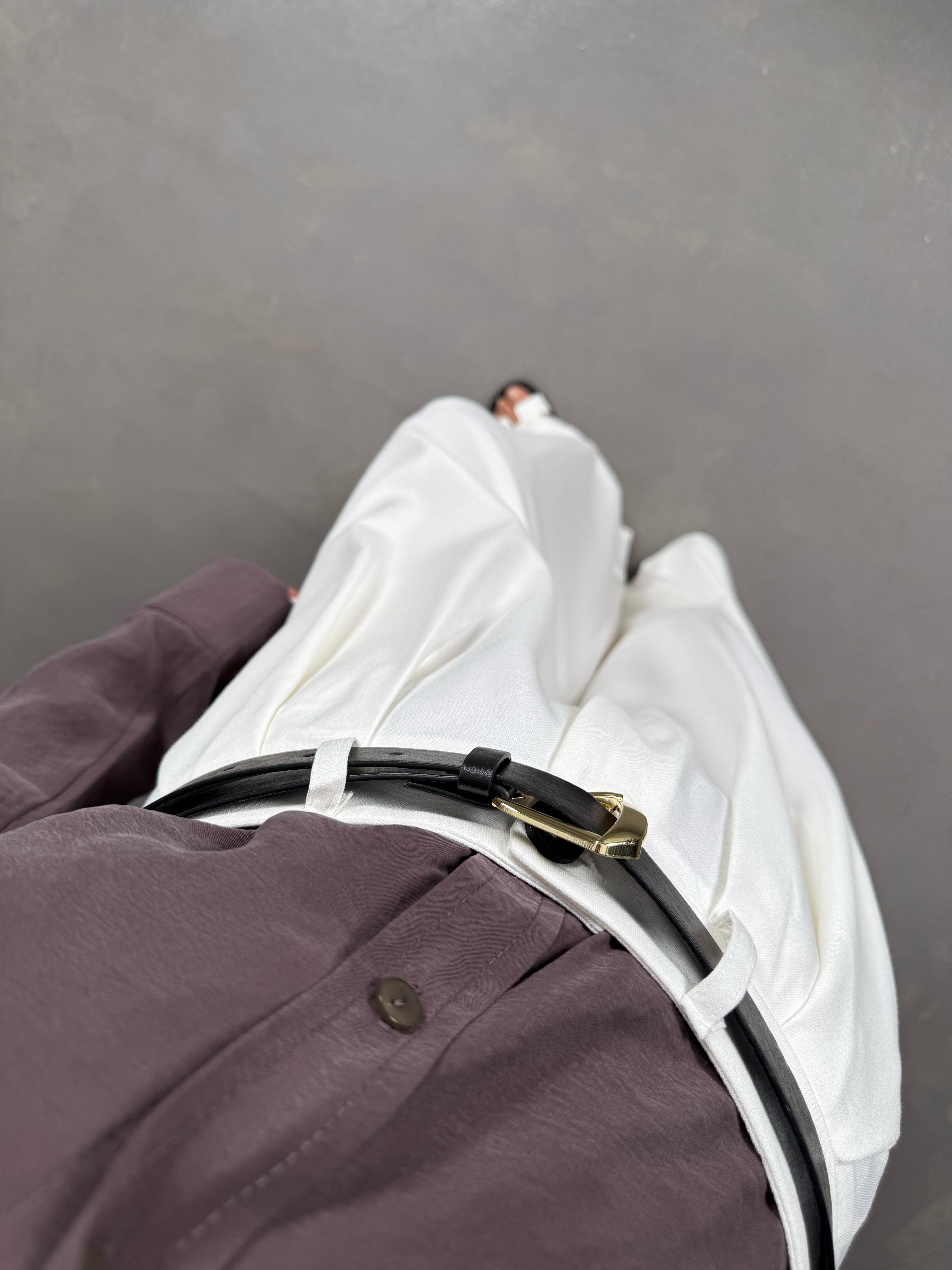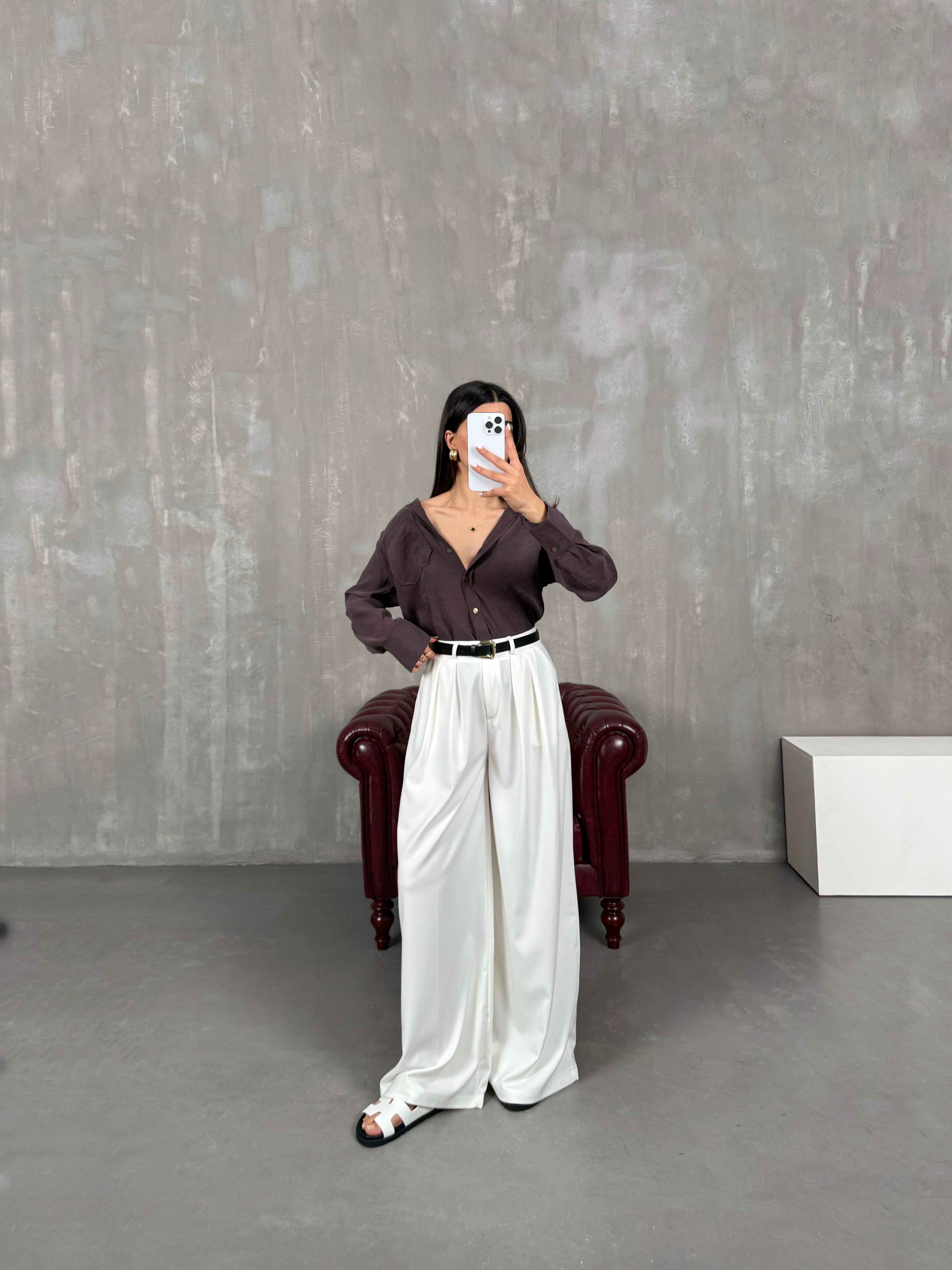 Beyaz Kemerli Bol Paça Pantolon Gaus00076