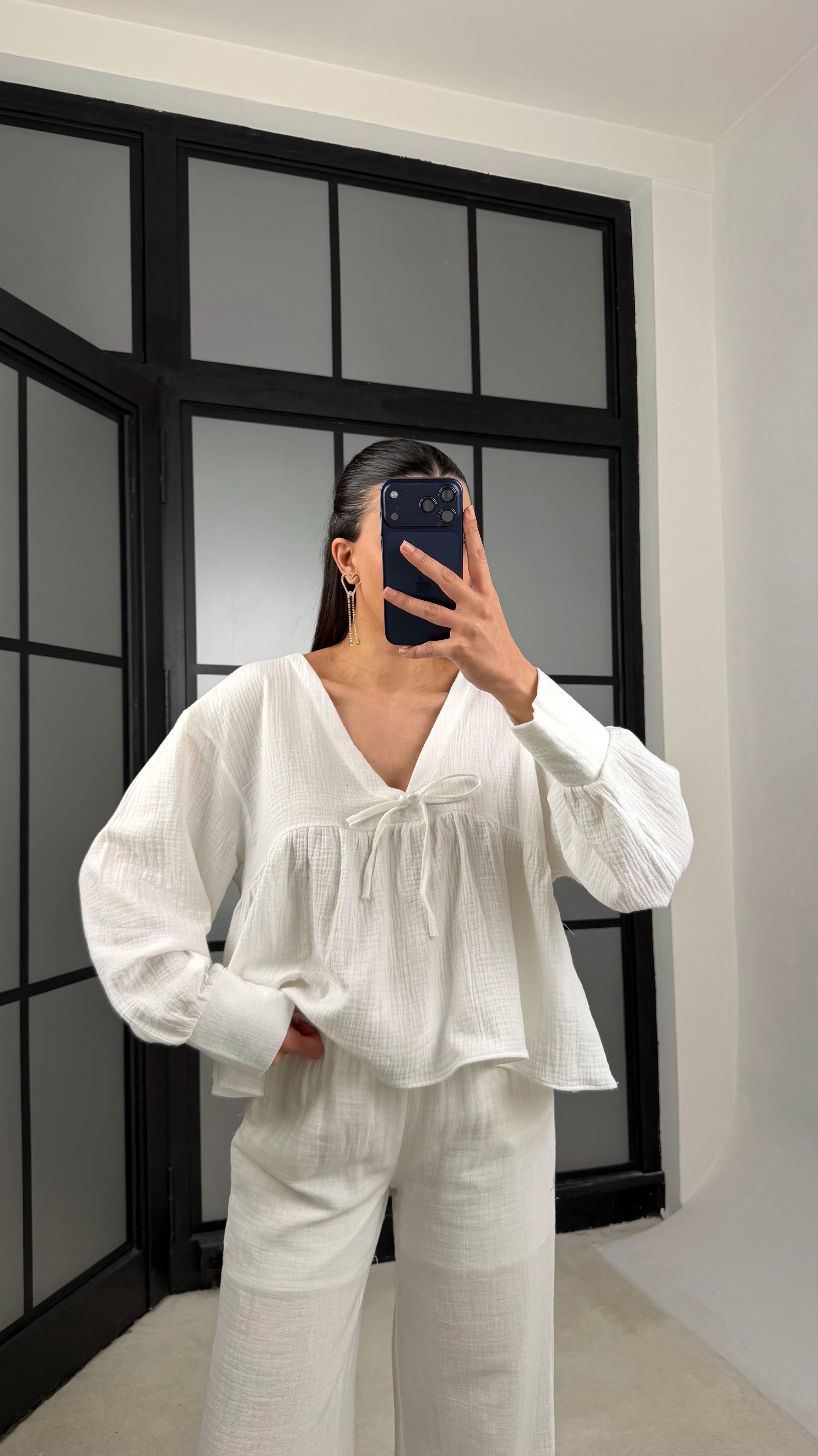 Beyaz Müslin Bluz GAUS-01368GAUSالبلوزات GAUS-01368