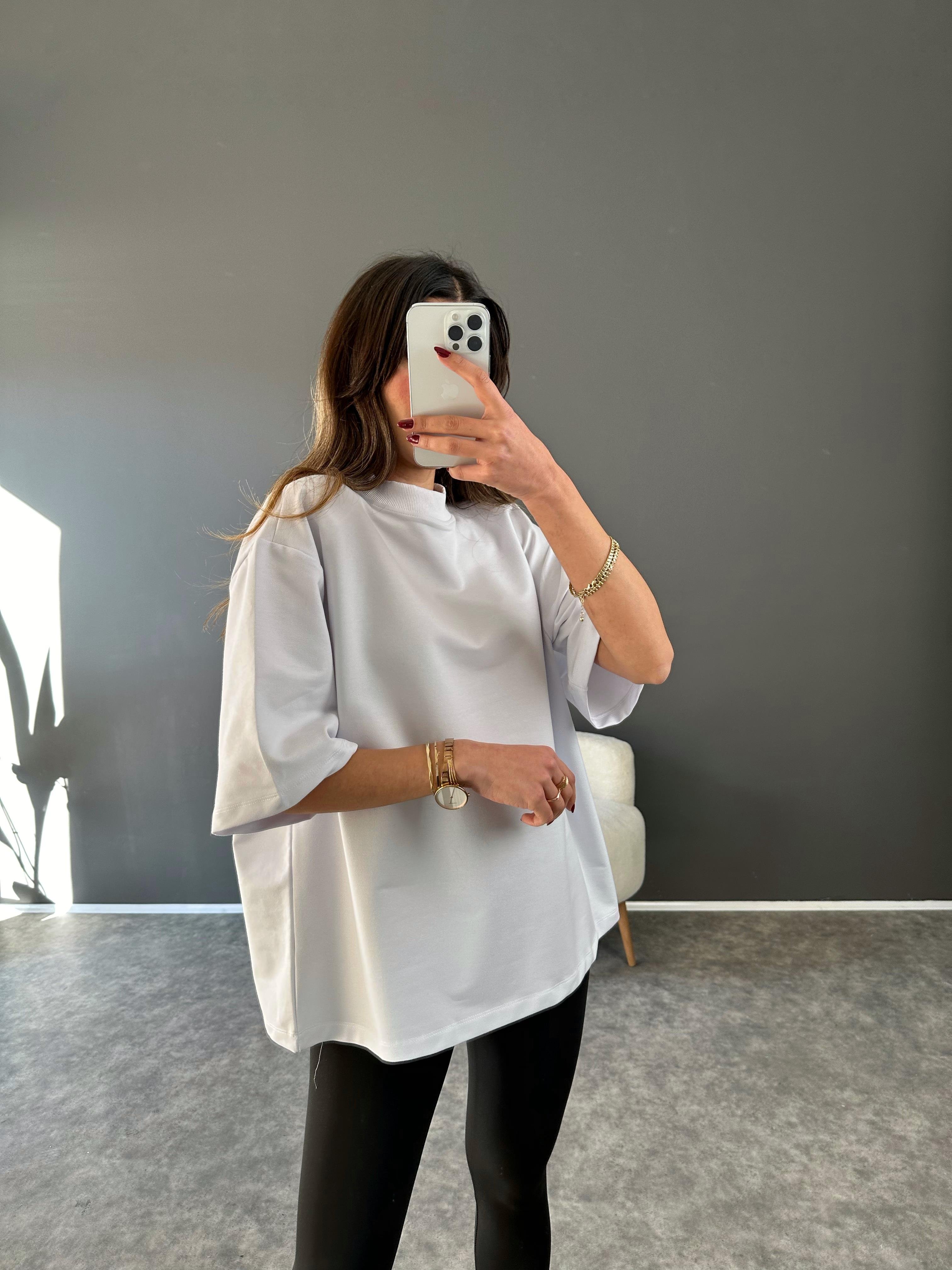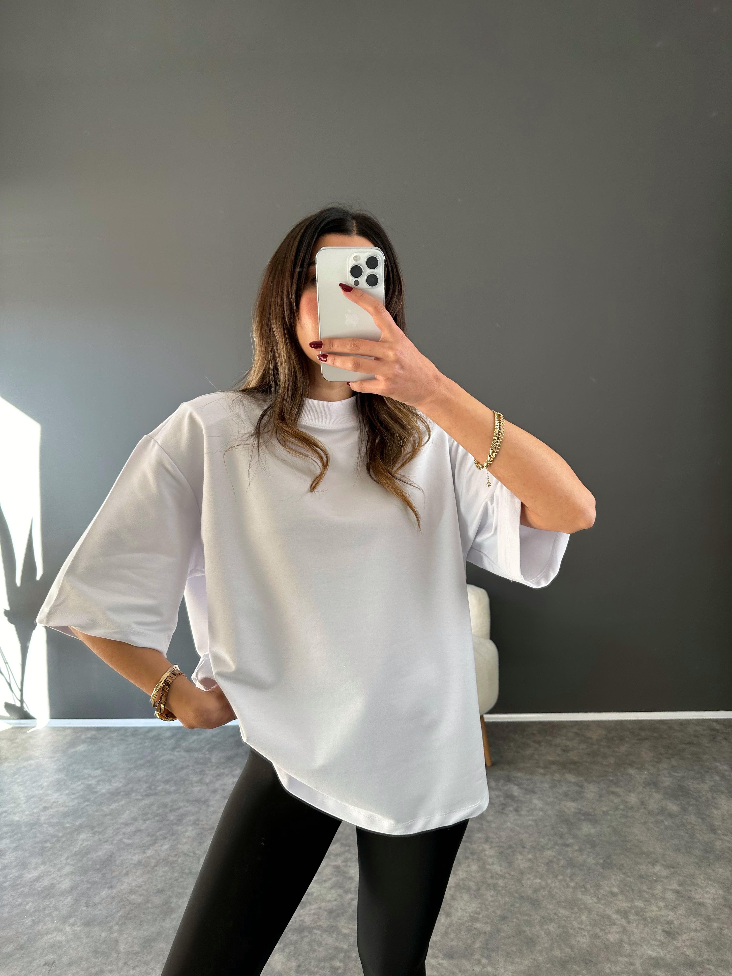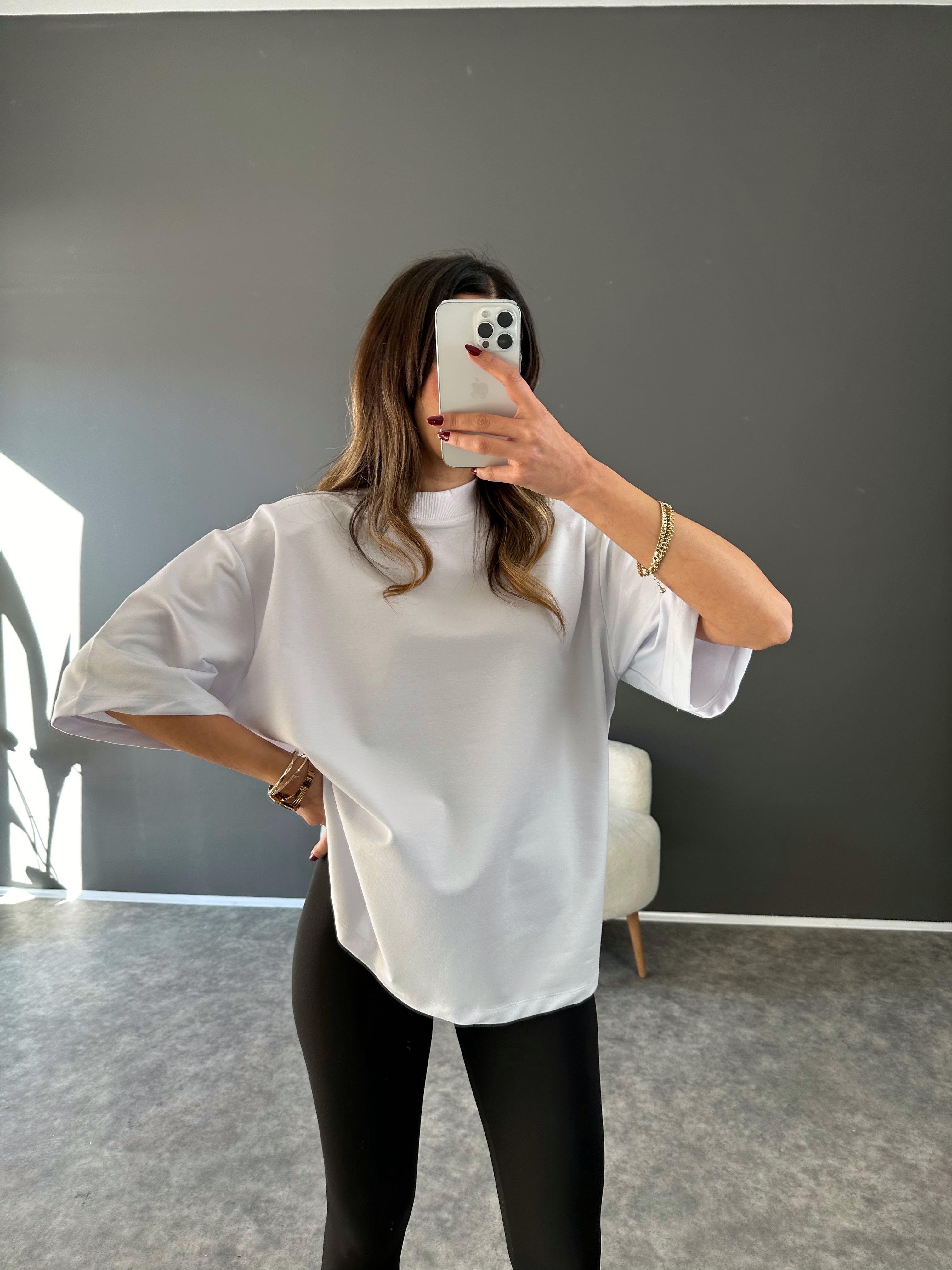 Beyaz Vatkalı Oversize Tshirt