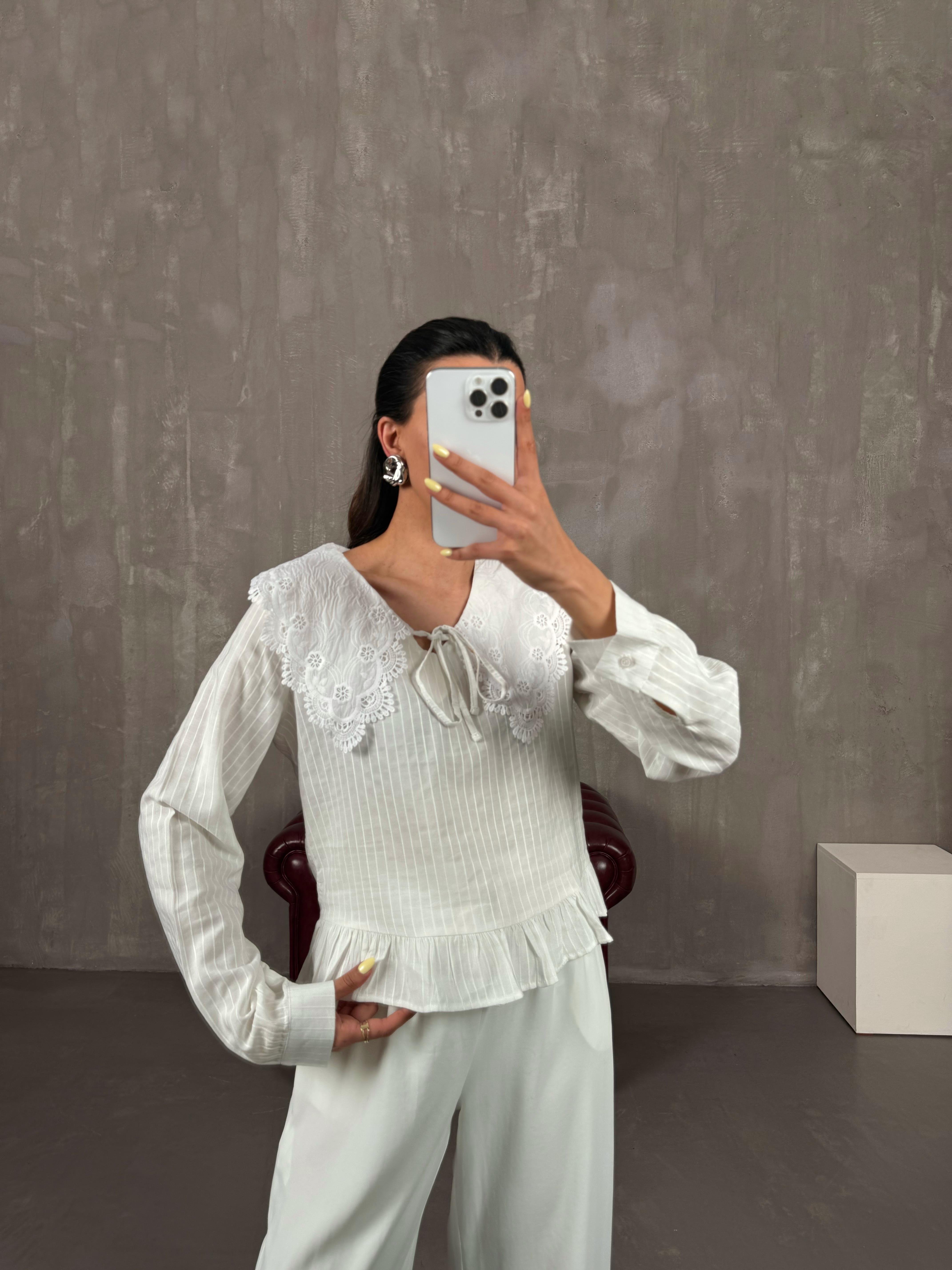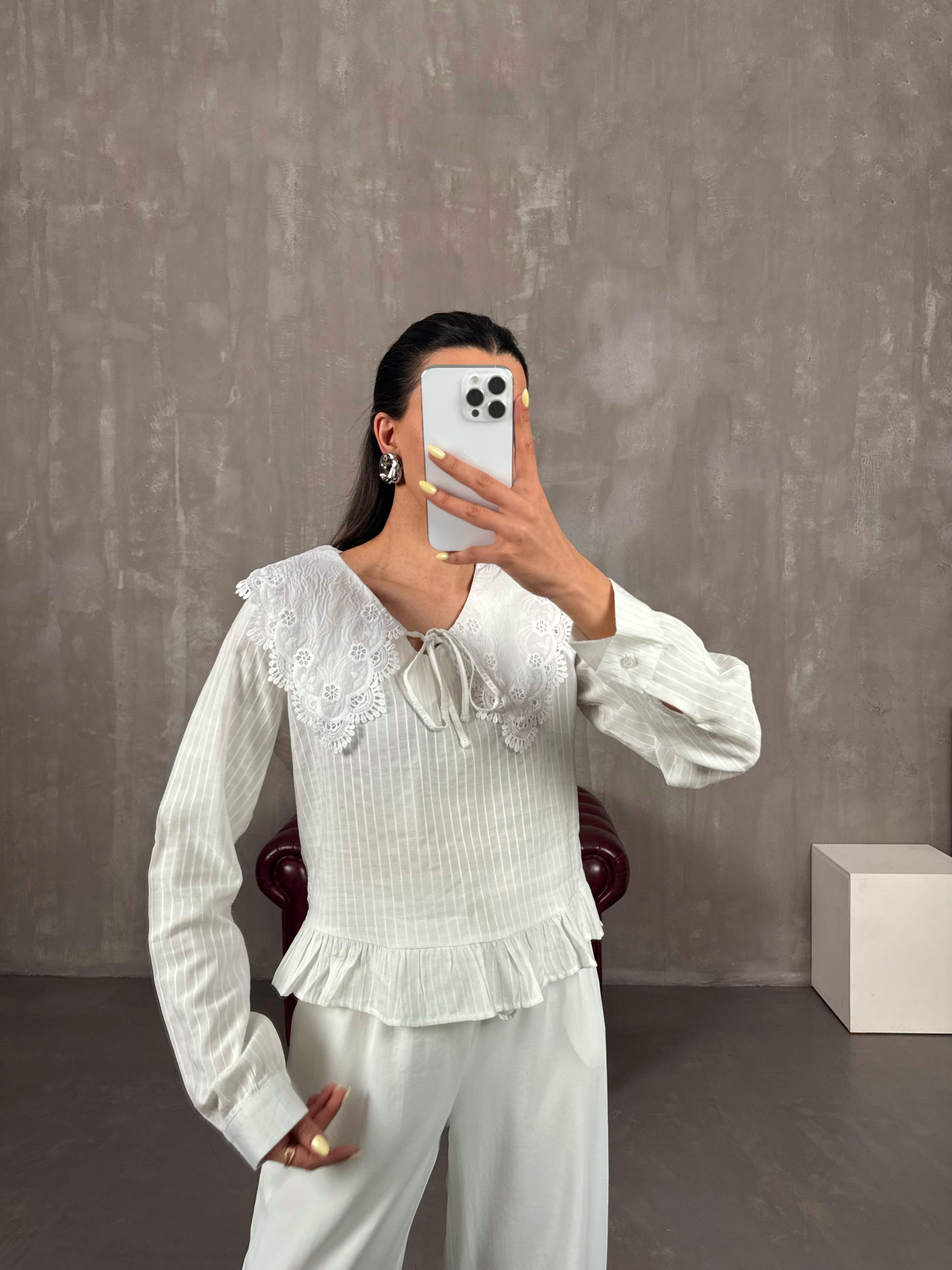 قميص بينتيريست أبيض ‎بياقة مزينة بتطريز فيستو Gaus00108