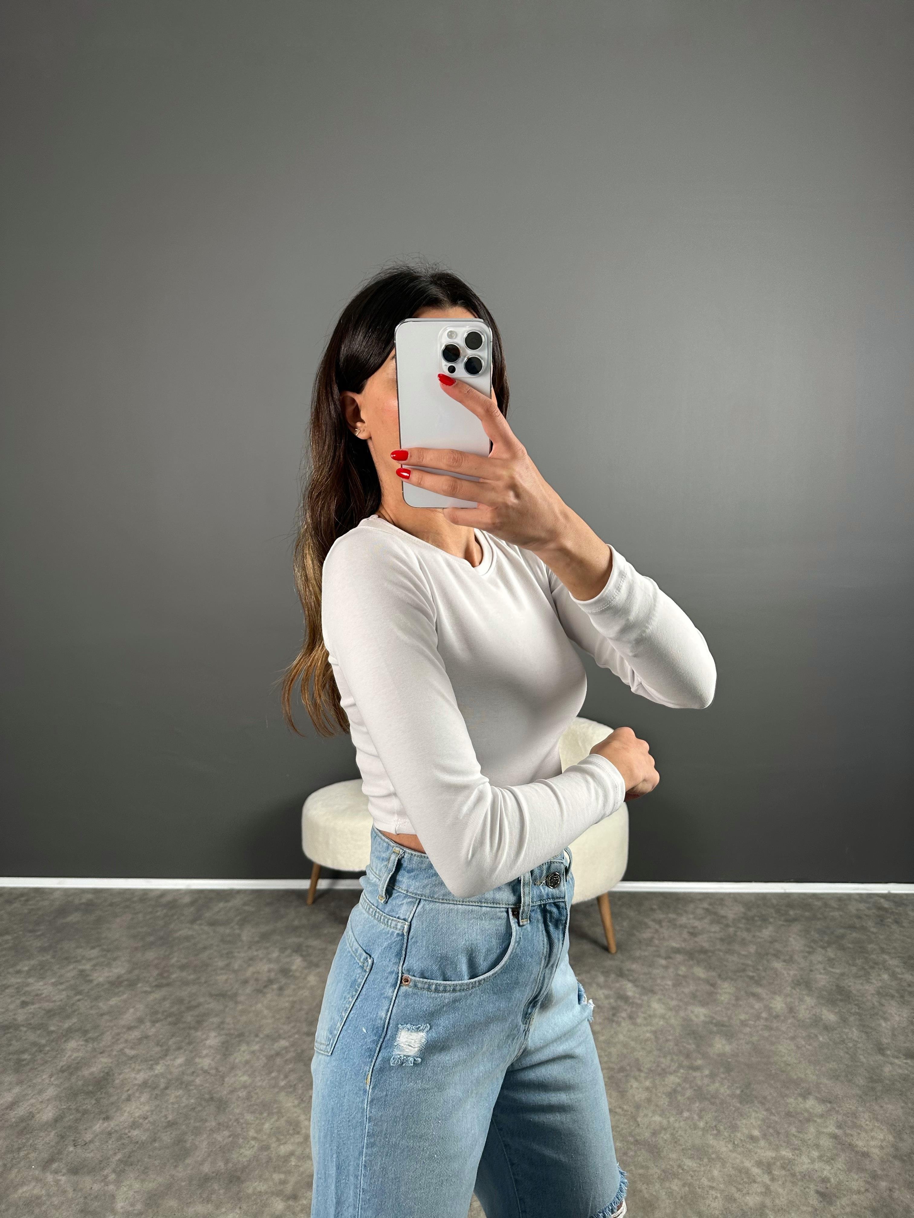 Beyaz ZR Model Basic Uzun Kollu Crop
