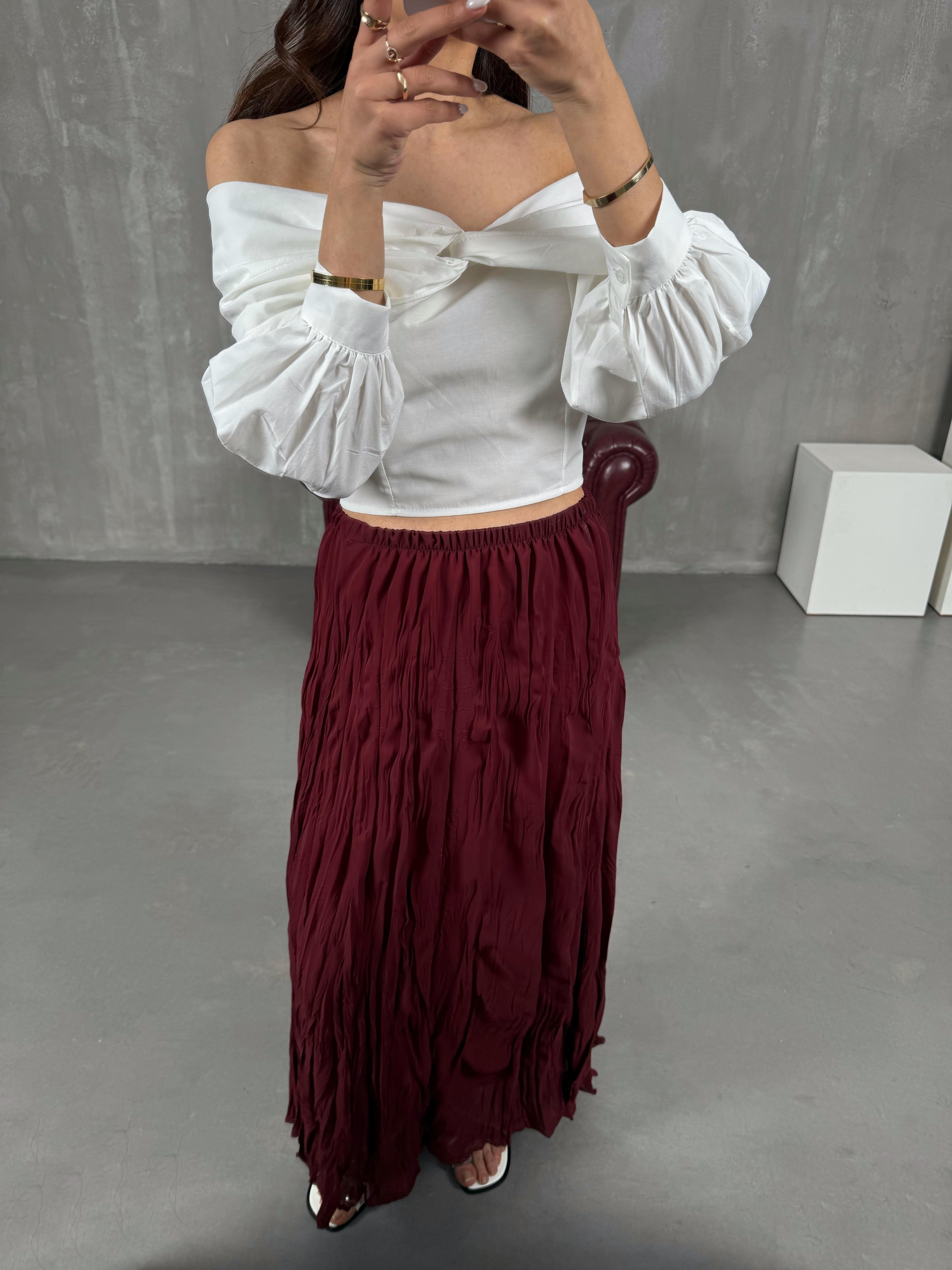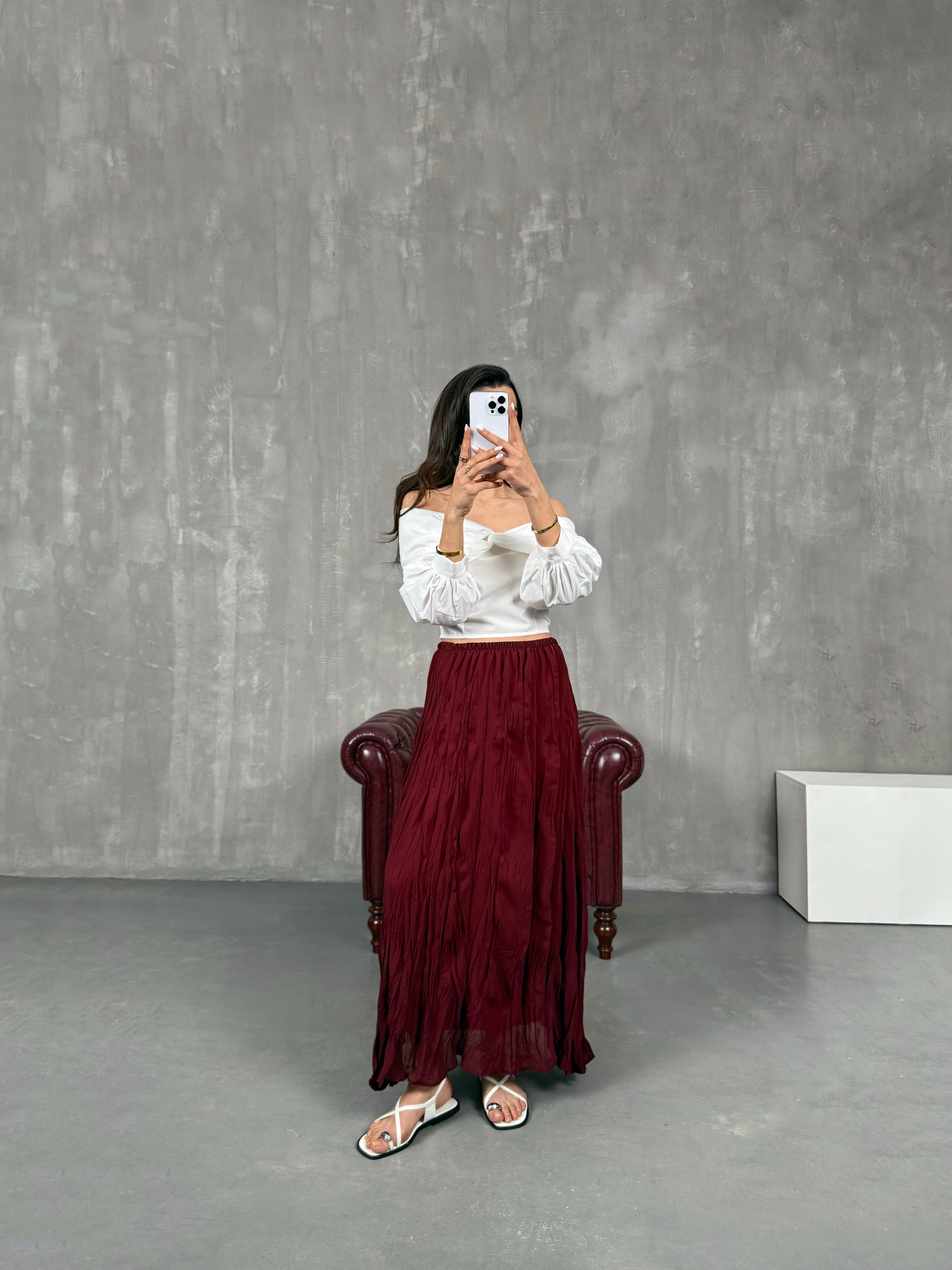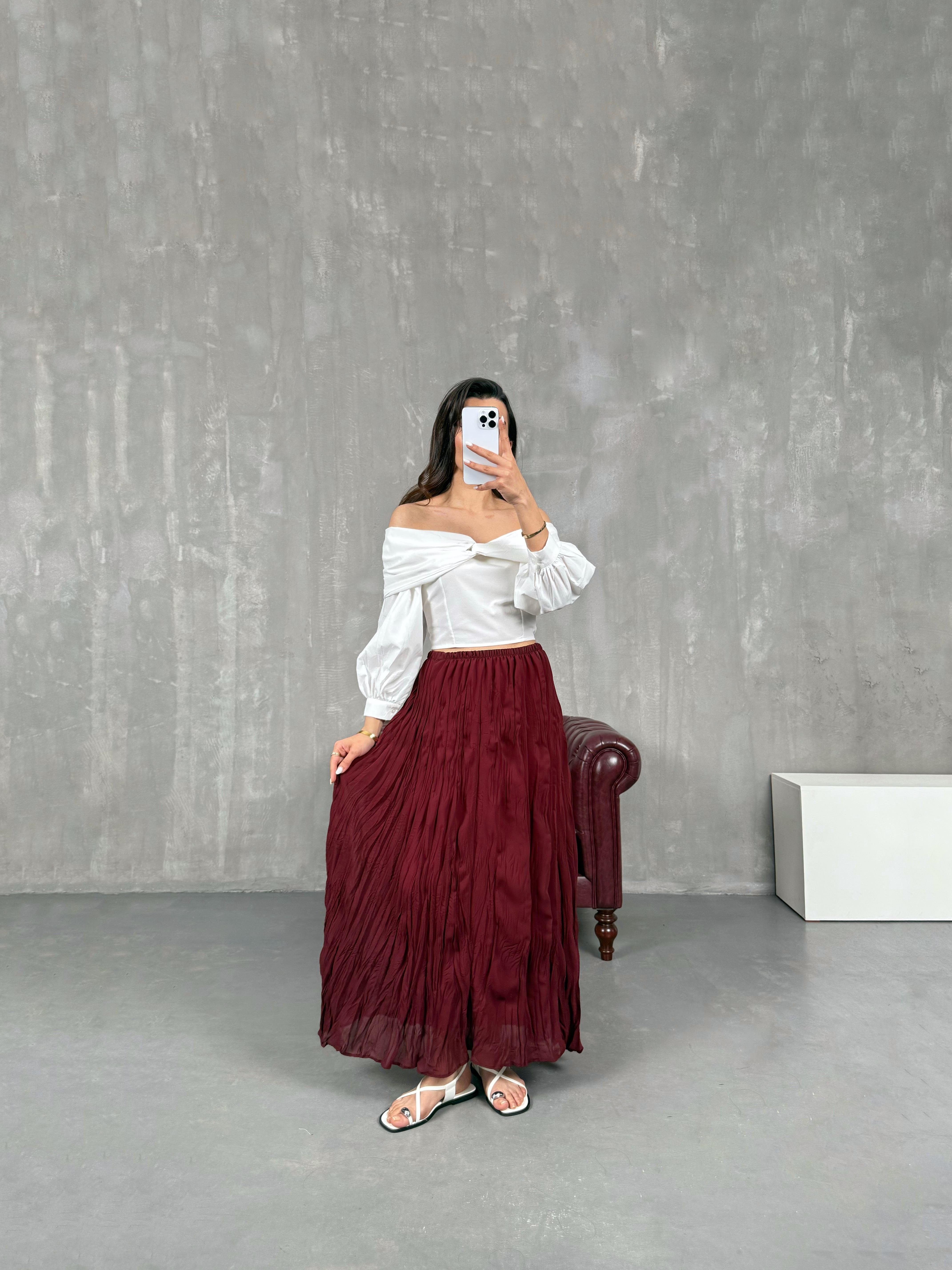 تنورة لون بوردو مبطنّة وبتفاصيل تول مجعّد Gaus00052