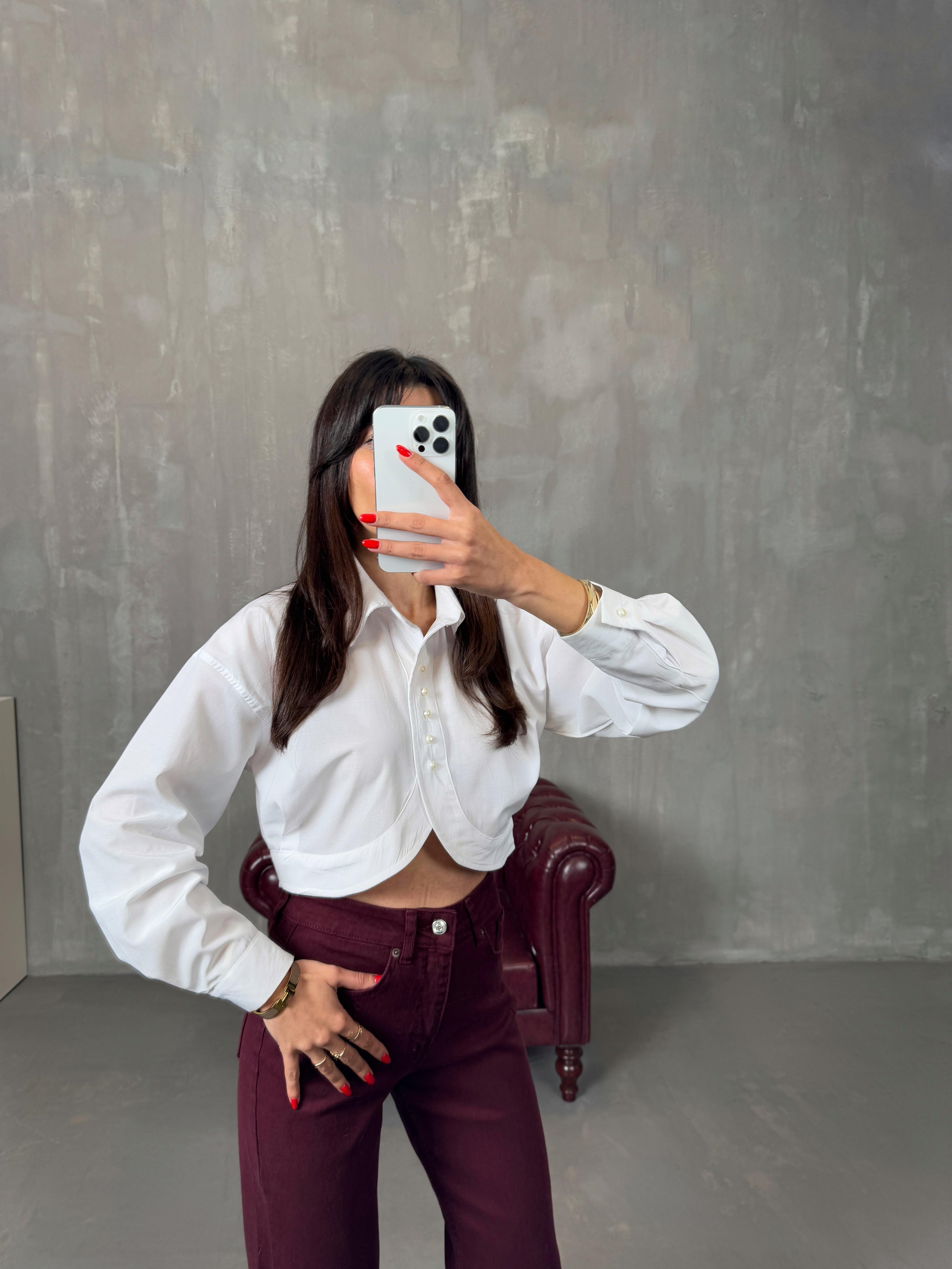 Boyd Beyaz Düğmeli Tasarım Crop Gömlek
