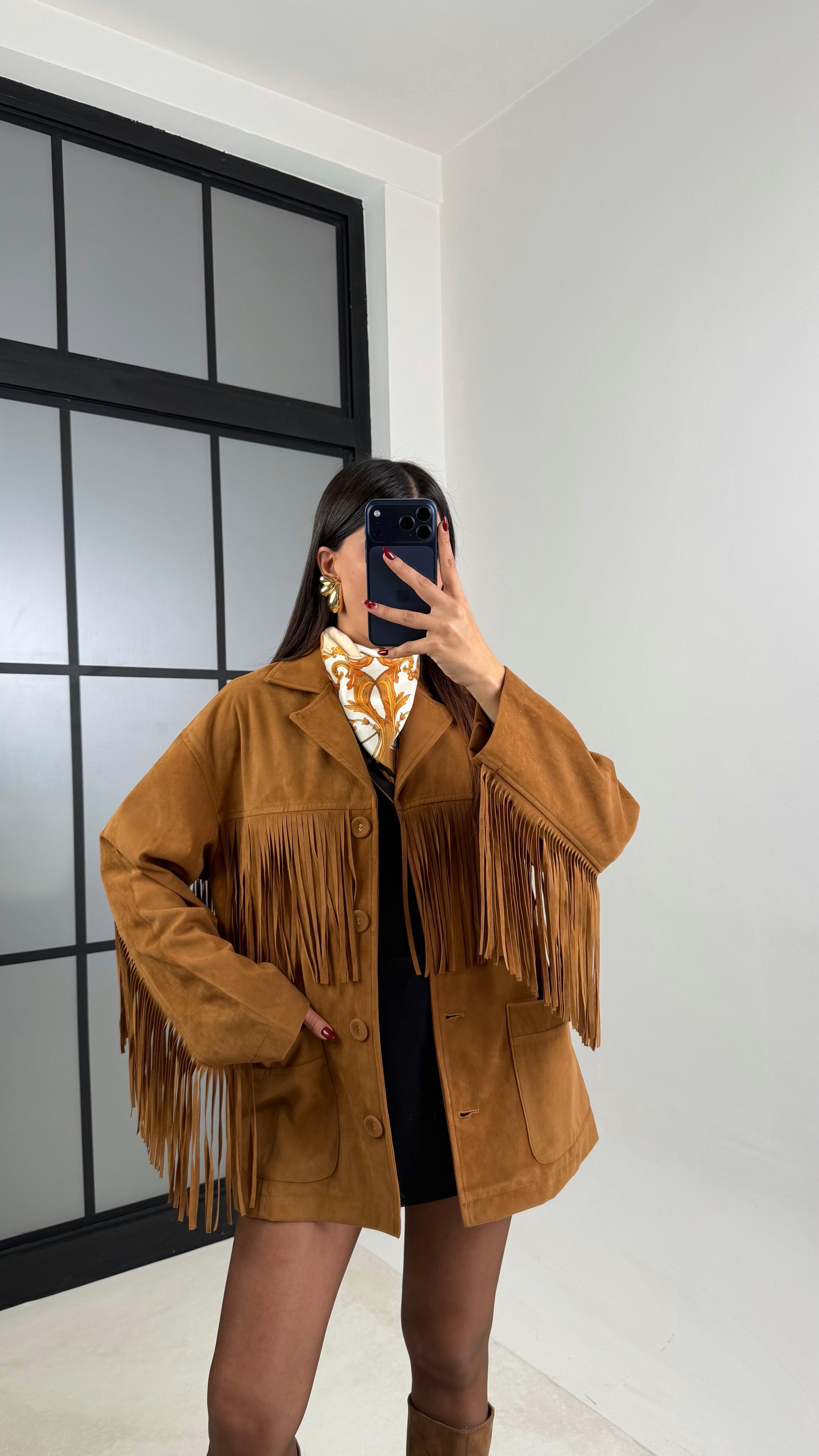 Acı Kahve Püskül Detaylı Astarlı Süet Ceket GAUS-00682