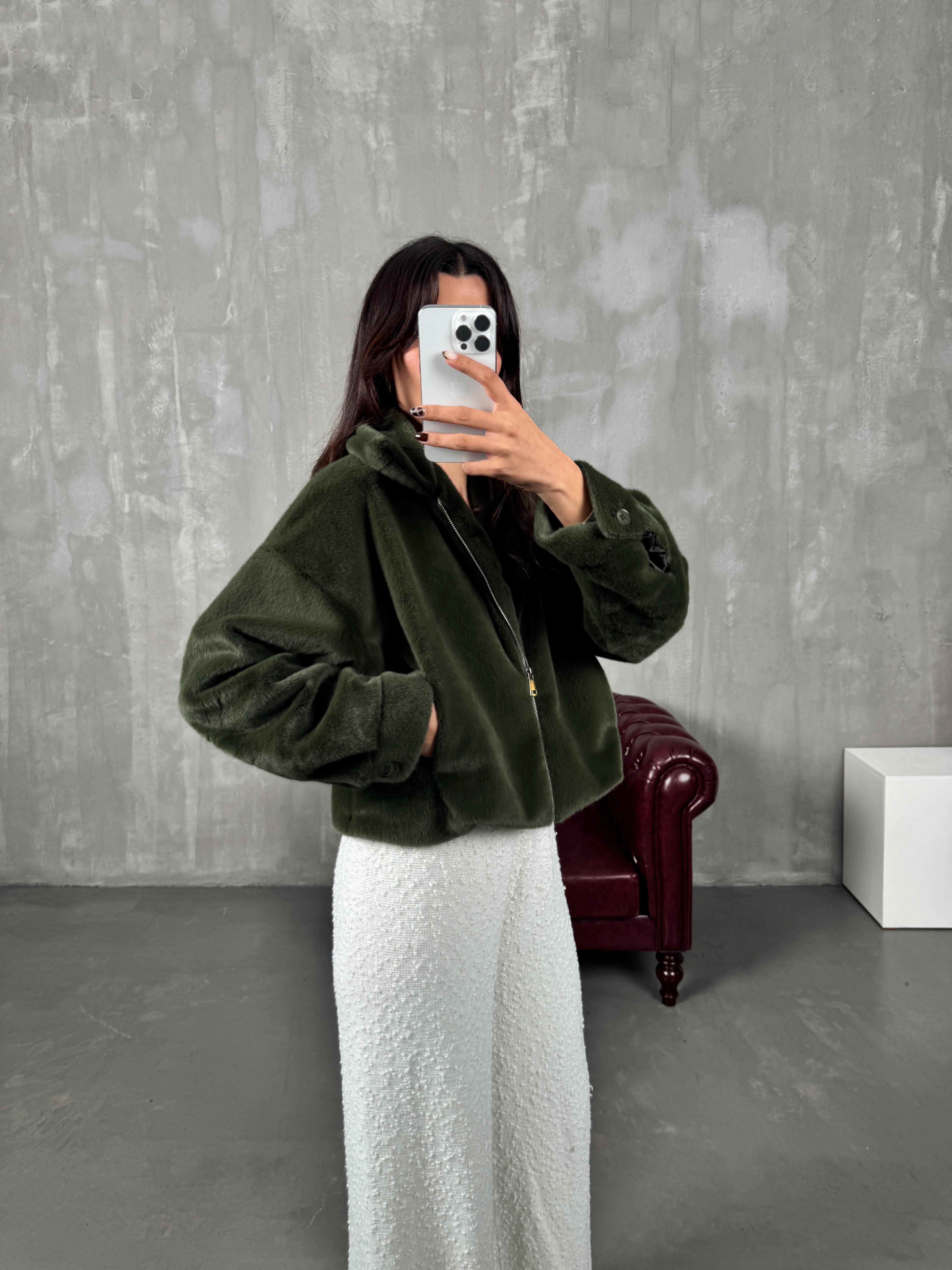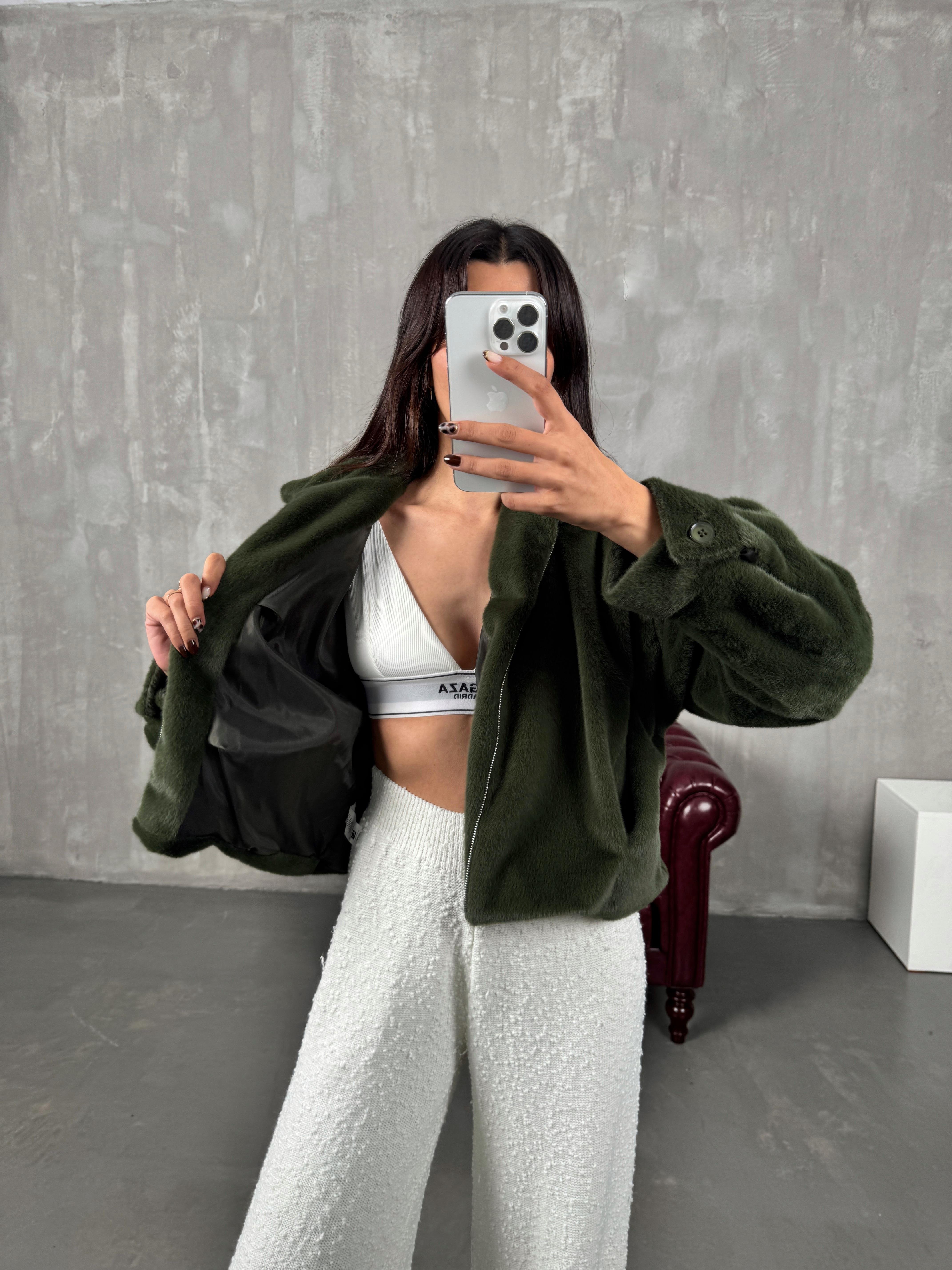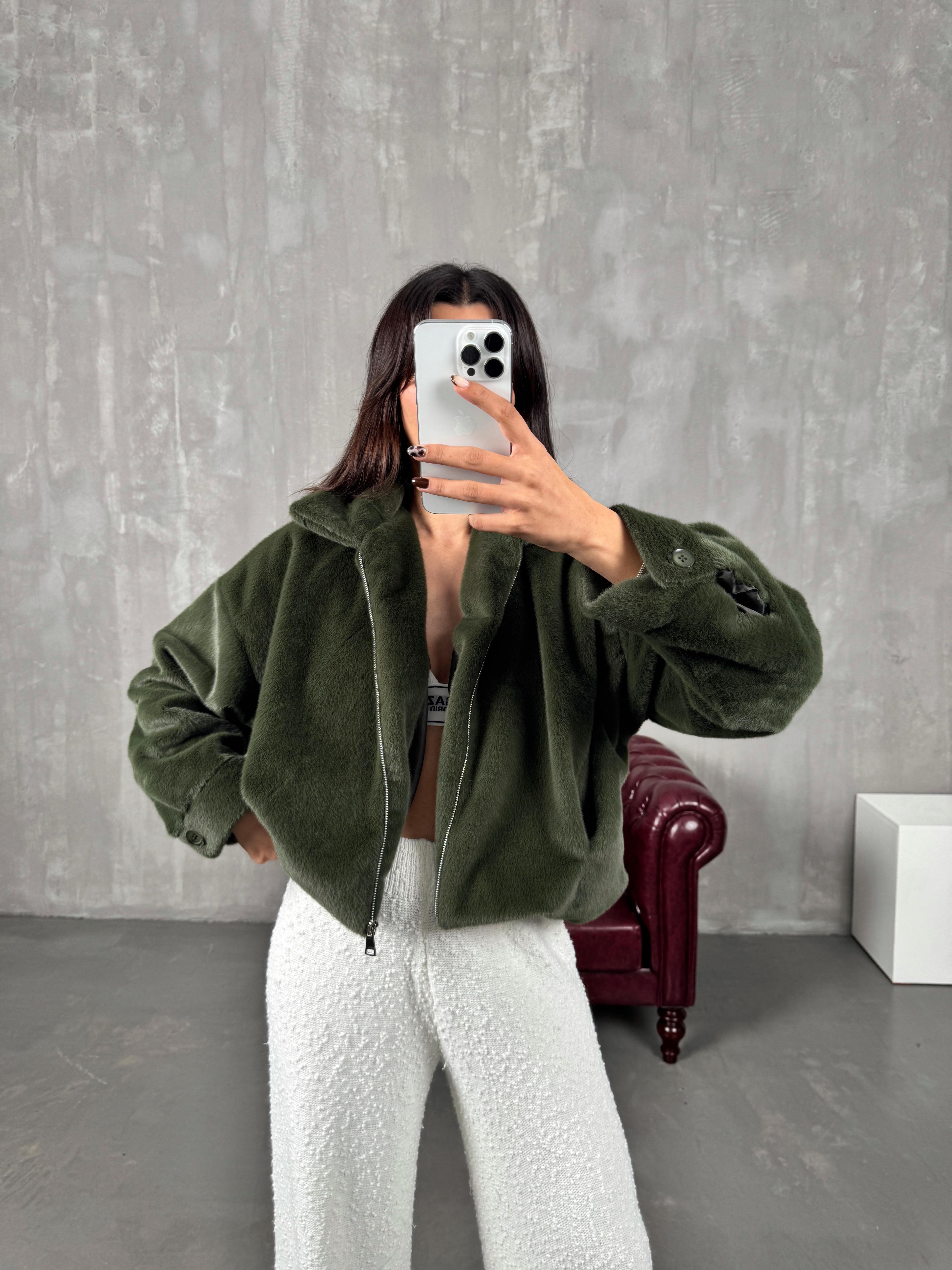 Care Yeşil Cepli Astarlı Peluş Ceket