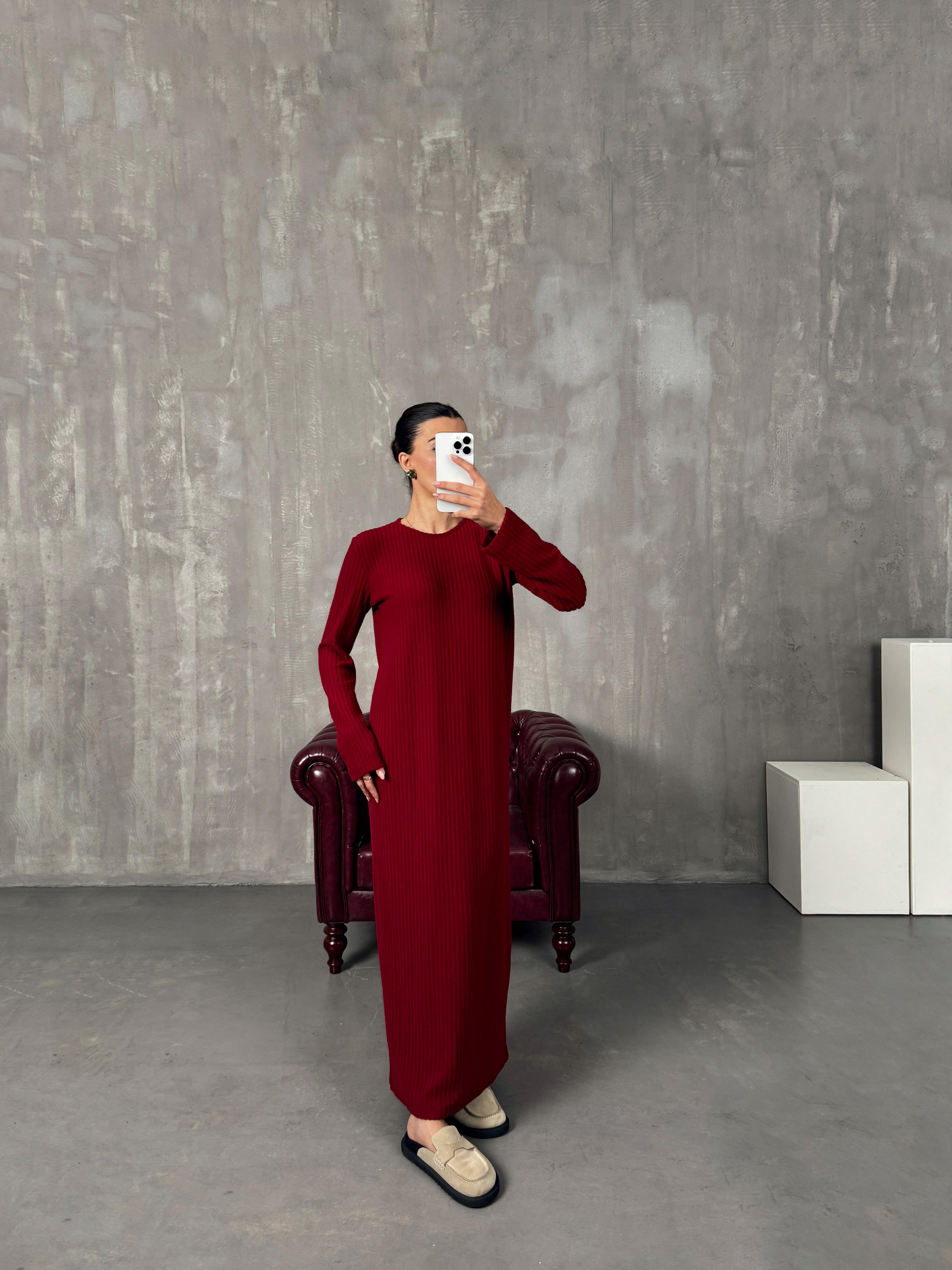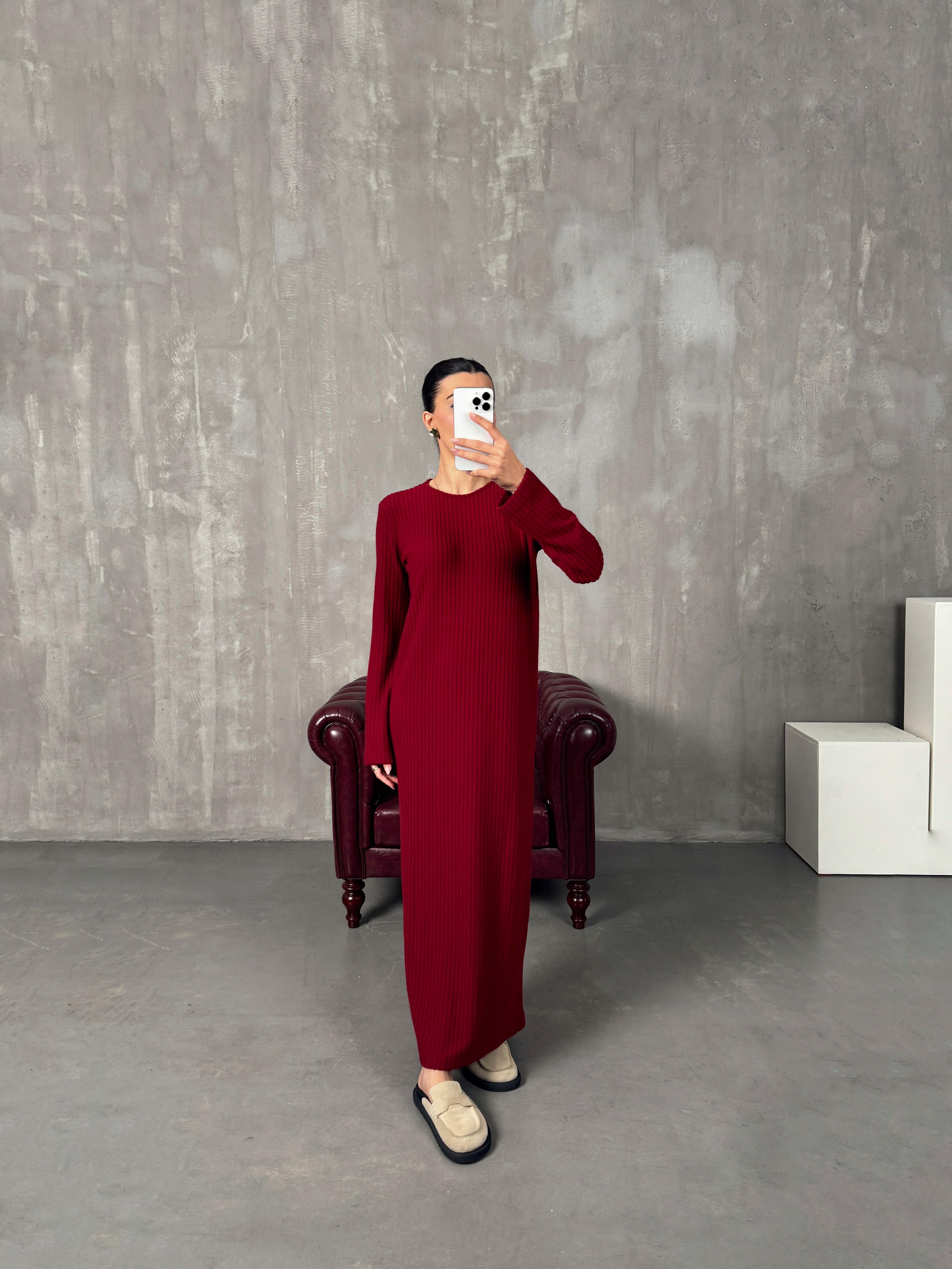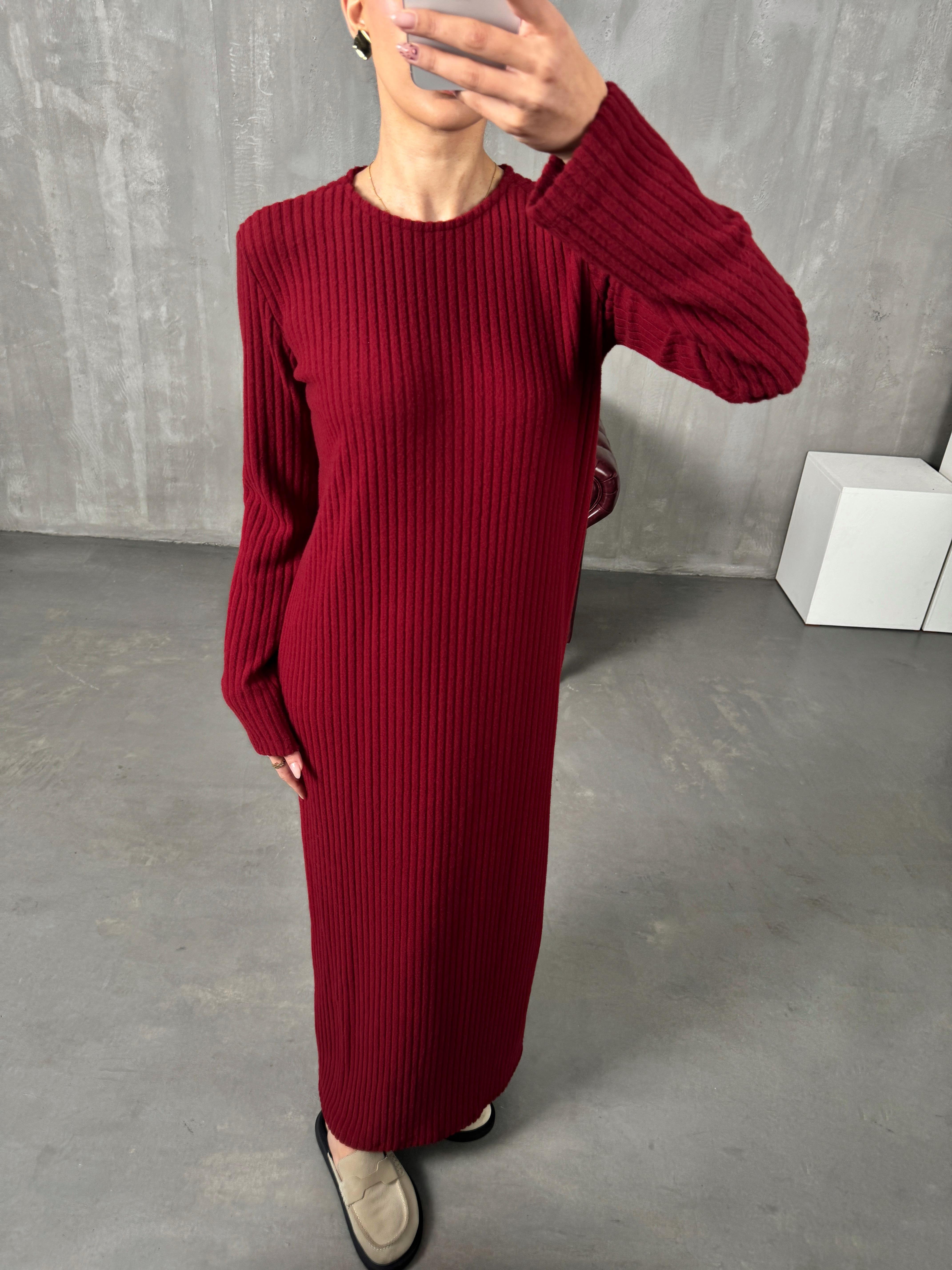 سيسّي فستان تريكو ناعم مضلع لون بوردو
