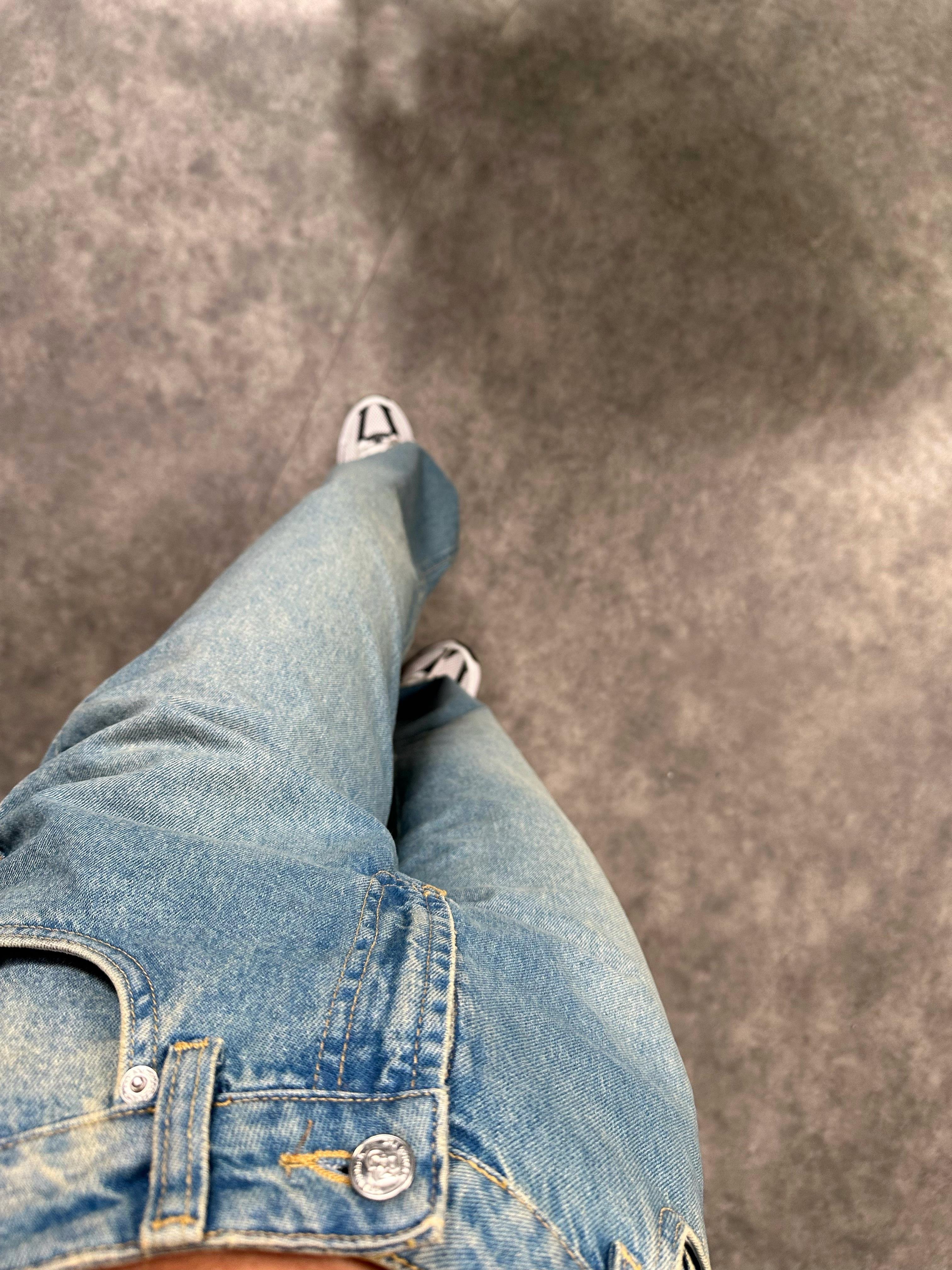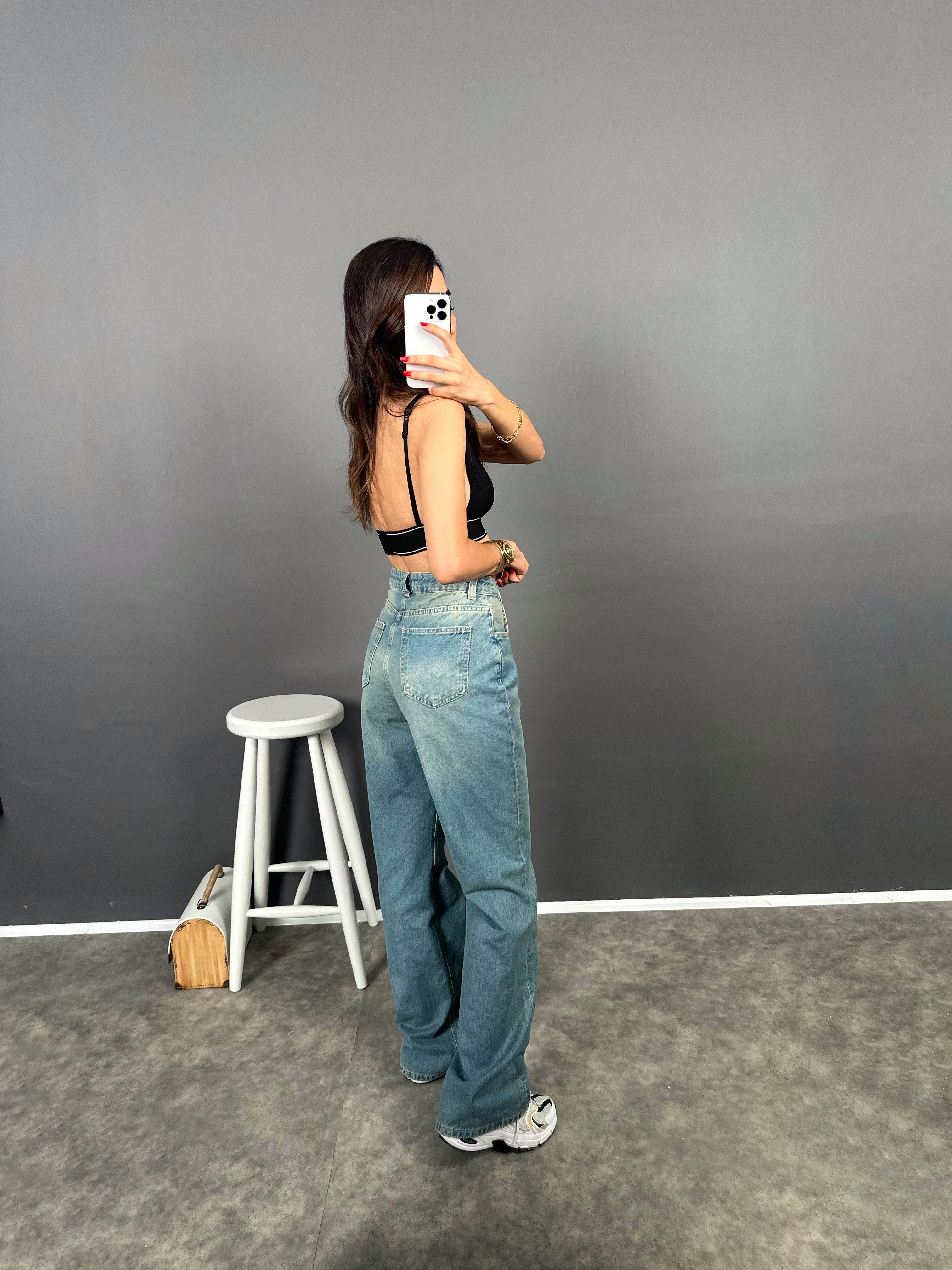 Davy Mavi Eskitme Yıkamalı Wide Leg Jean