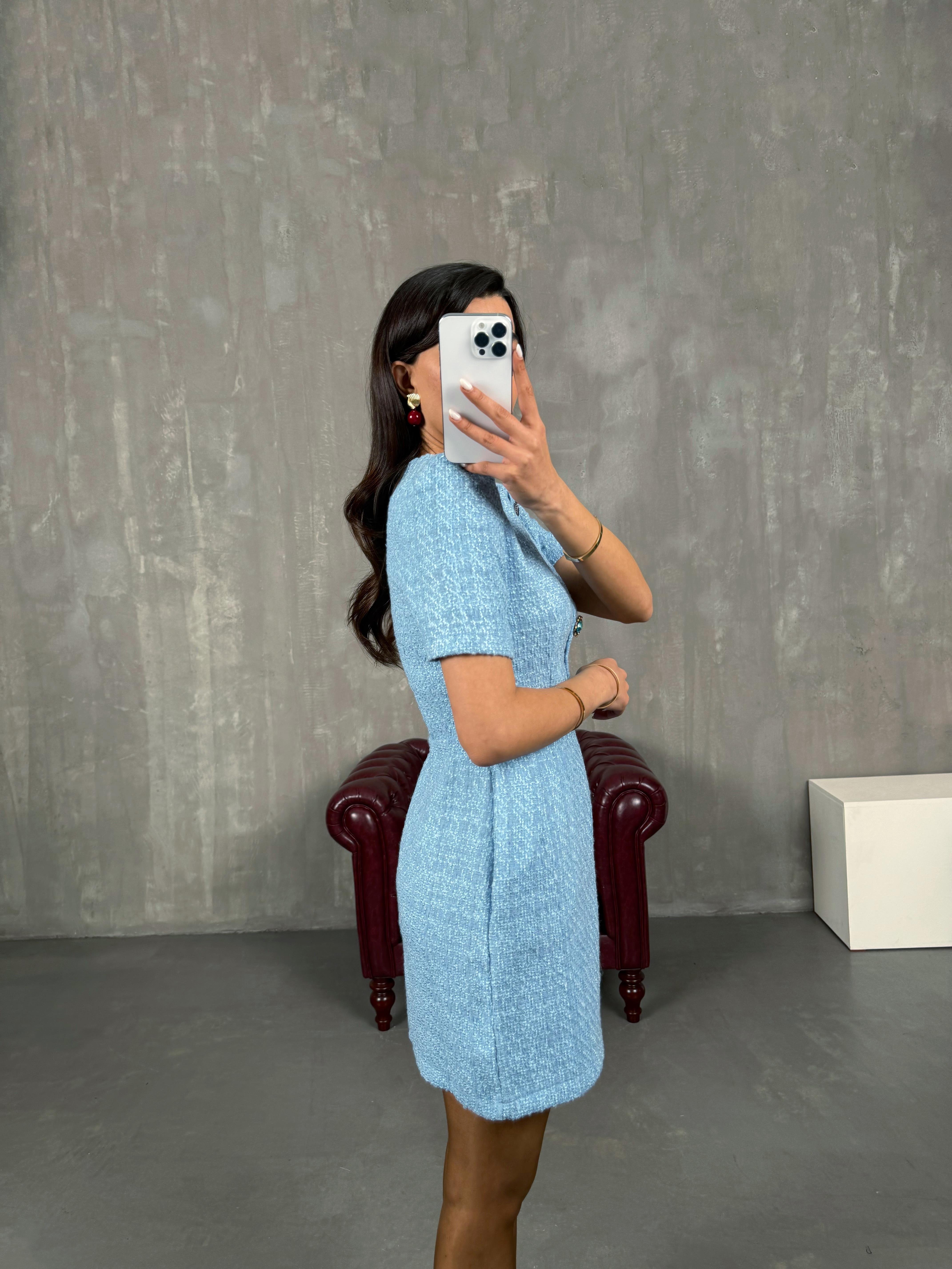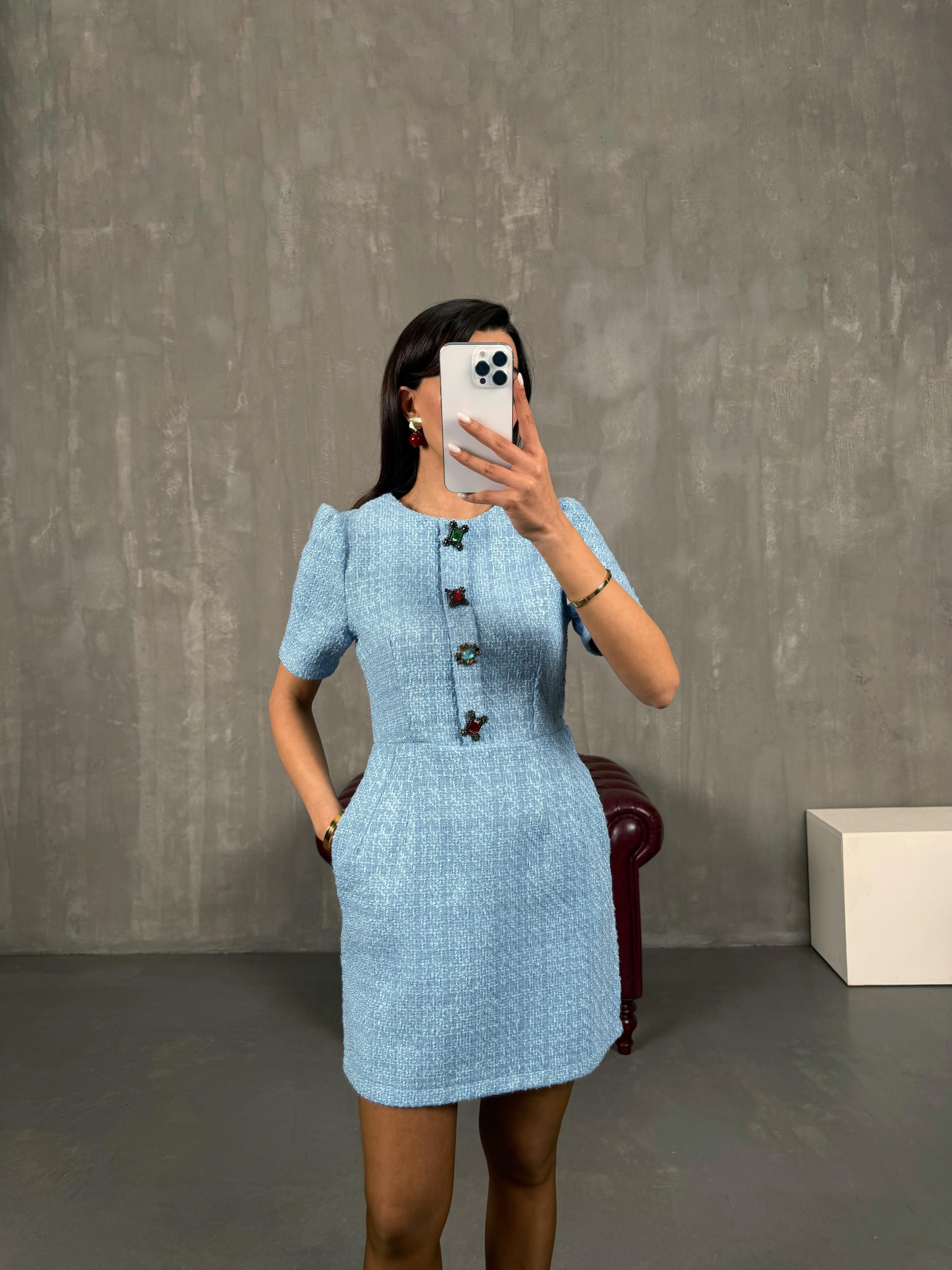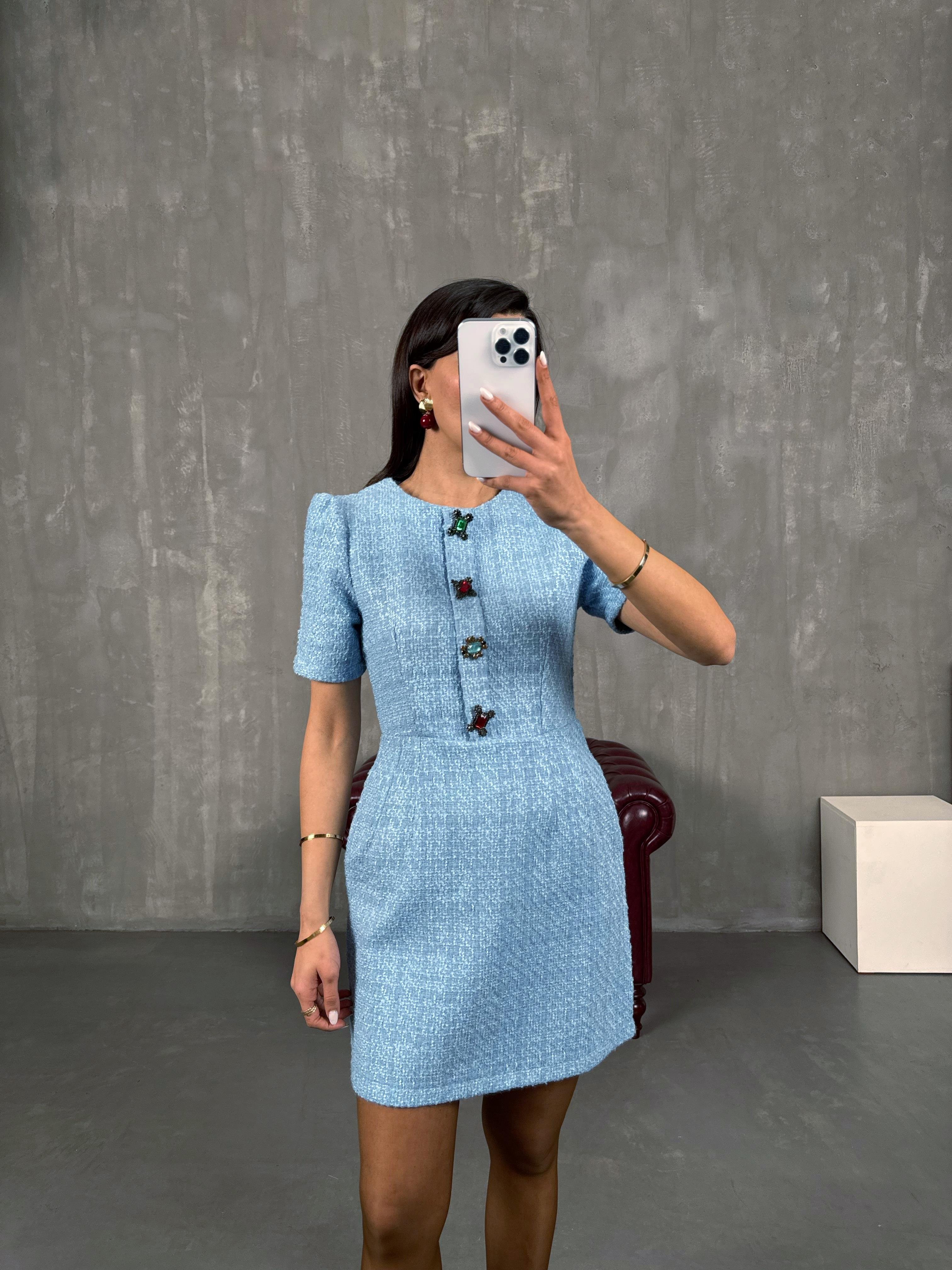 ديرسا فستان تويد مُعادل لون أزرق بأزرار حجرية