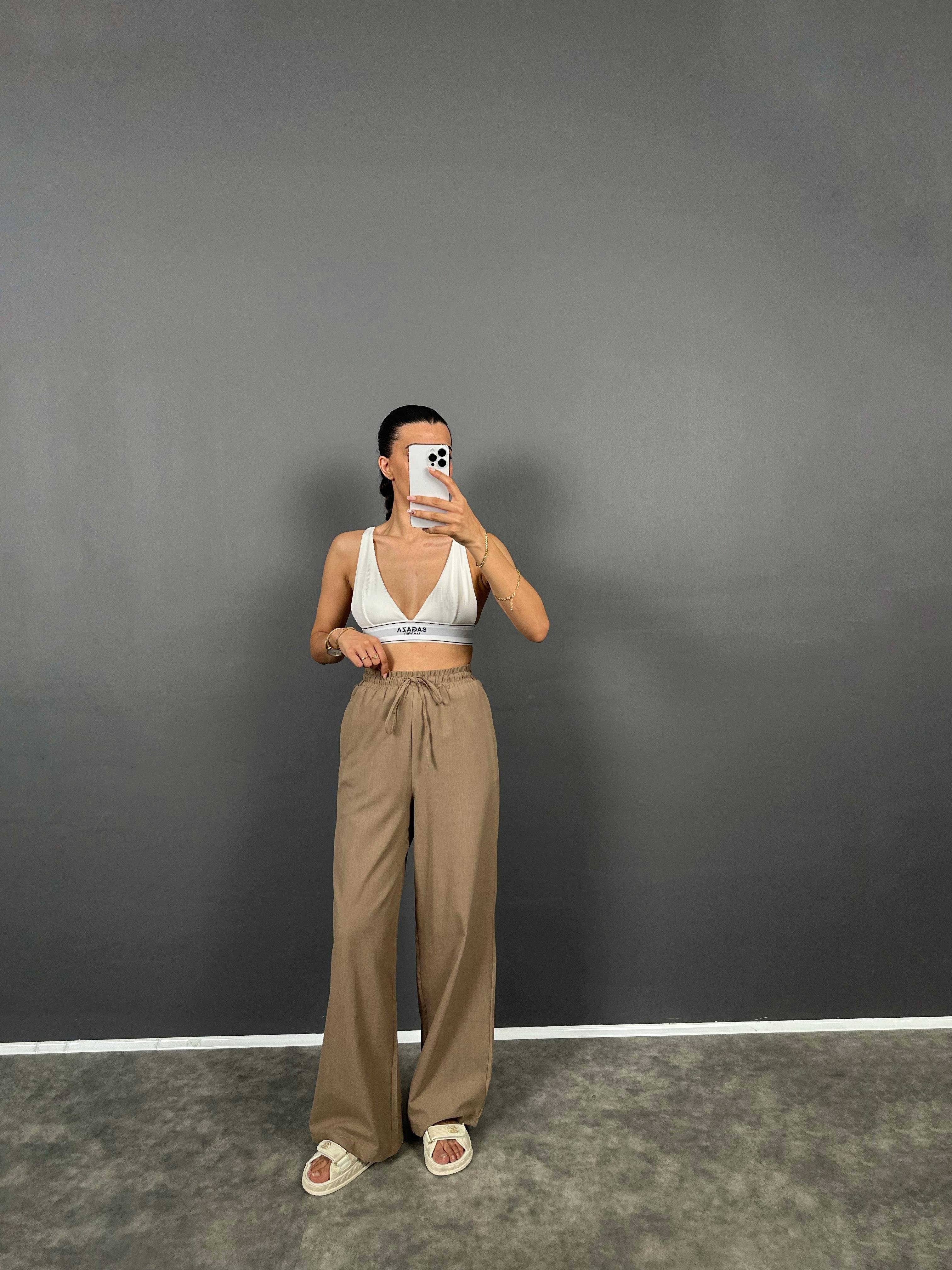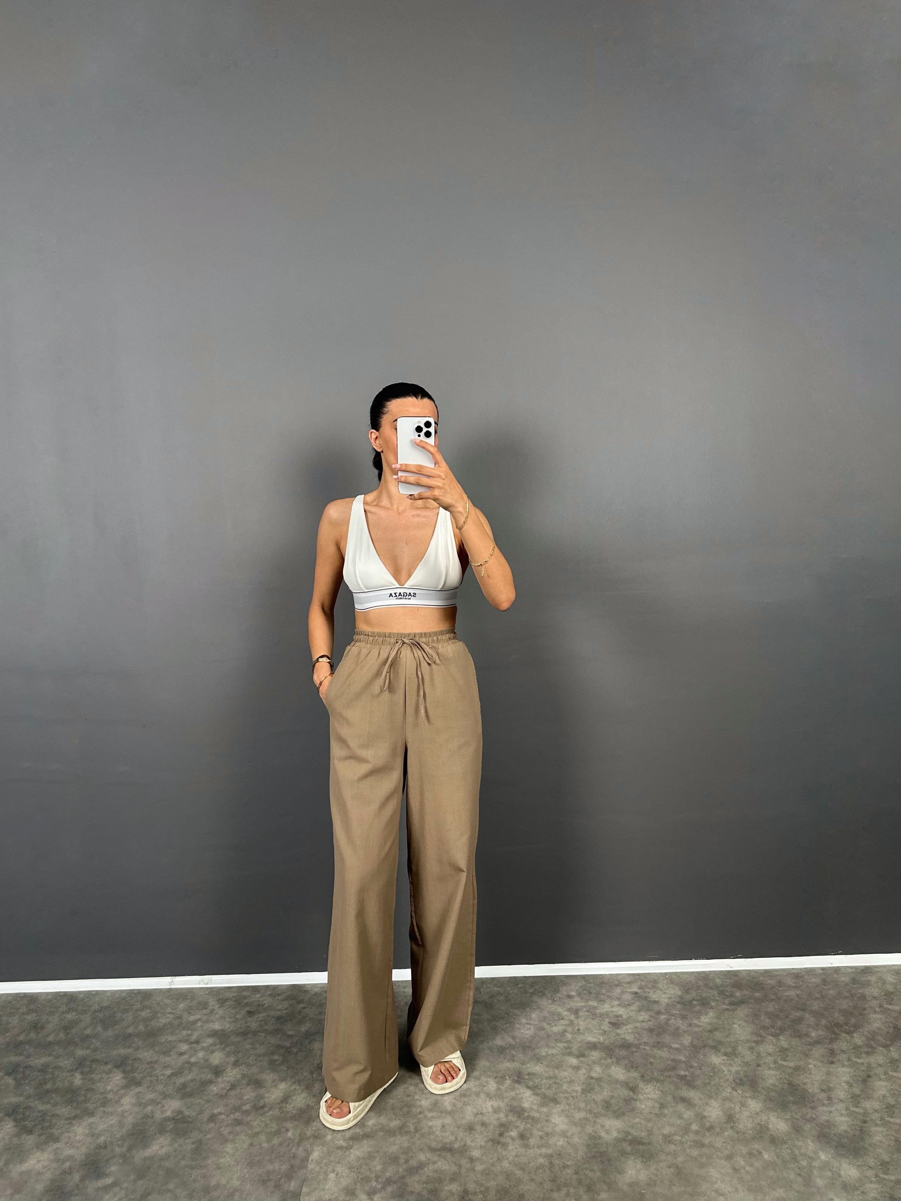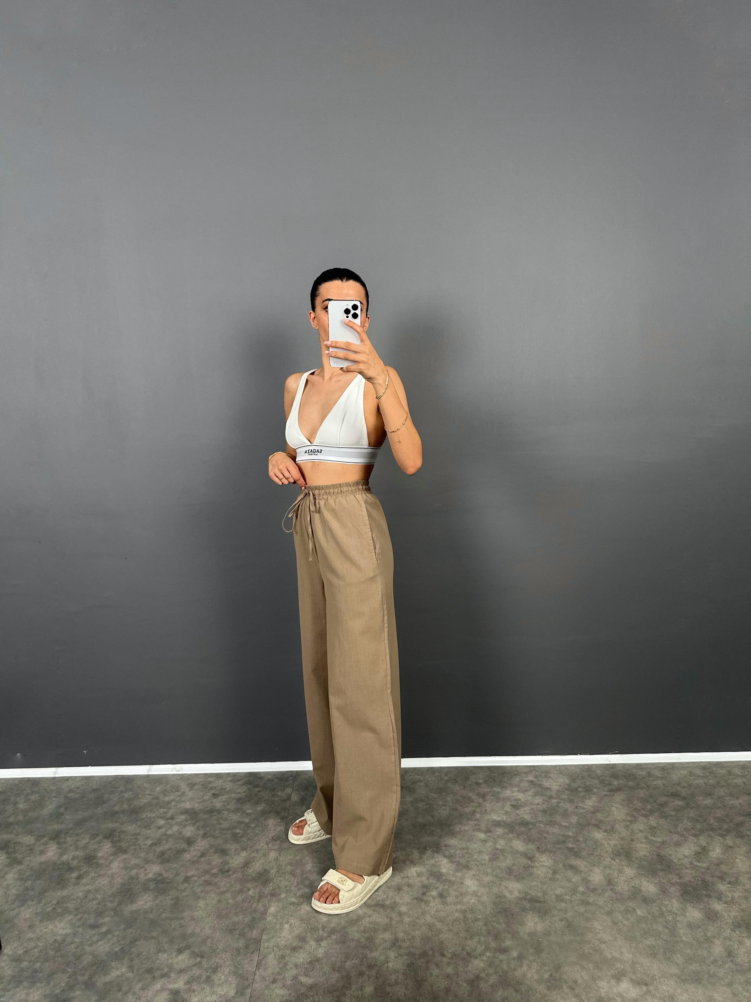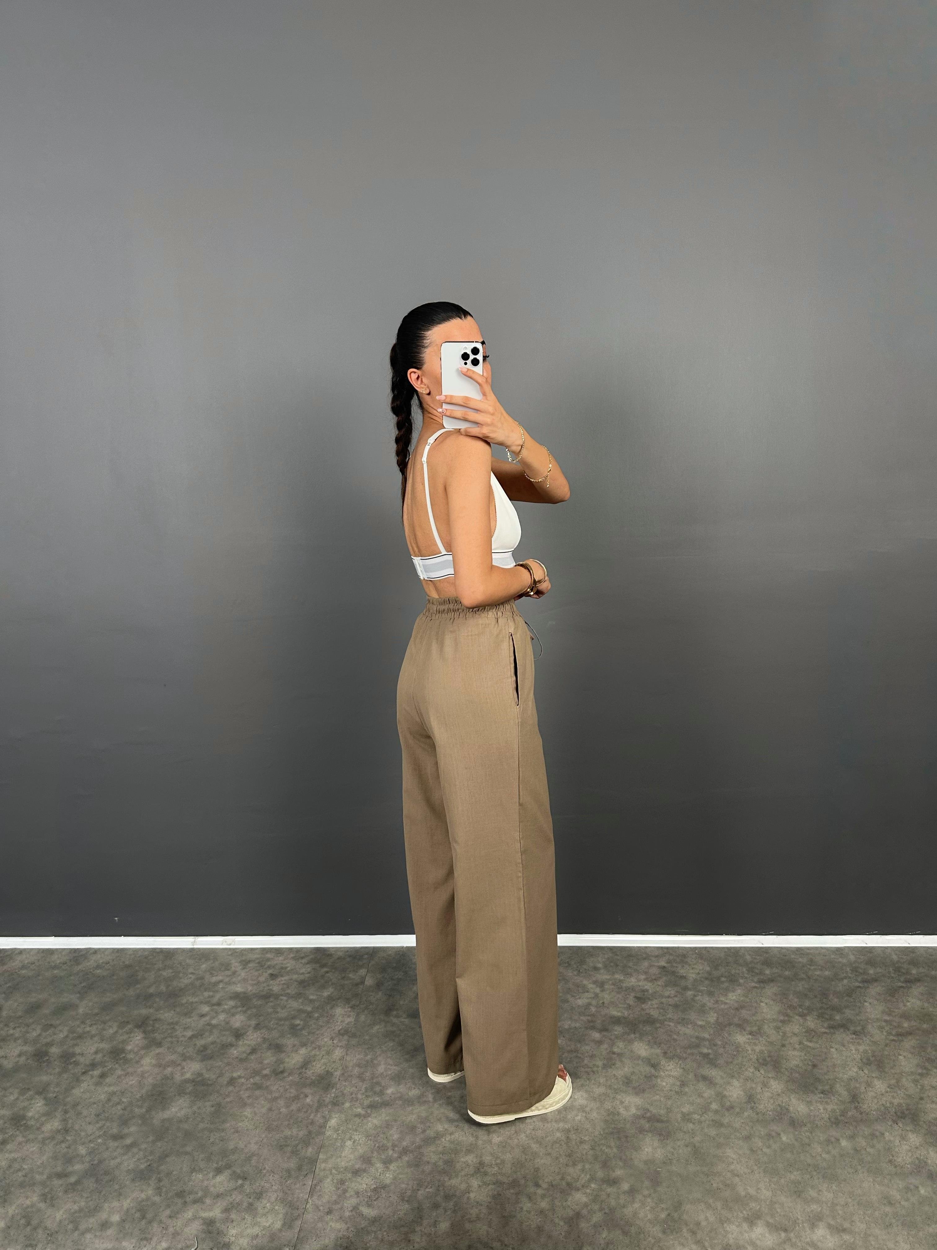 DK Kahverengi Astarlı Keten Pantolon