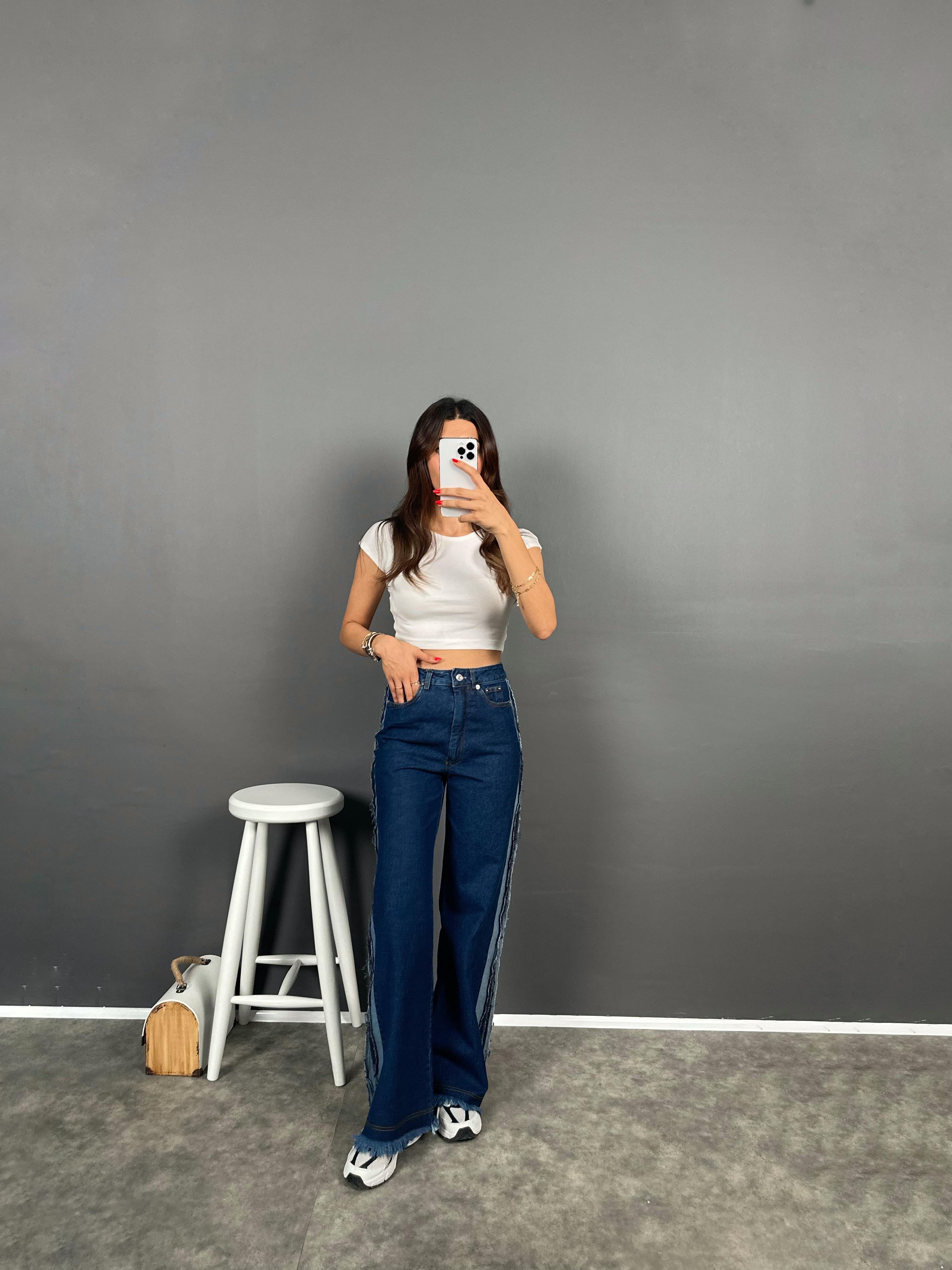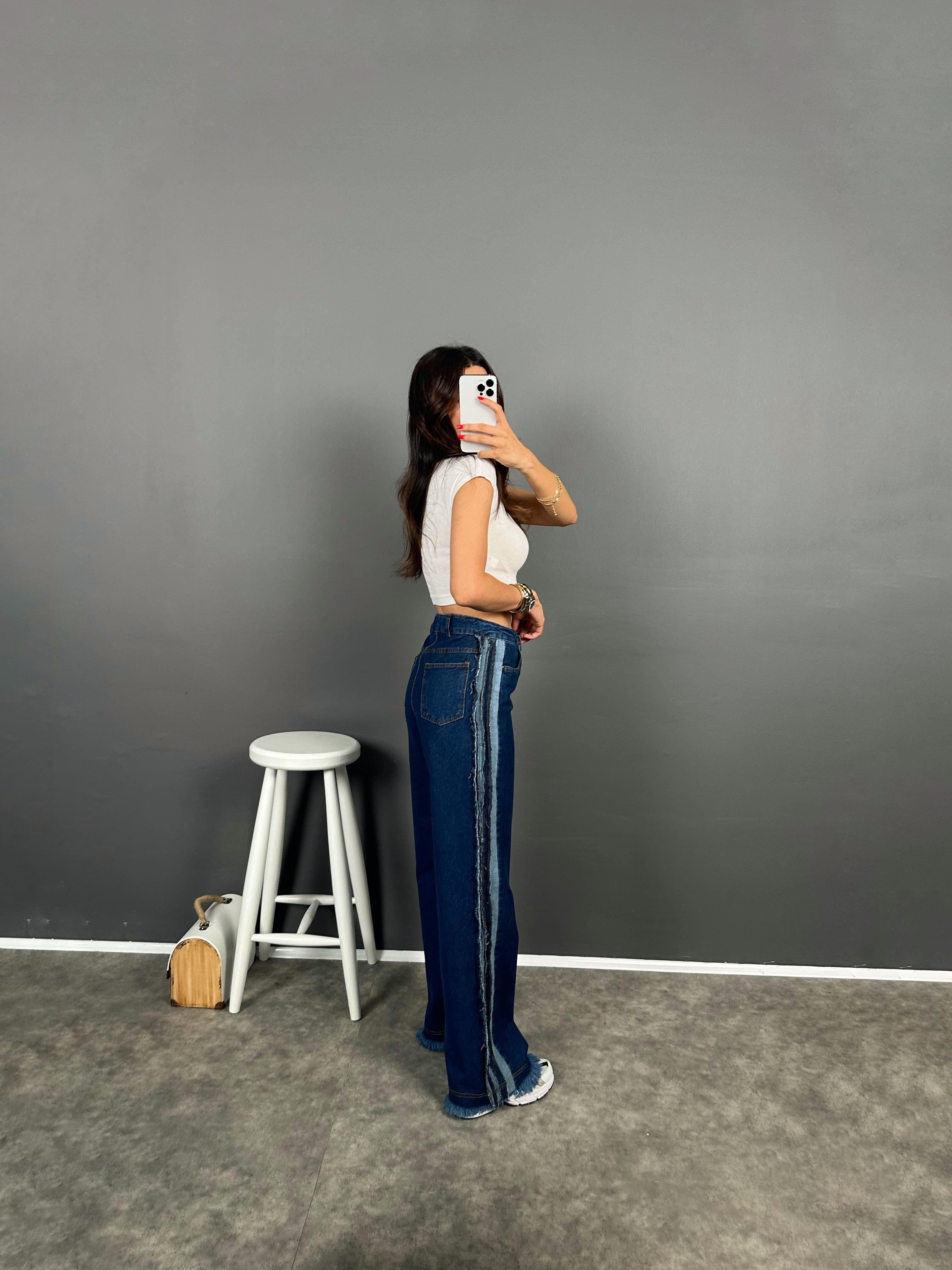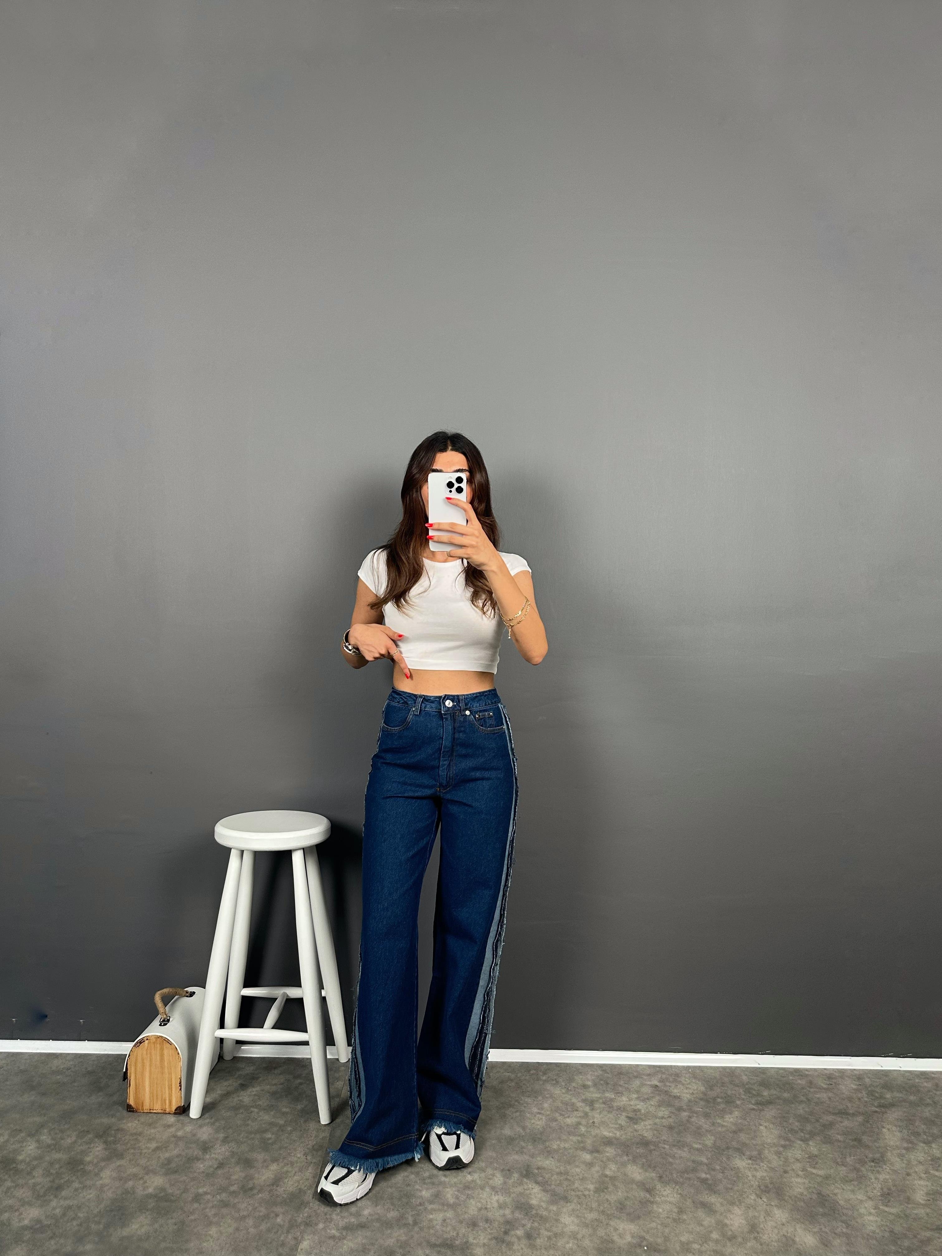 Drew Night Blue Püsküllü Denim Wide Leg Jean