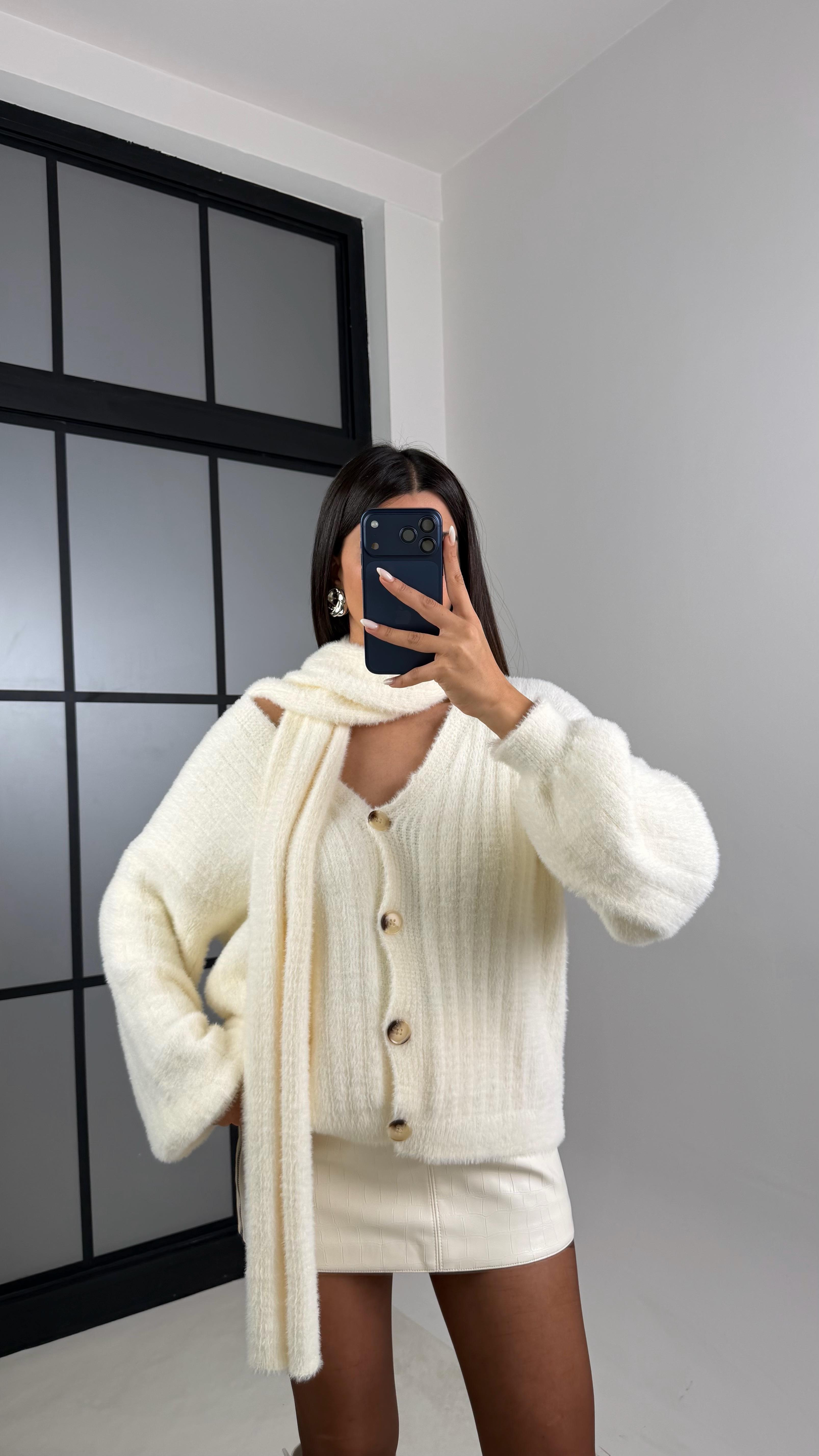 Ekru Şal Detaylı Yumuşak Dokulu Triko Hırka GAUS-00650GAUS الكارديغان  GAUS-00650