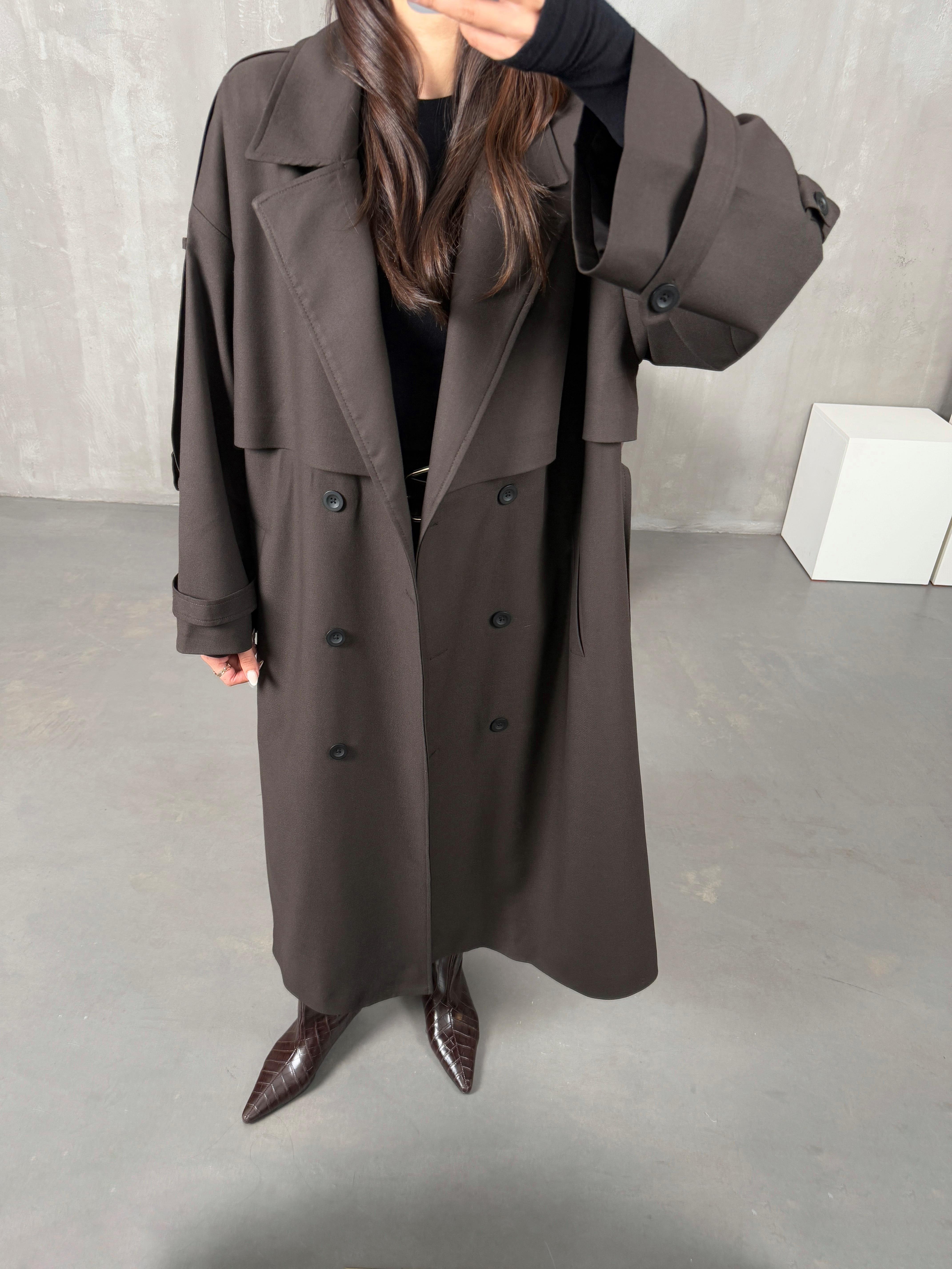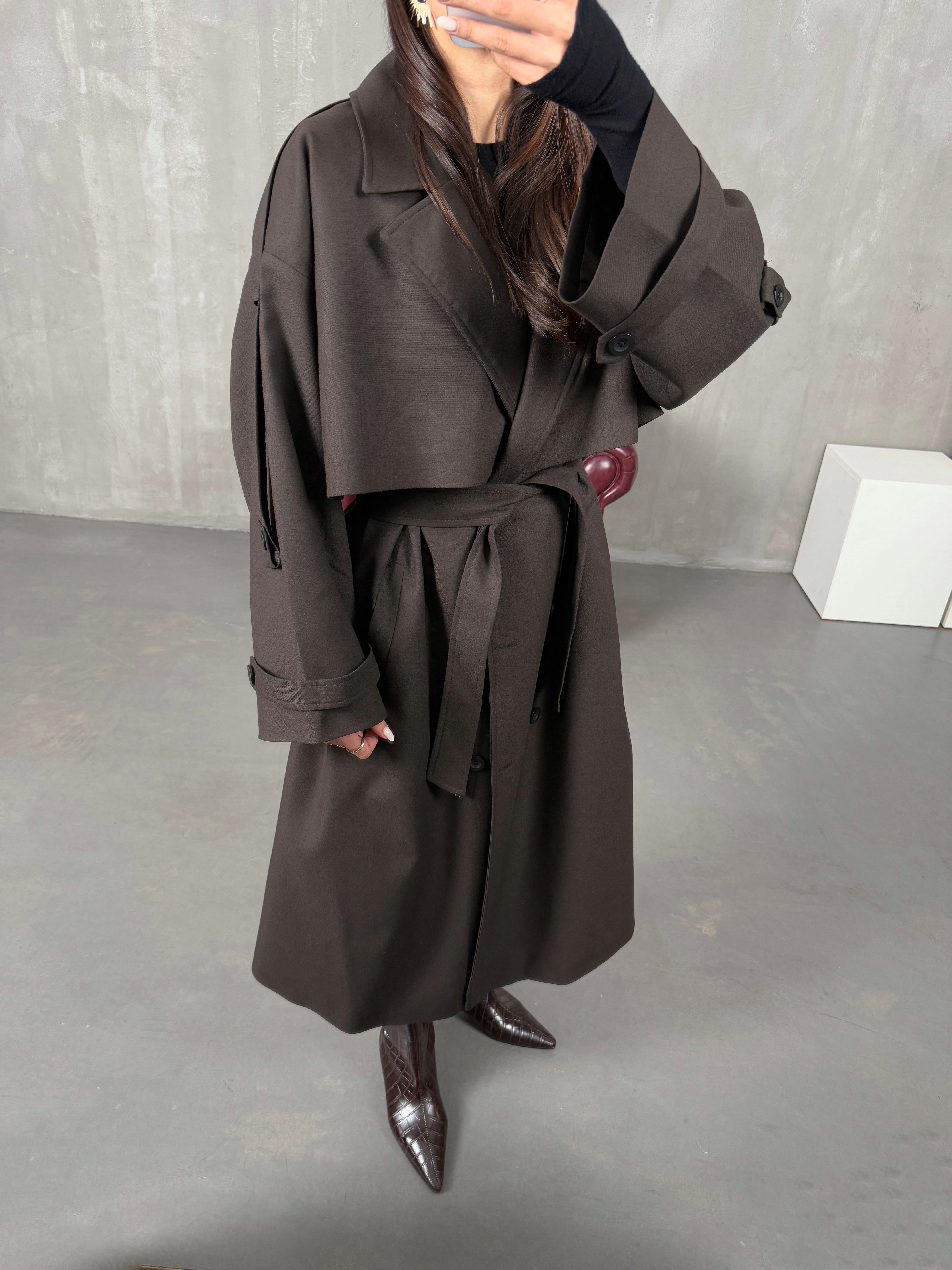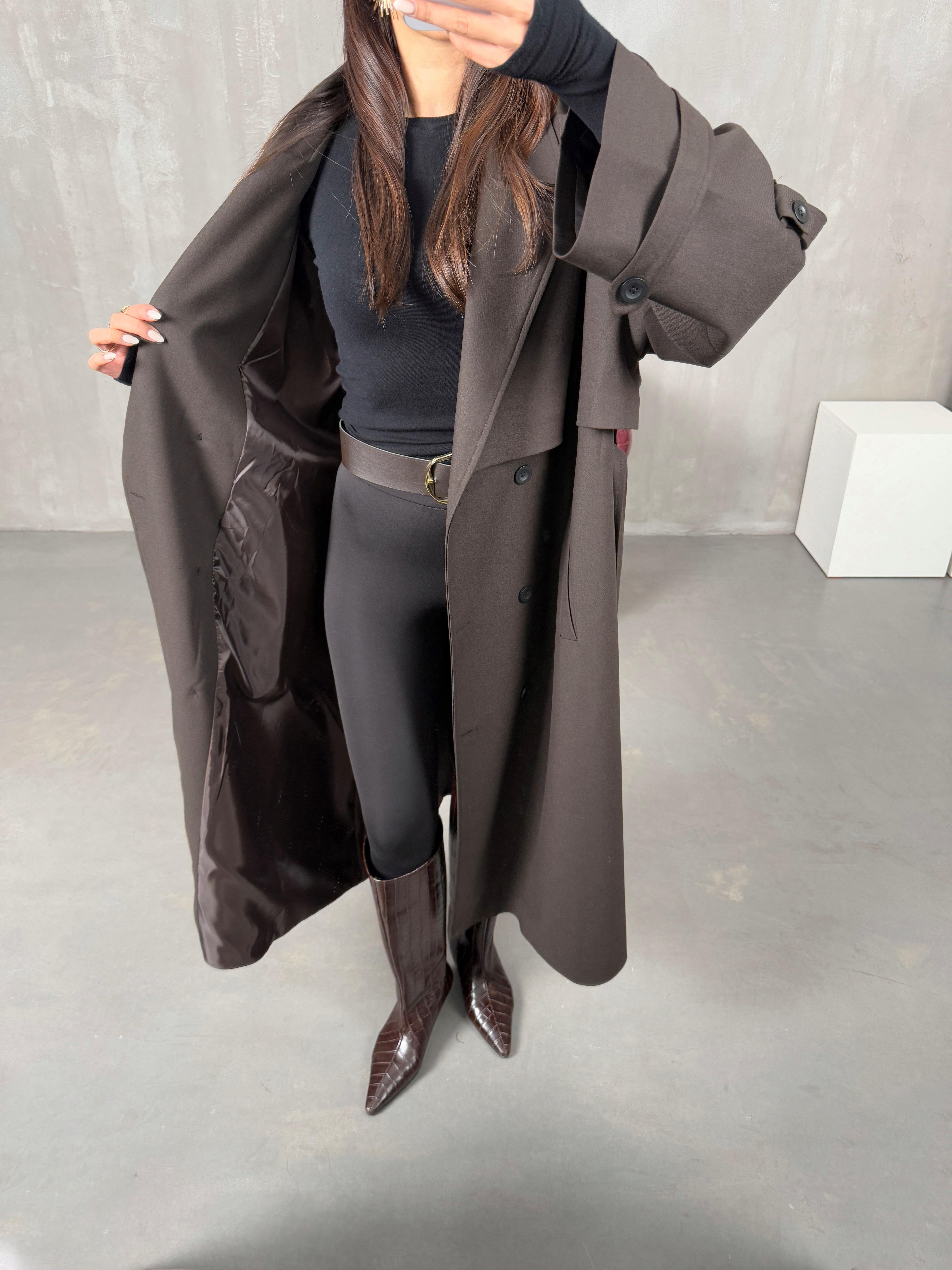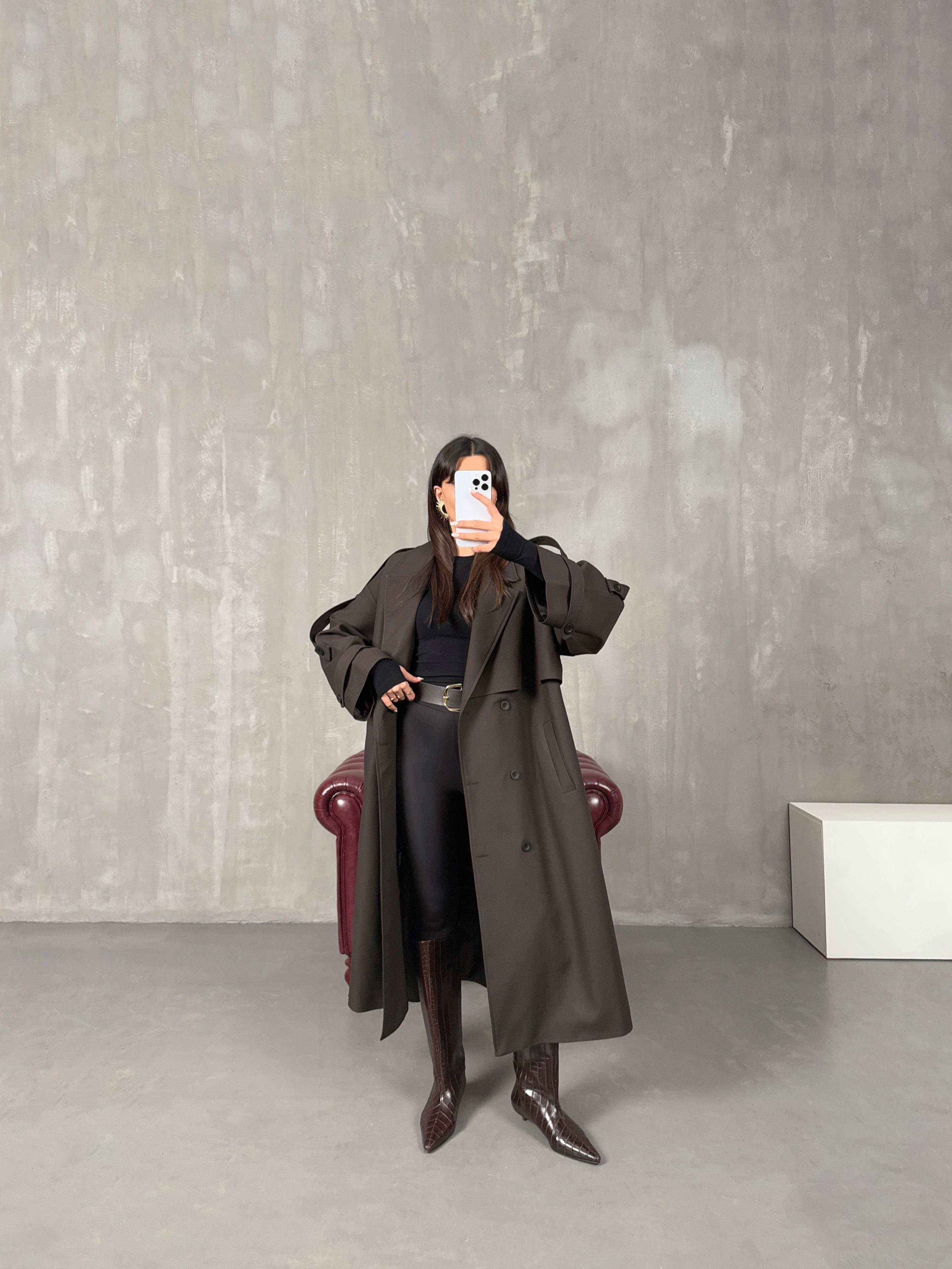 Elsa Acı Kahve Kuşaklı Poliviskon Astarlı Tasarım Premium Trençkot