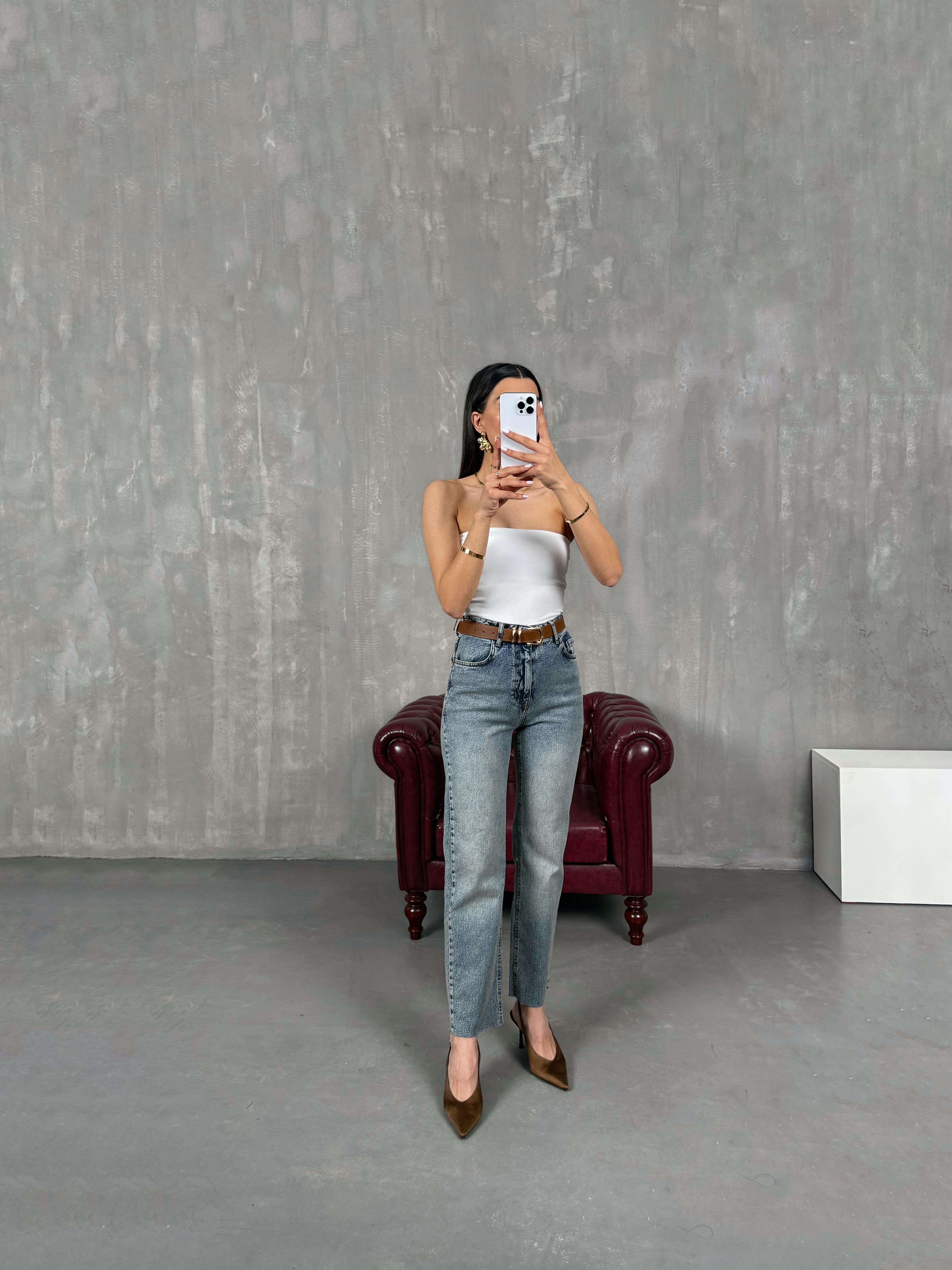 إريس جينز أزرق فاتح  بساق مقصوصة مع حزام