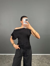 Esa Siyah Kayık Yaka Büzgülü Fitilli Bluz