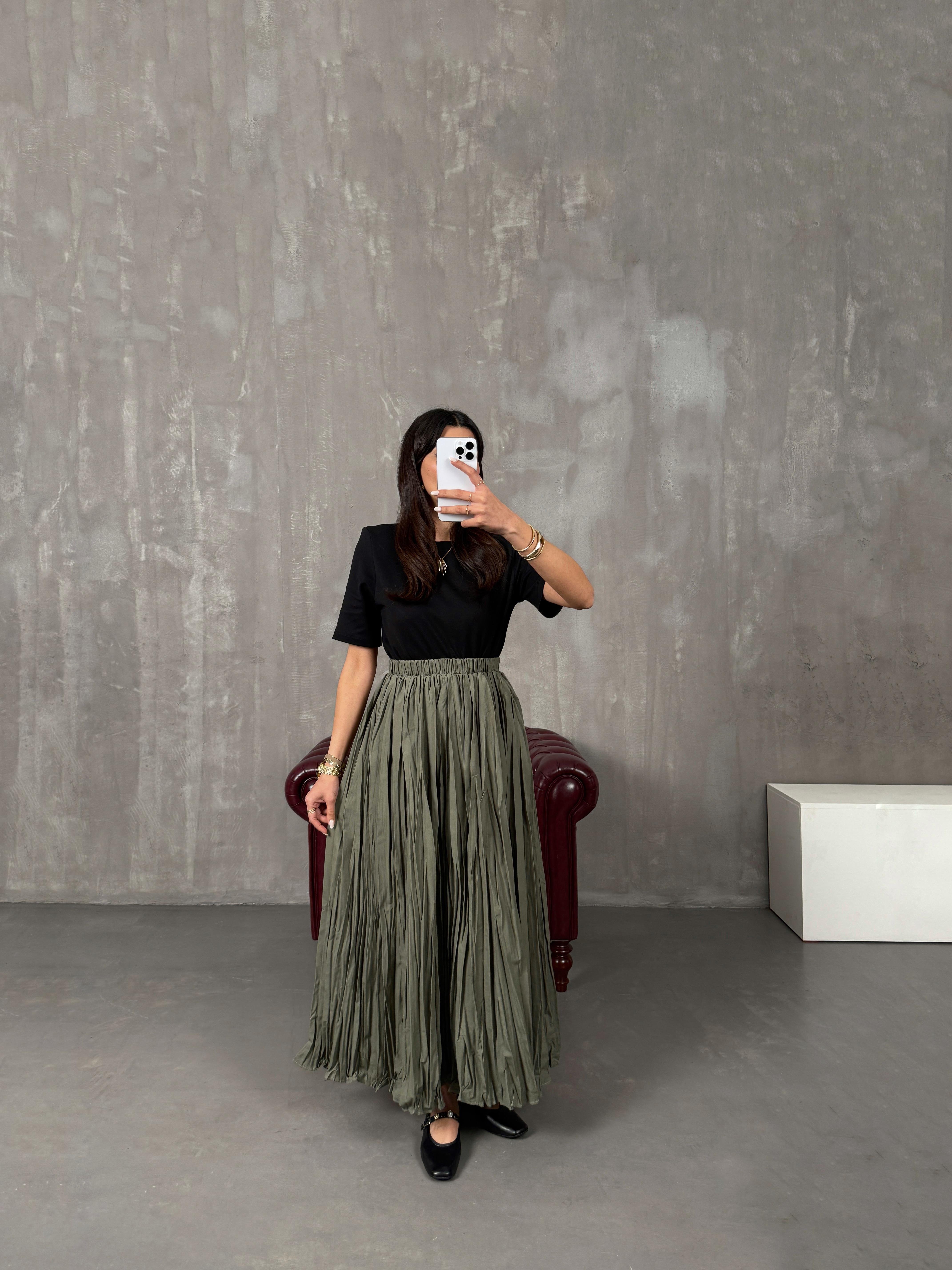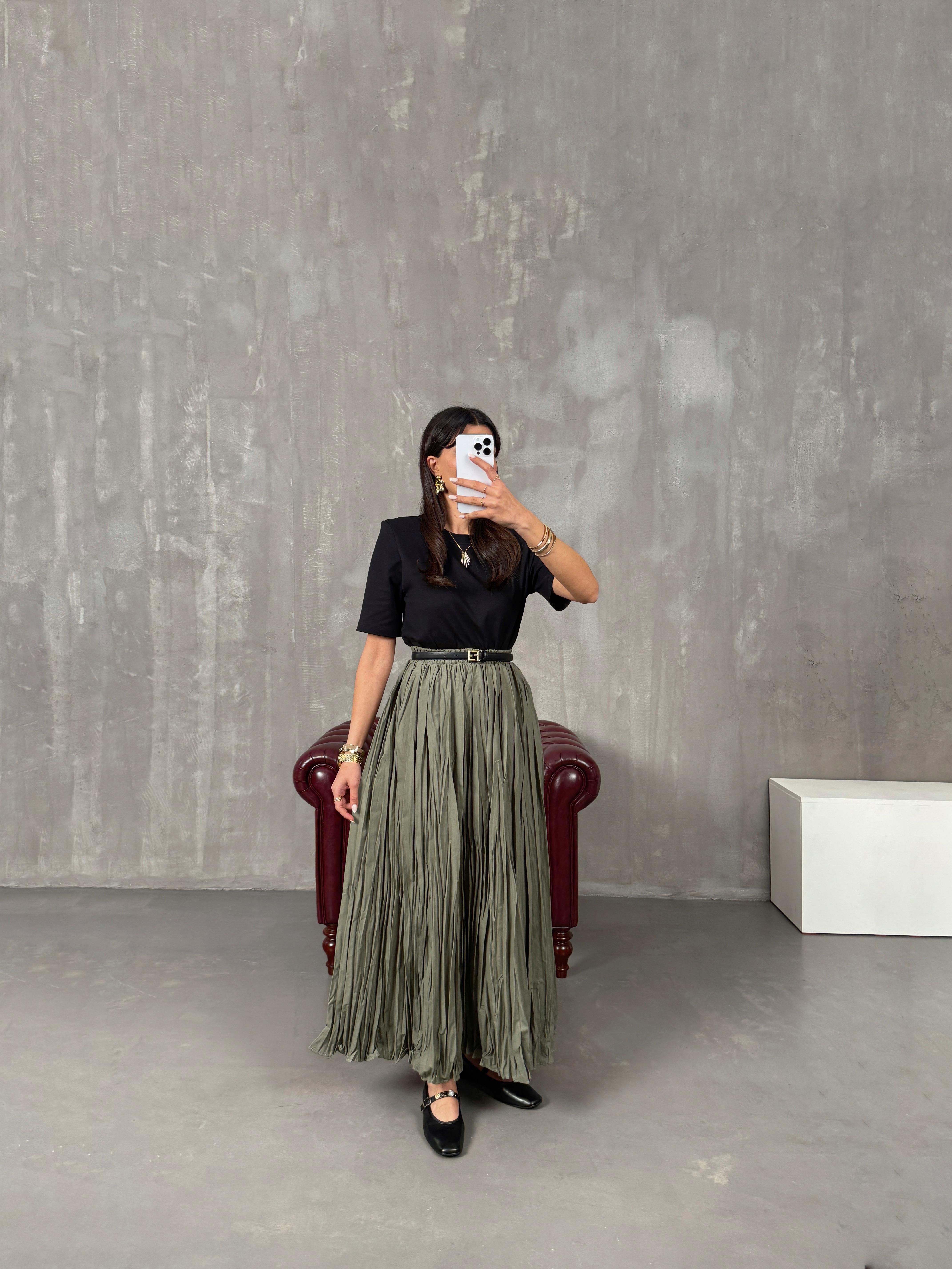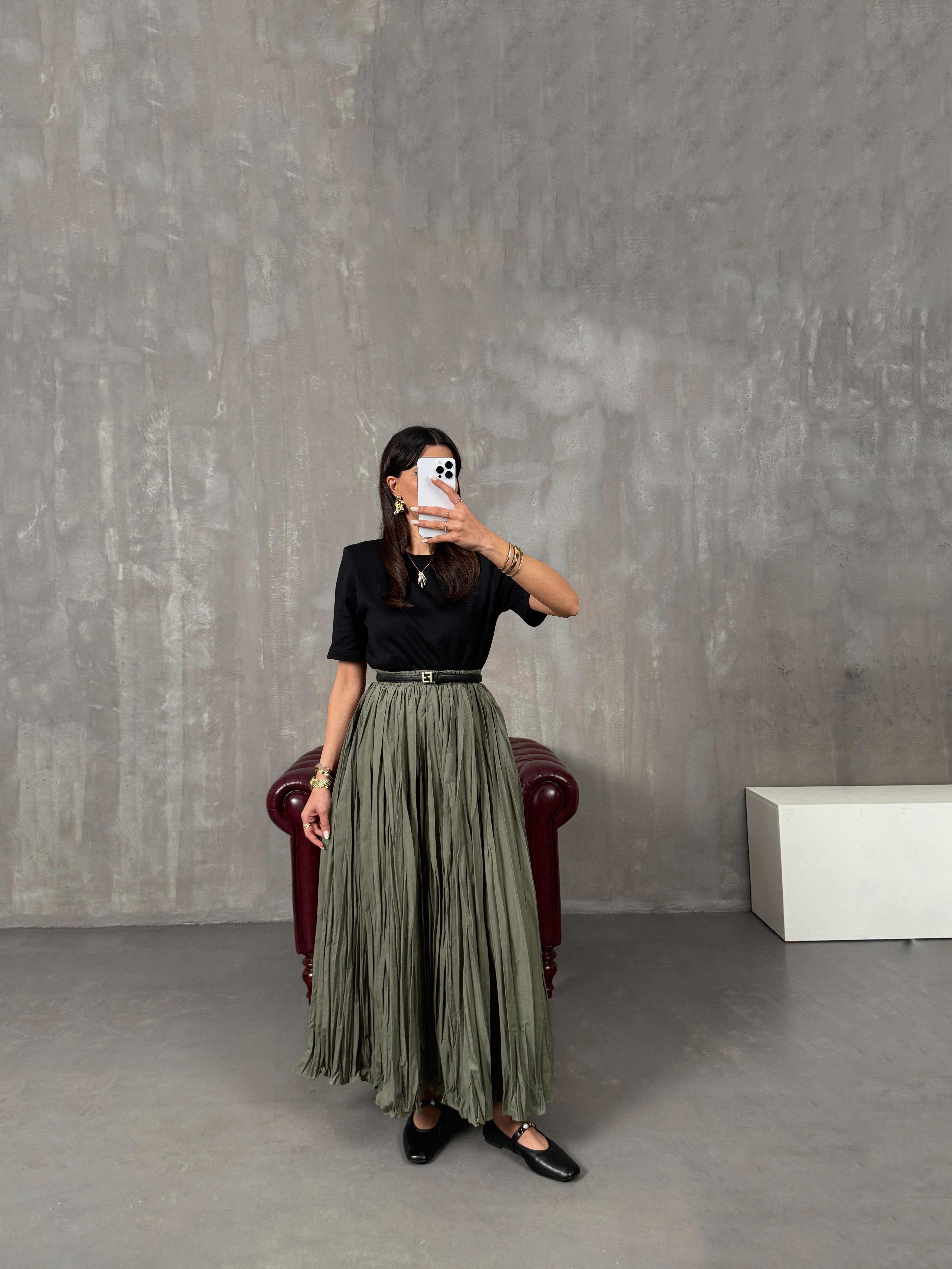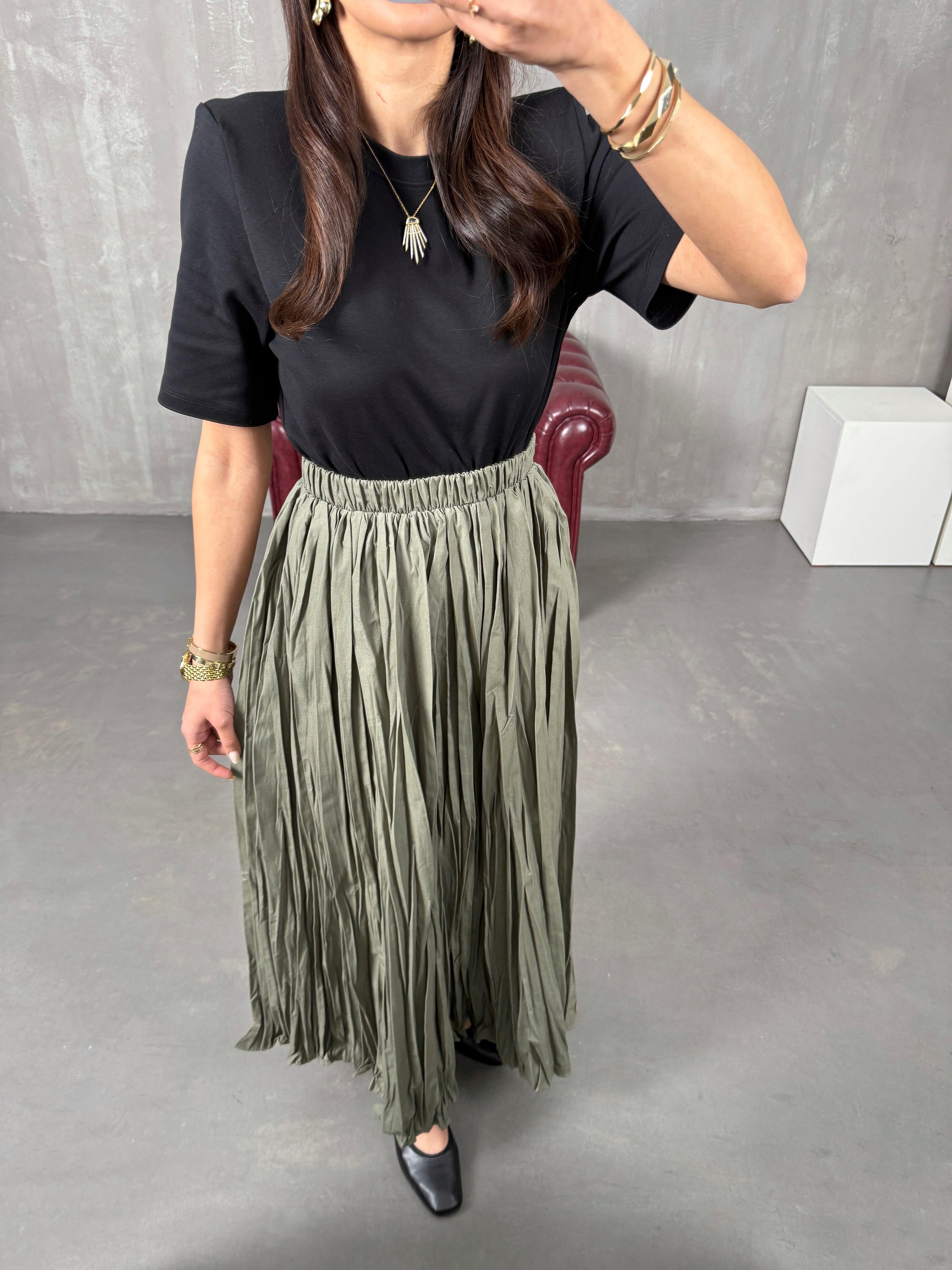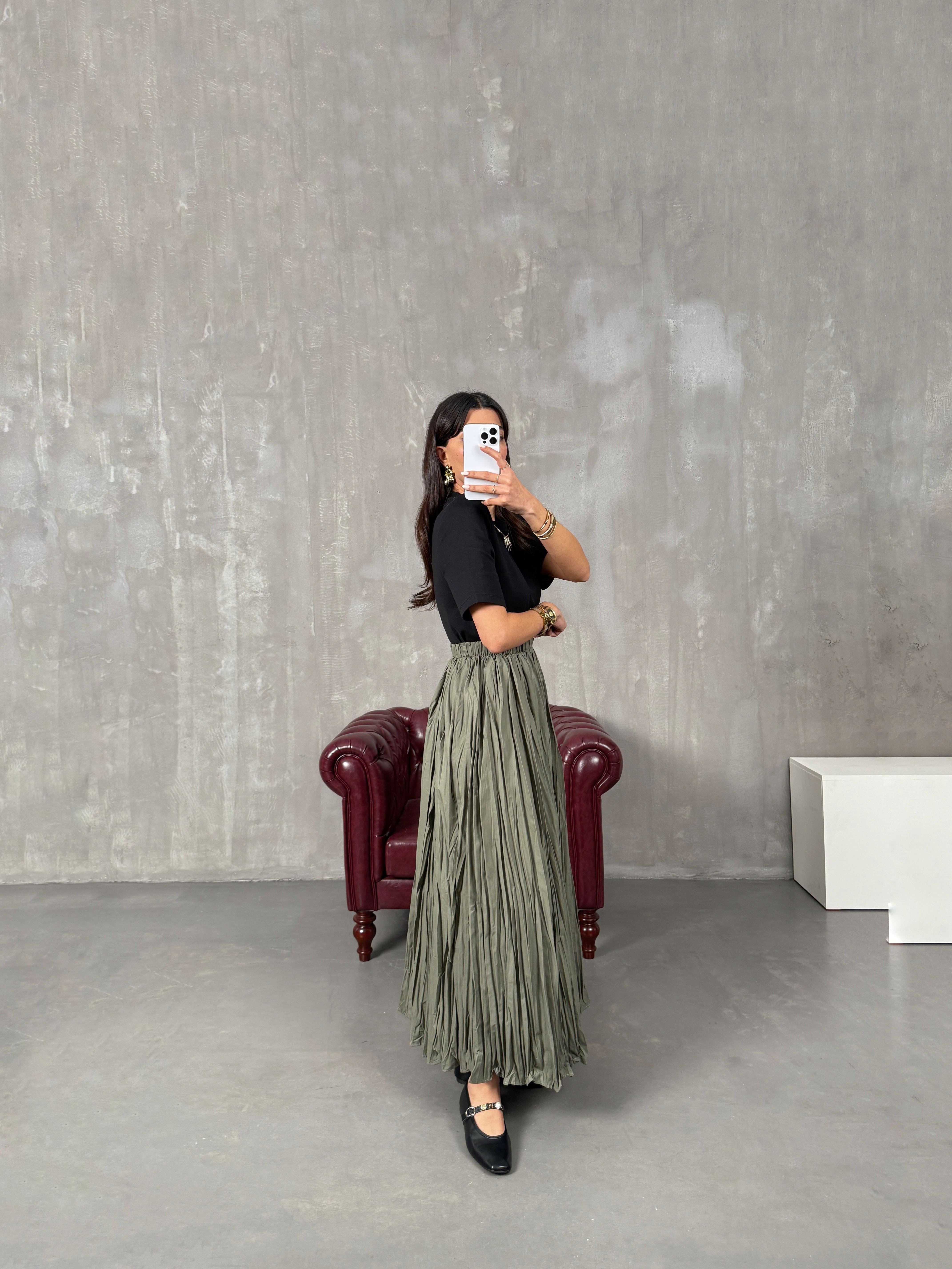 إيسا تنورة ماكسي كراش قماش مجعّد لون كاكي