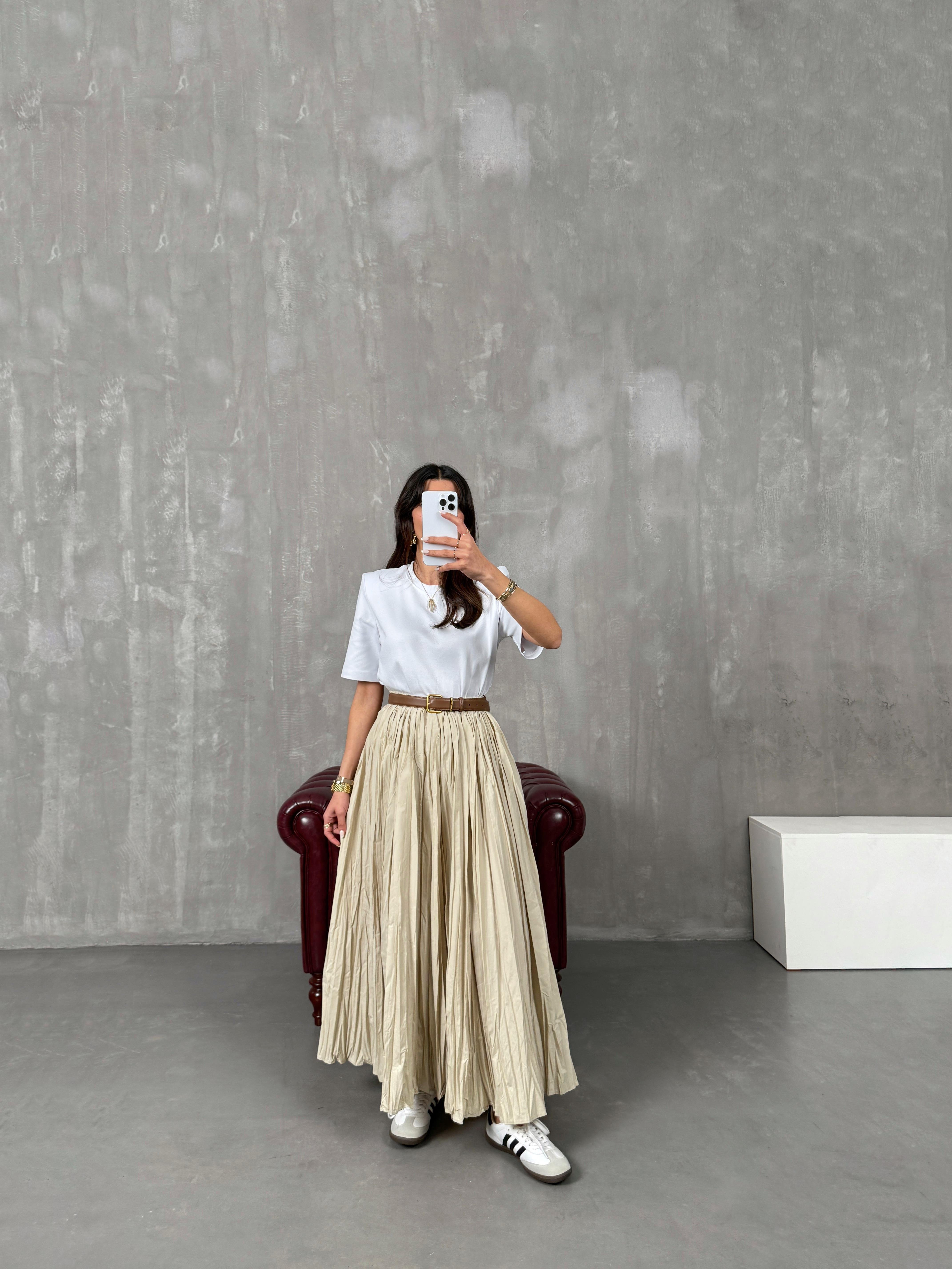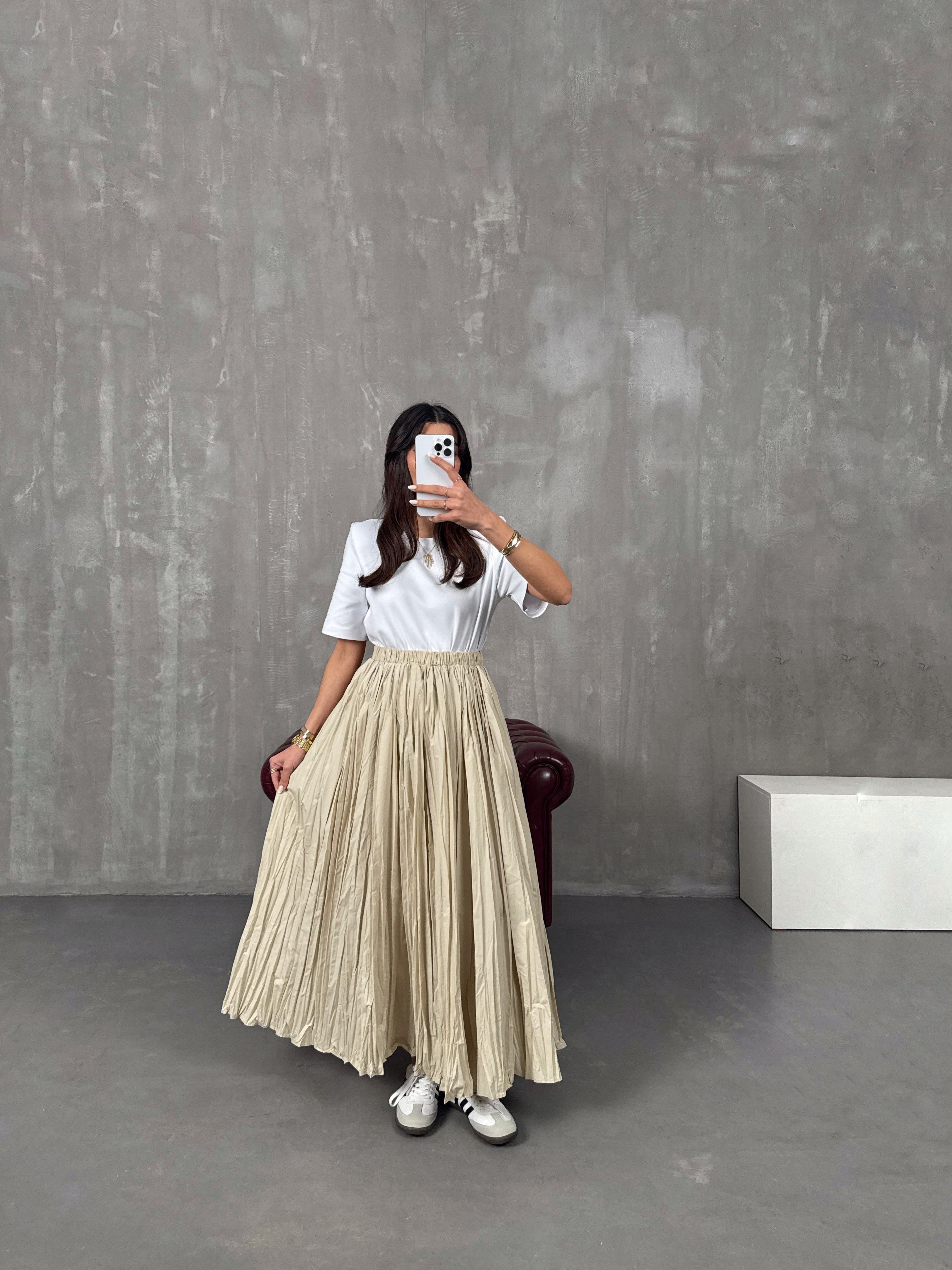 إيسا تنورة ماكسي كراش قماش مجعّد لون حجري