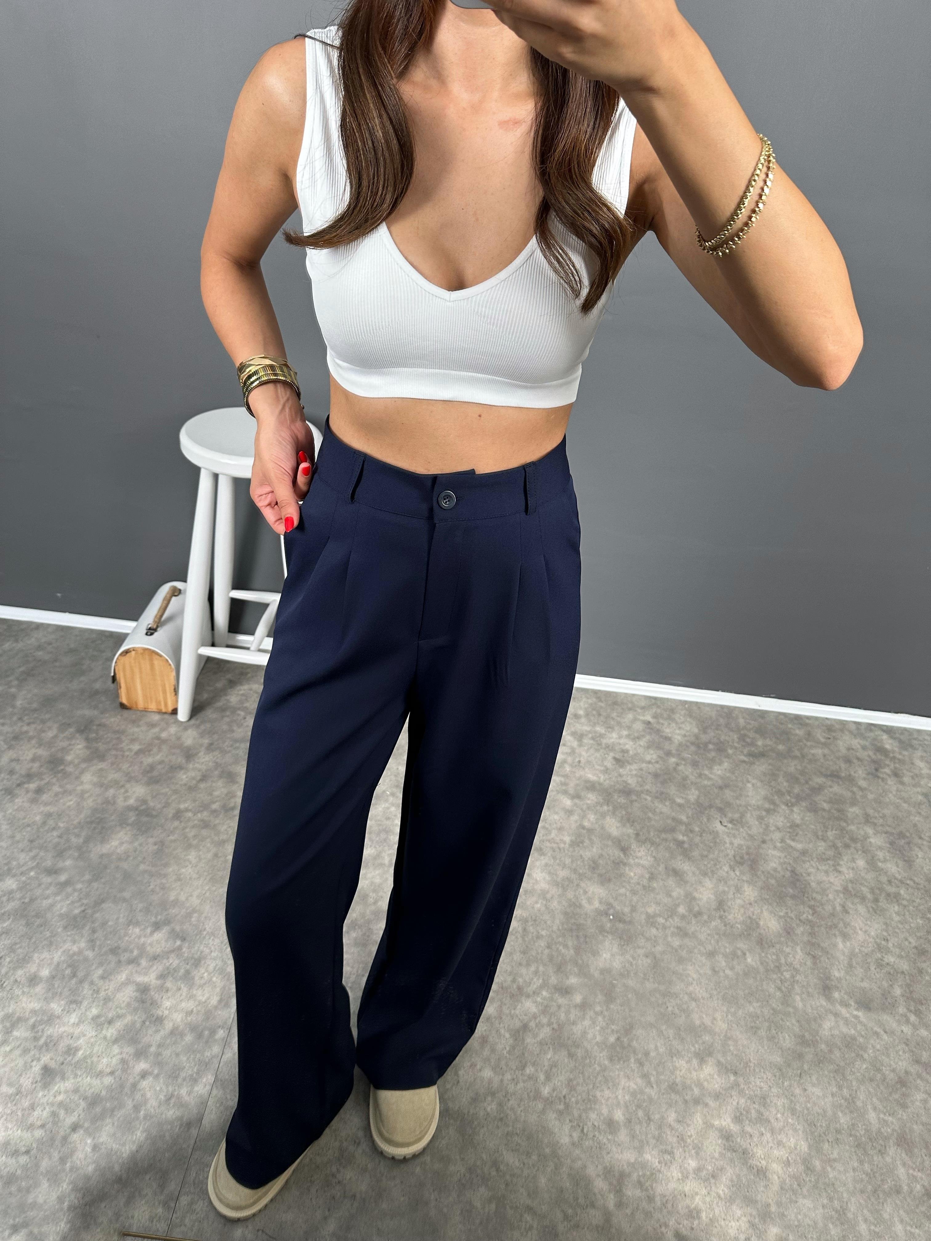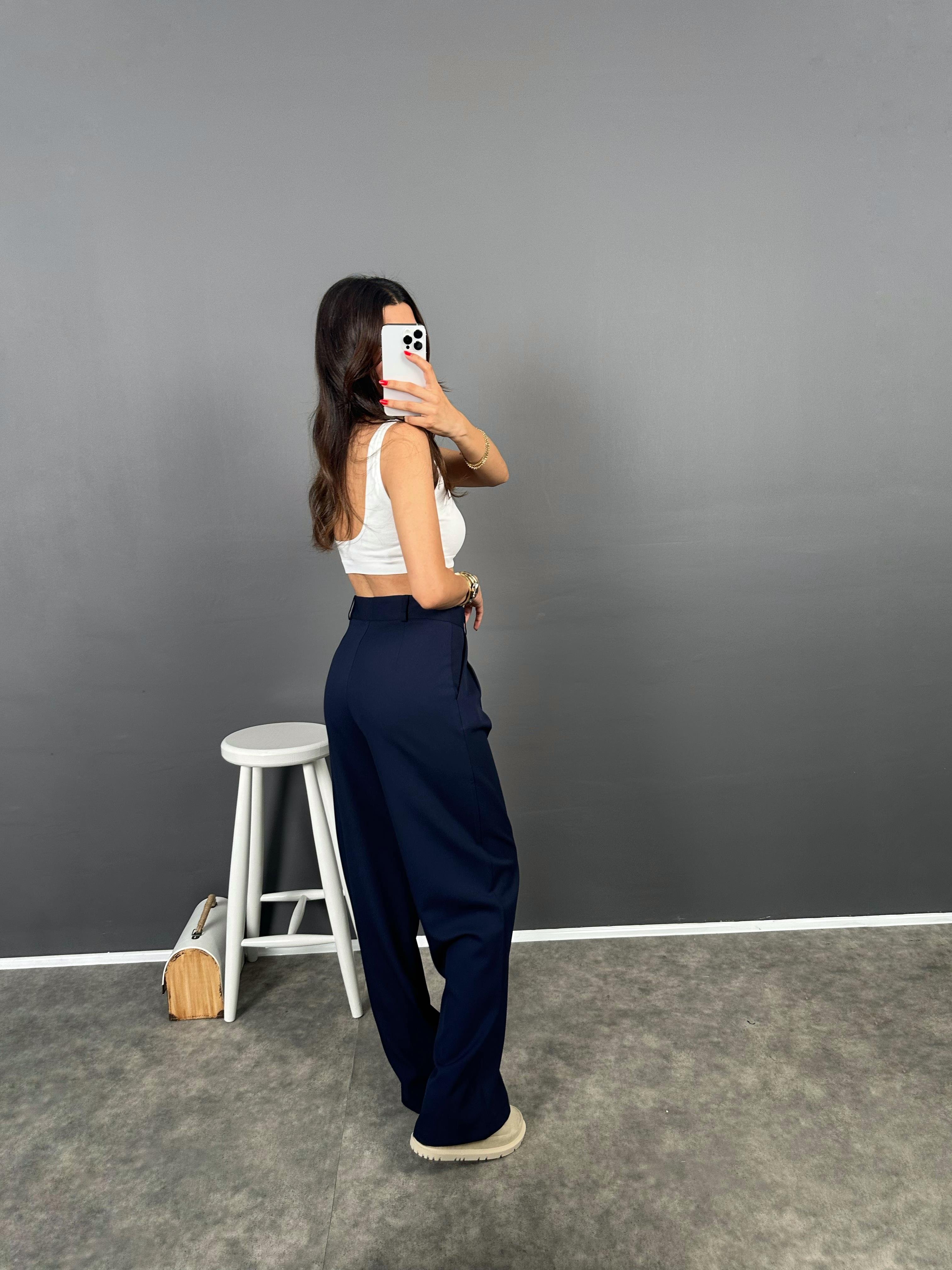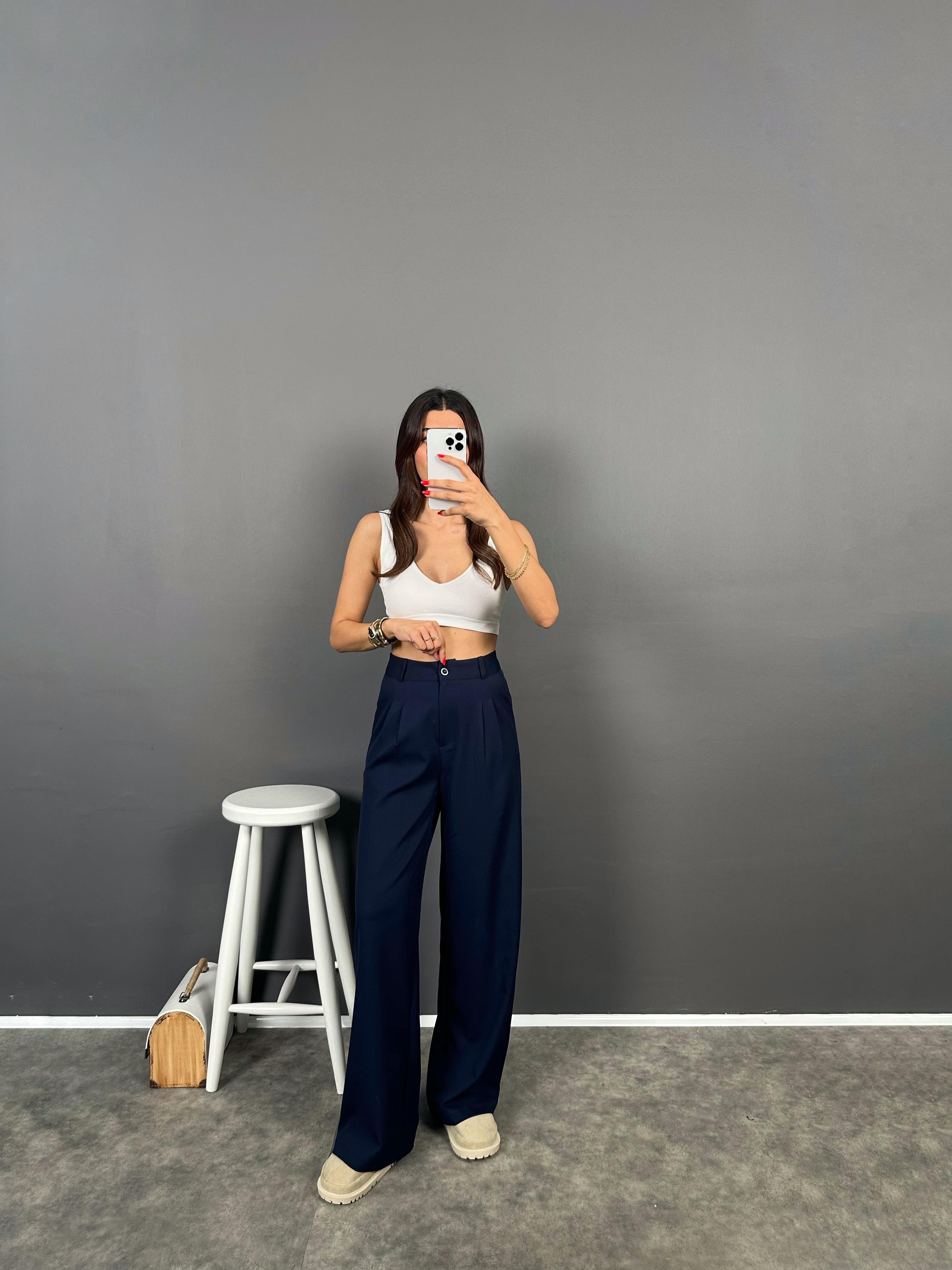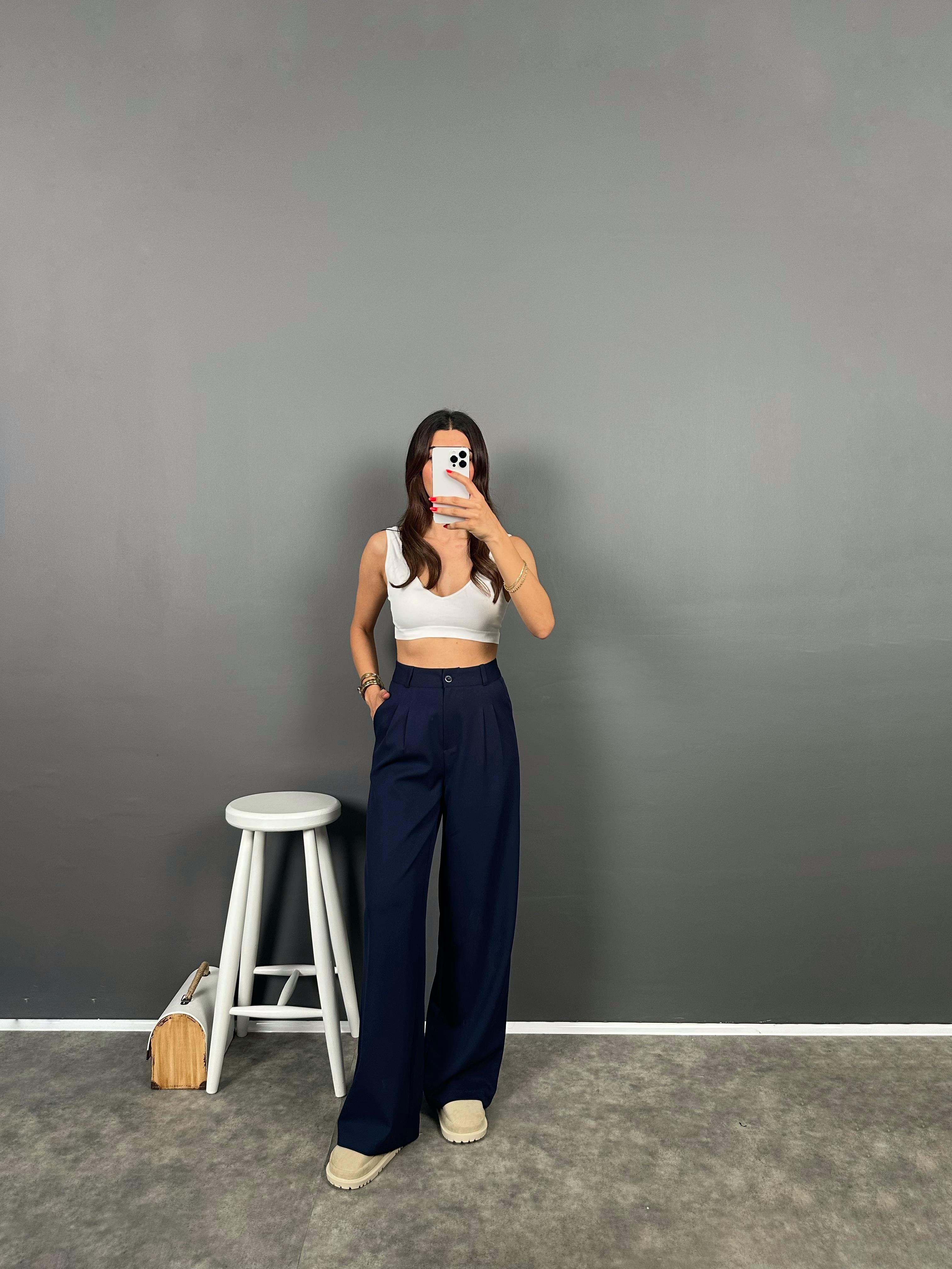 Fado Lacivert Kumaş Palazzo Pantolon