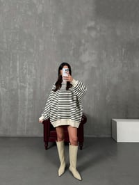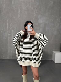 Felisya Siyah Çizgili Üç İplik Şardonlu Sweat