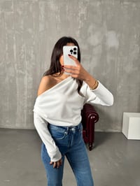 Fina Beyaz Omuz Detaylı Degajeli Bluz