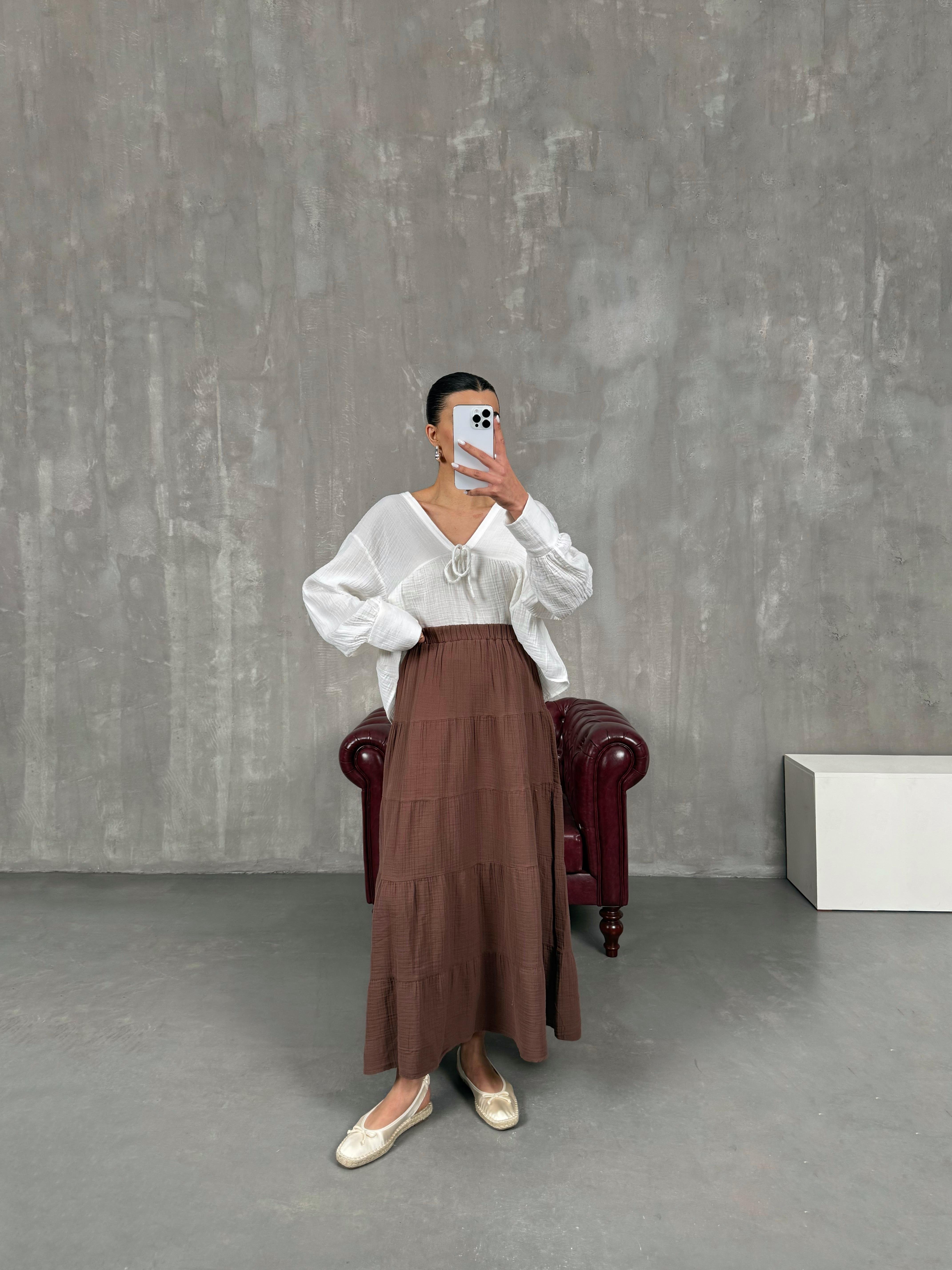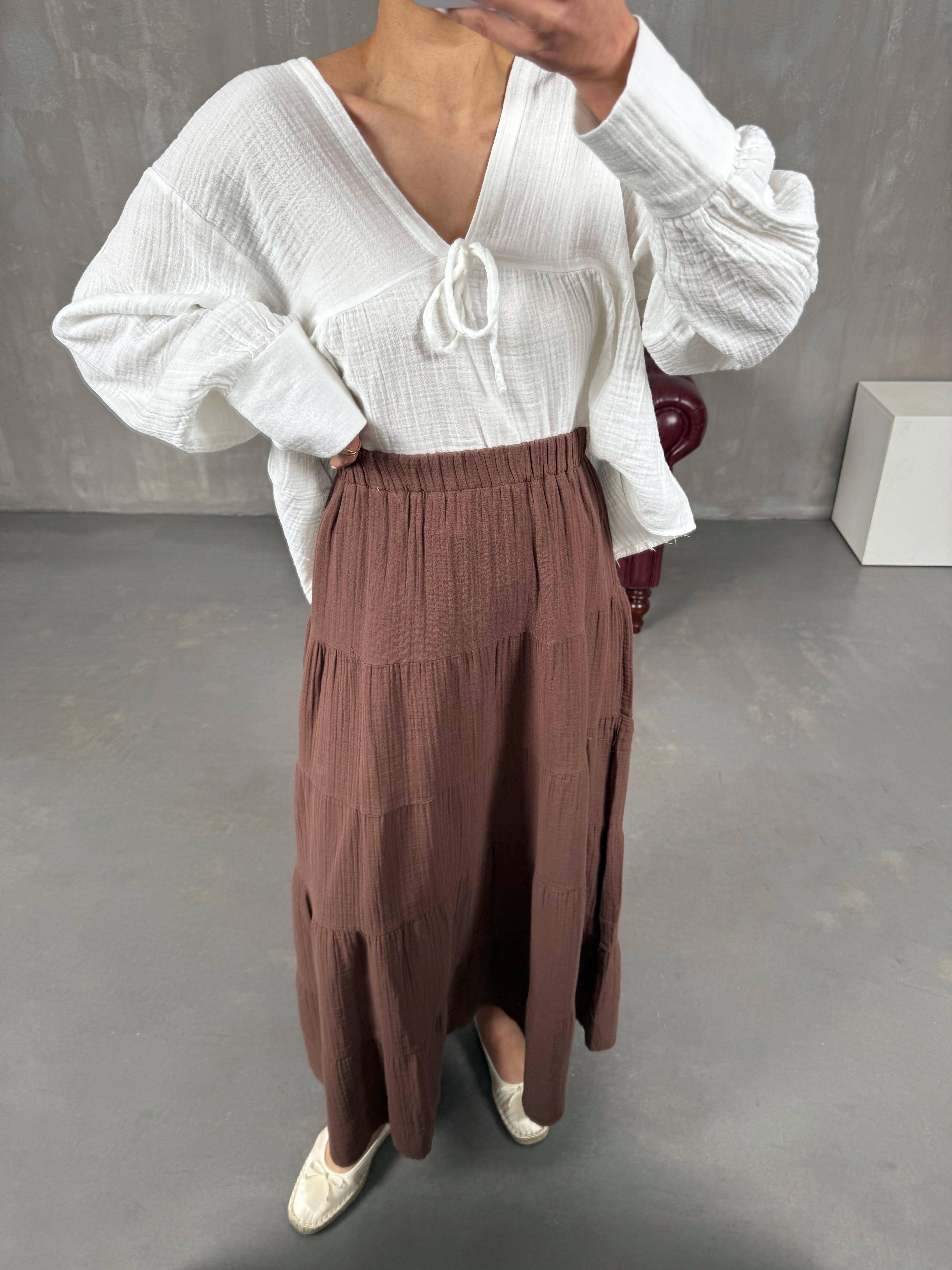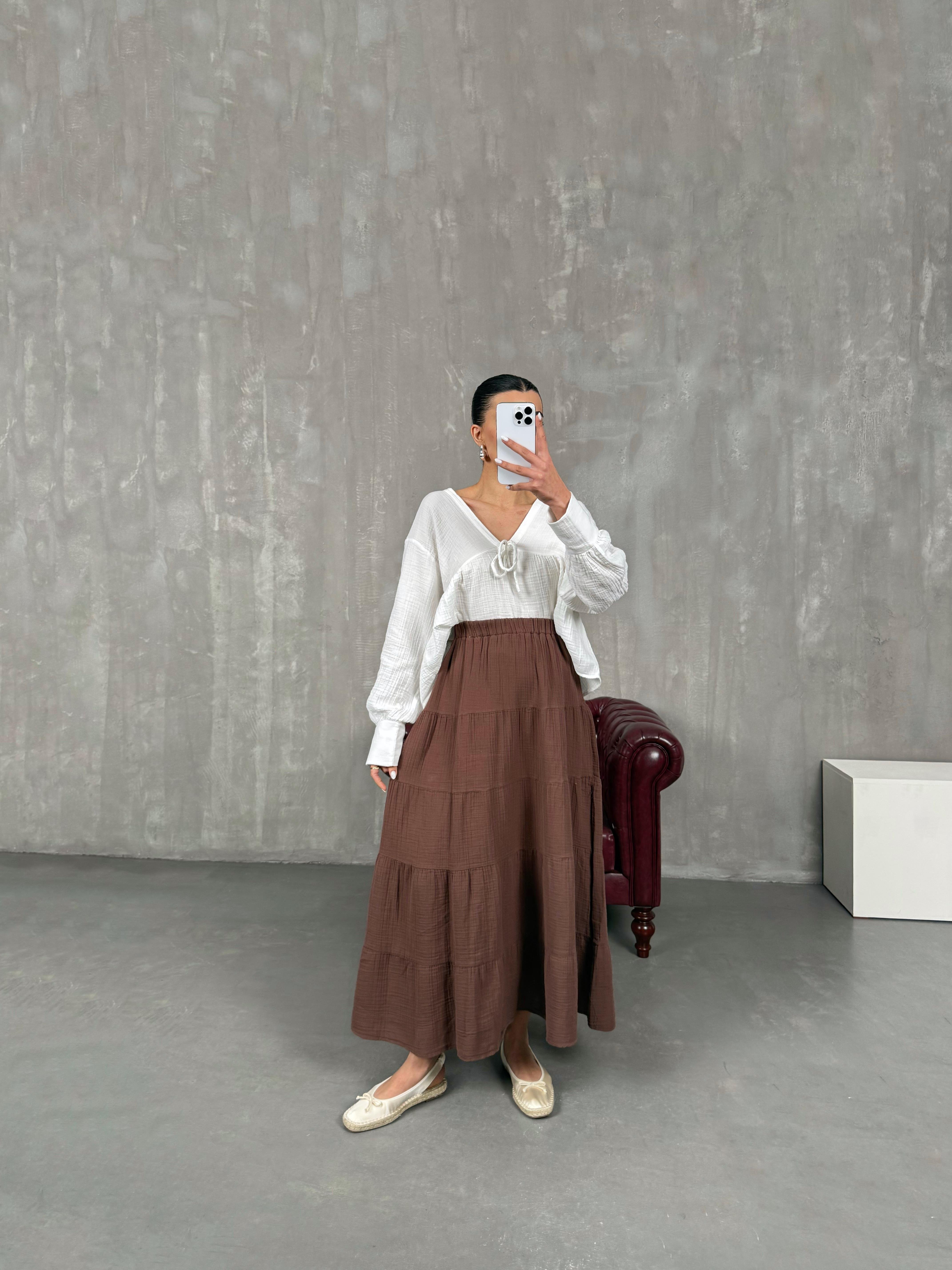 فيرا تنورة لون بني قماش موسلين بخصر مطاطي