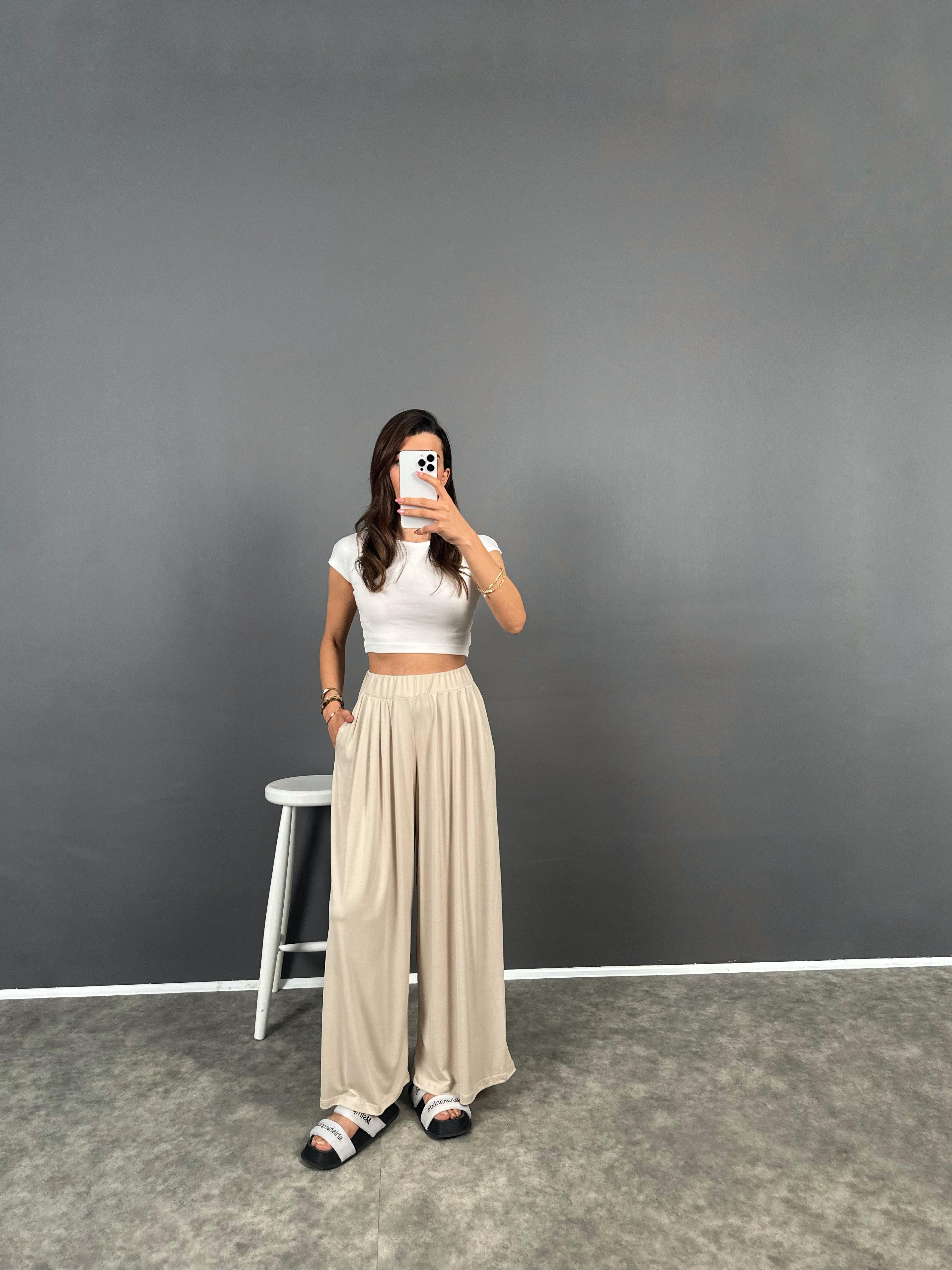 Flos Taş Oys Modal Kumaş Rahat Dokuma Pantolon
